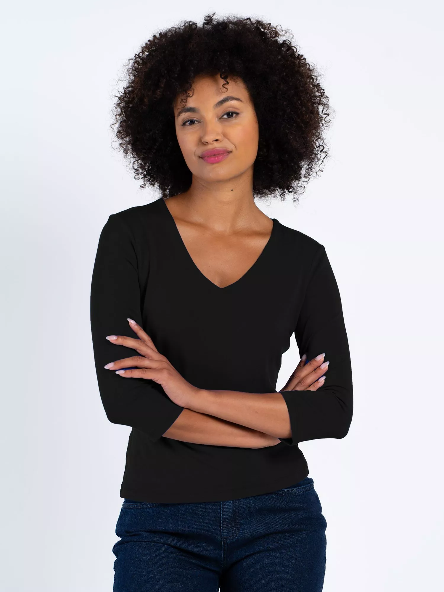 Celtic & Co.Darcey V Neck Cotton Blend Top, Black