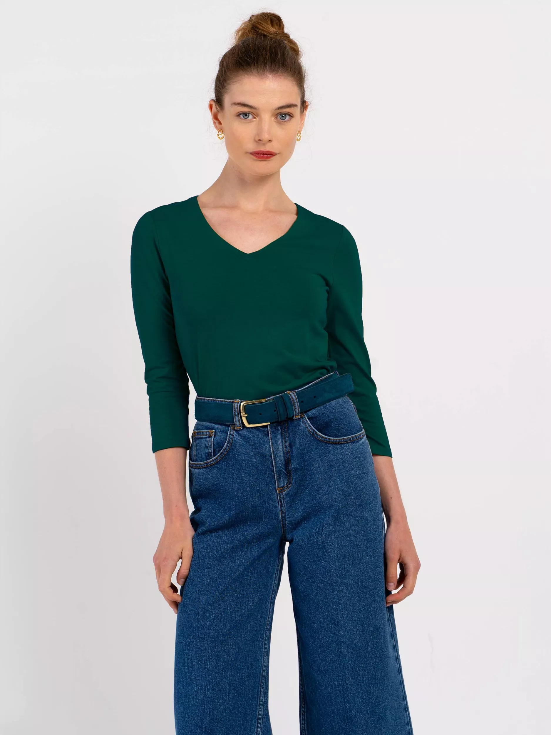 Celtic & Co.Darcey V Neck Cotton Blend Top, Pine