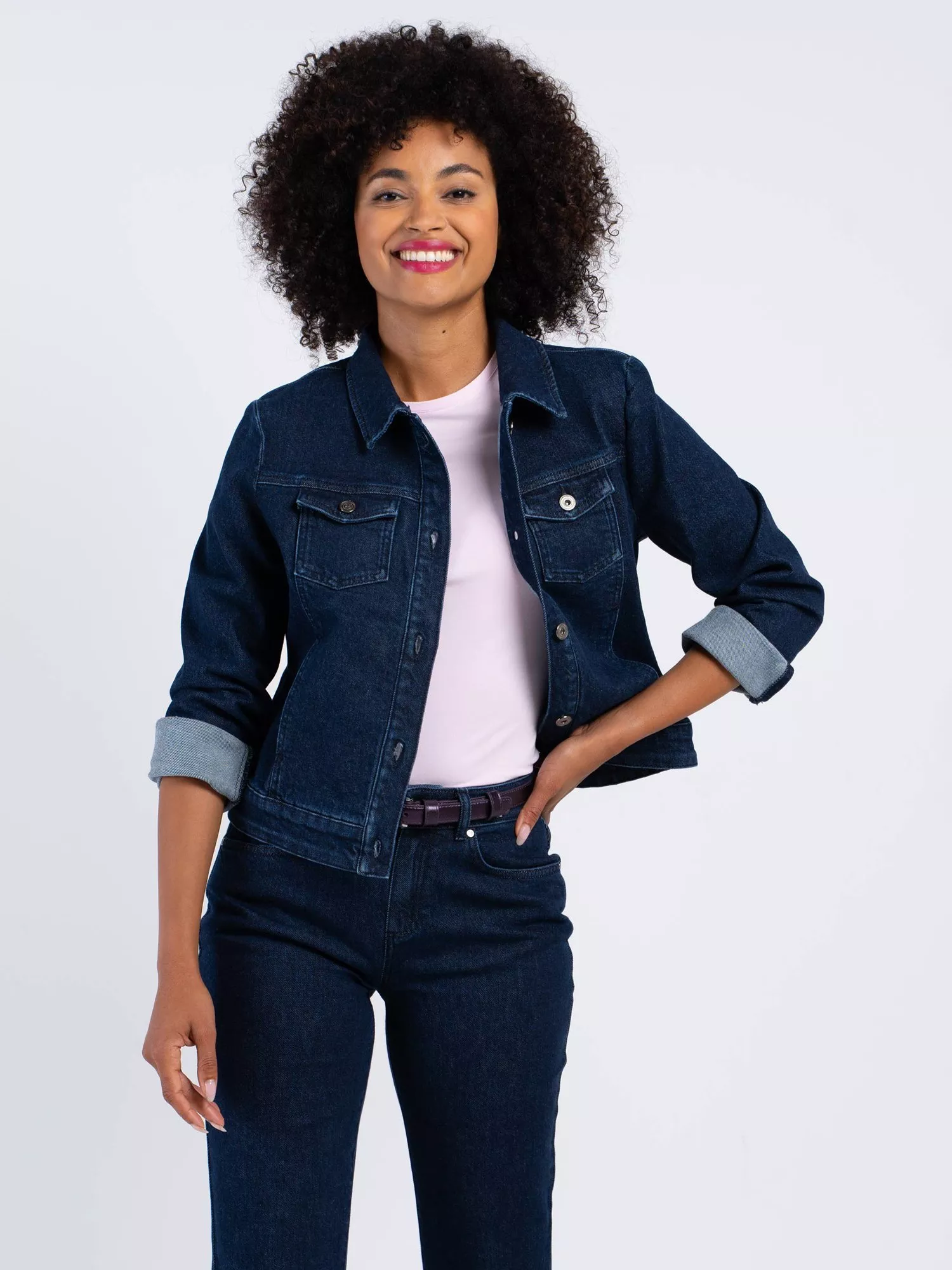 The Darla Denim Jacket is a modern wardrobe essential - offering timeless style with a flattering, feminine fit. Crafted from a high-quality cotton blend with just a hint of stretch, Darla combines the structured feel of classic denim with soft, flexible comfort for all-day wear.