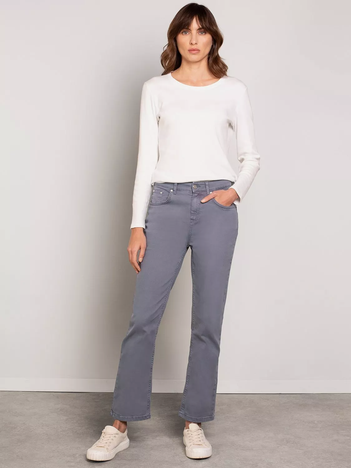 Crafted from premium denim with a touch of stretch, these mid rise jeans are a contemporary wardrobe essential.