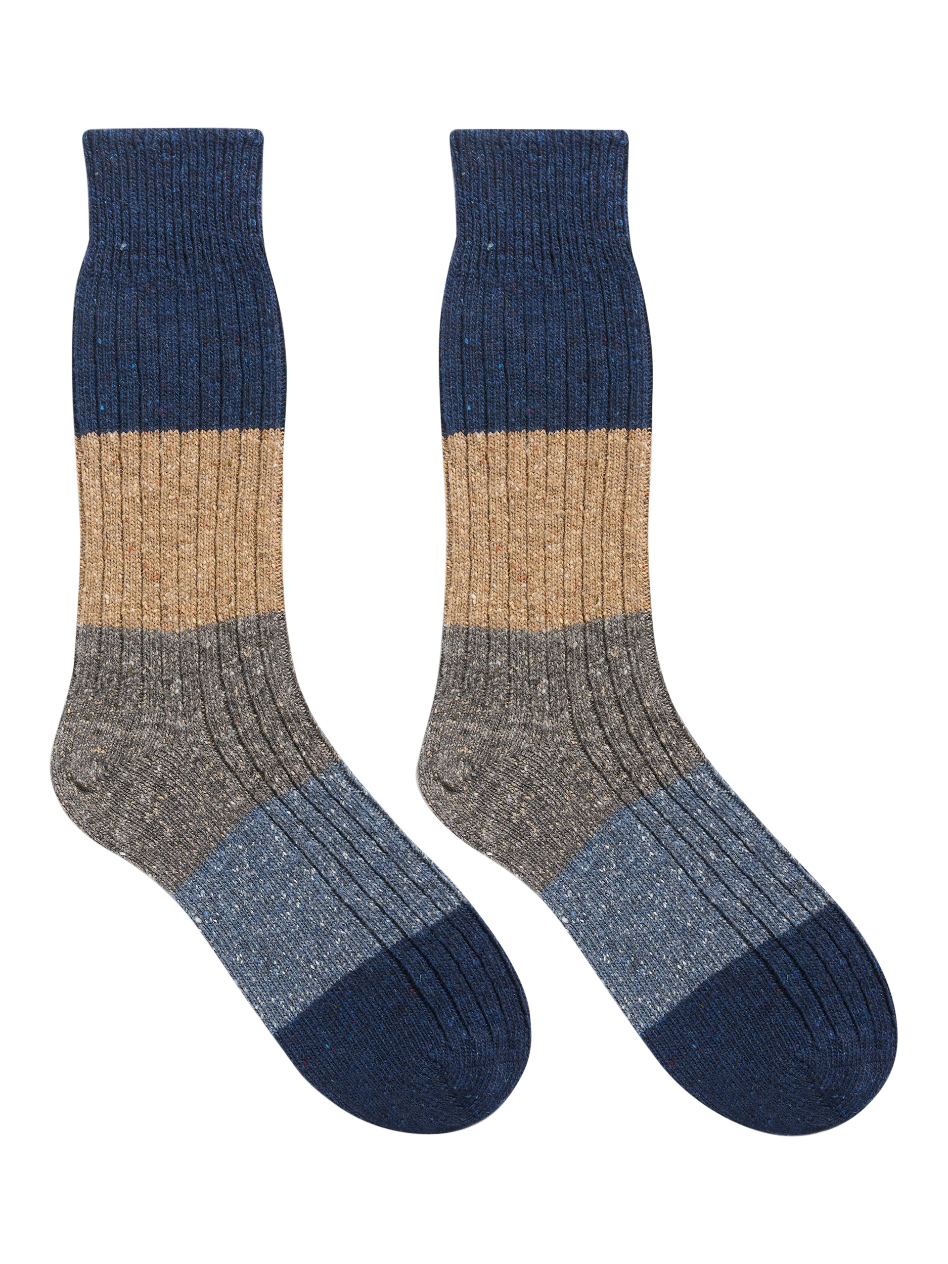 If you're on the hunt for a boot sock with a luxurious touch, you've landed in the right place. Designed with contrast trims for colour blocked style, this pair is crafted in finest Donegal wool blended with silk and cashmere for all-natural comfort that feels amazingly soft against the skin with the added benefit of temperature regulation and breathability.