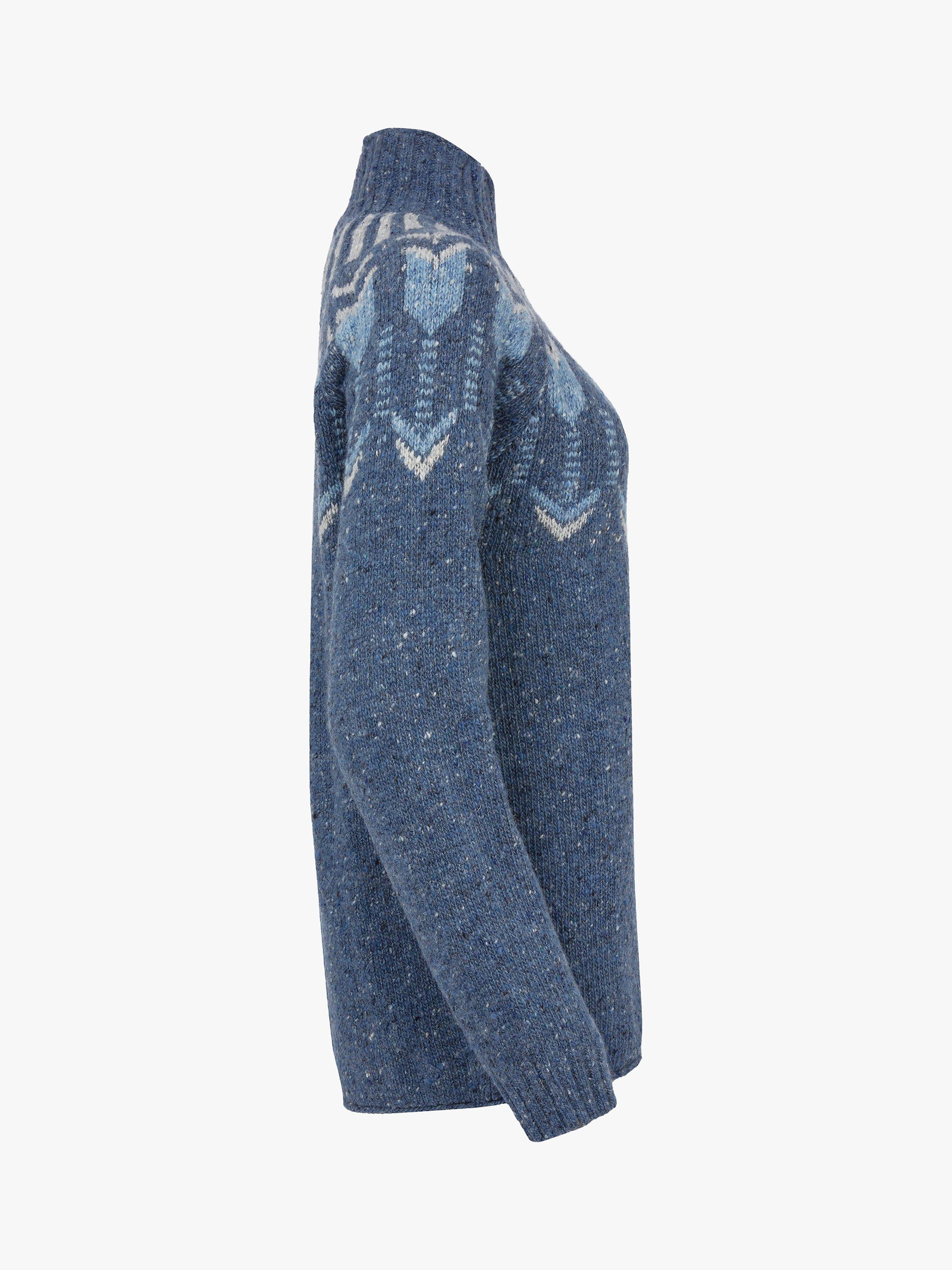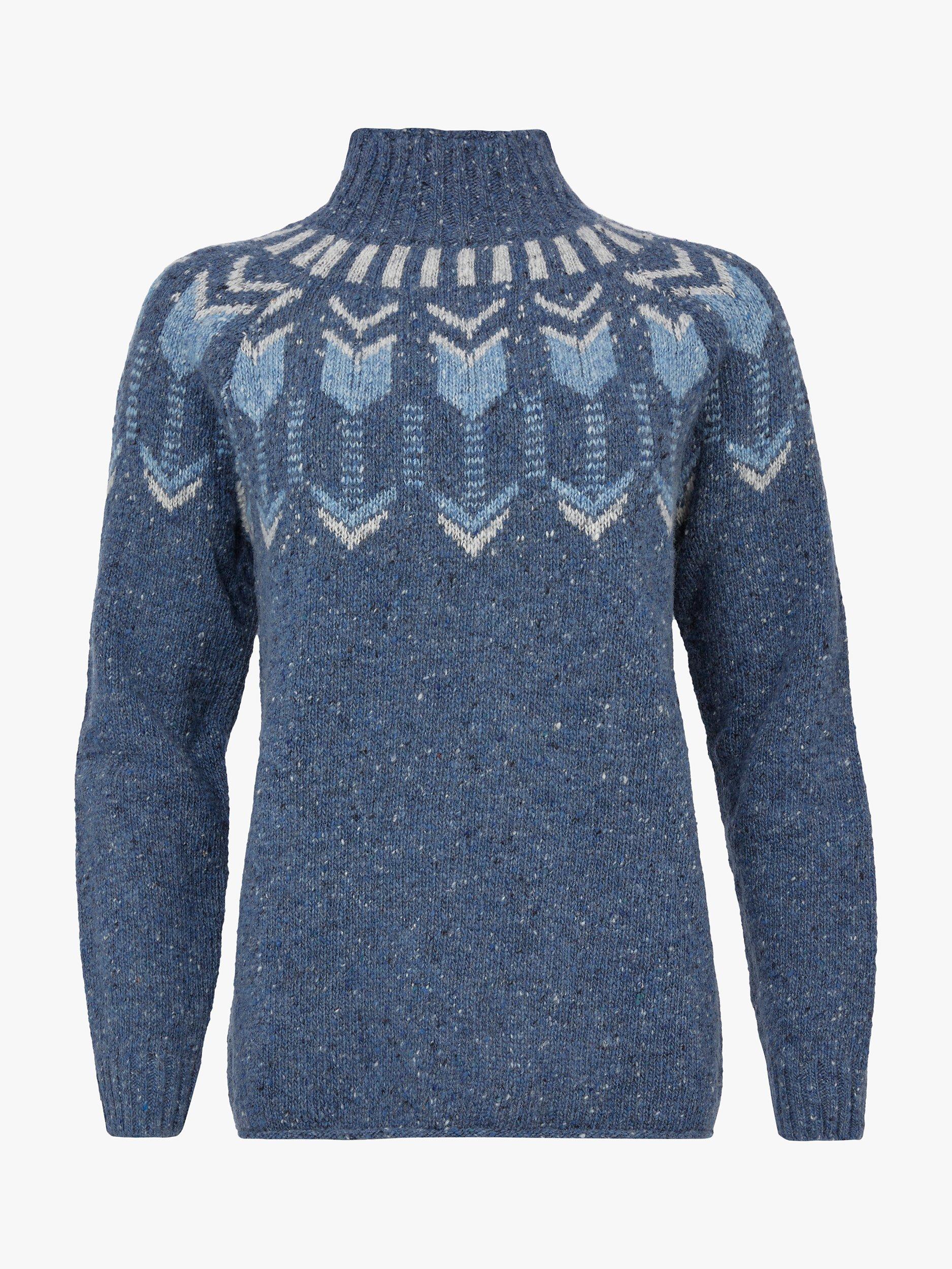 The turning of a new season is a great excuse to refresh your knitwear collection, and our creative take on the funnel-neck sweater is just the thing. Crafted in Donegal wool with a beautifully flecked effect, this high-necked design is based on an existing Celtic & Co. best-seller's shape and knitted with a fresh spin on the classic Fair Isle pattern at the upper body. Even better? It's designed to coordinate with our new scarf so you can keep cosy while owning the season's trend for matching looks