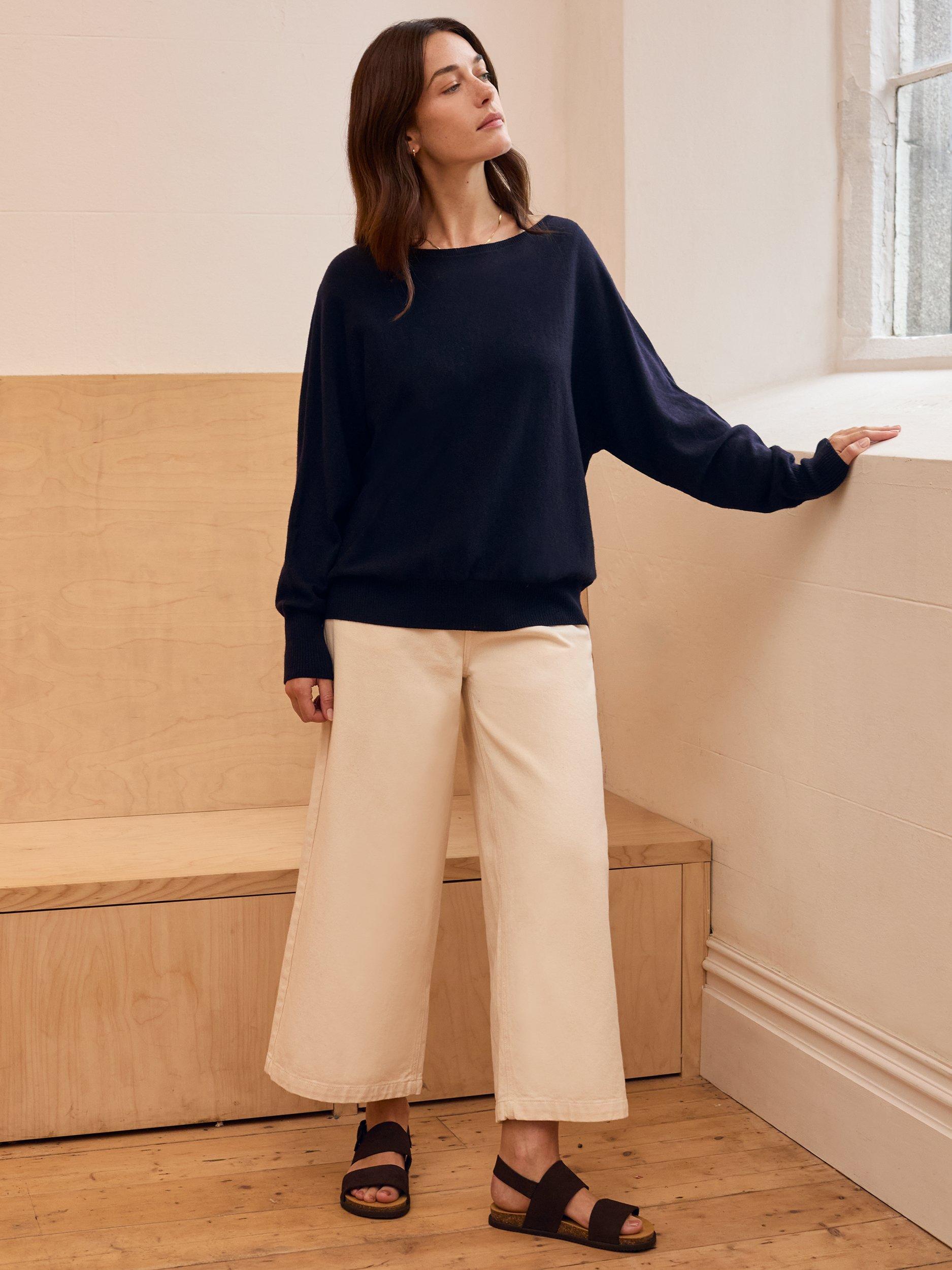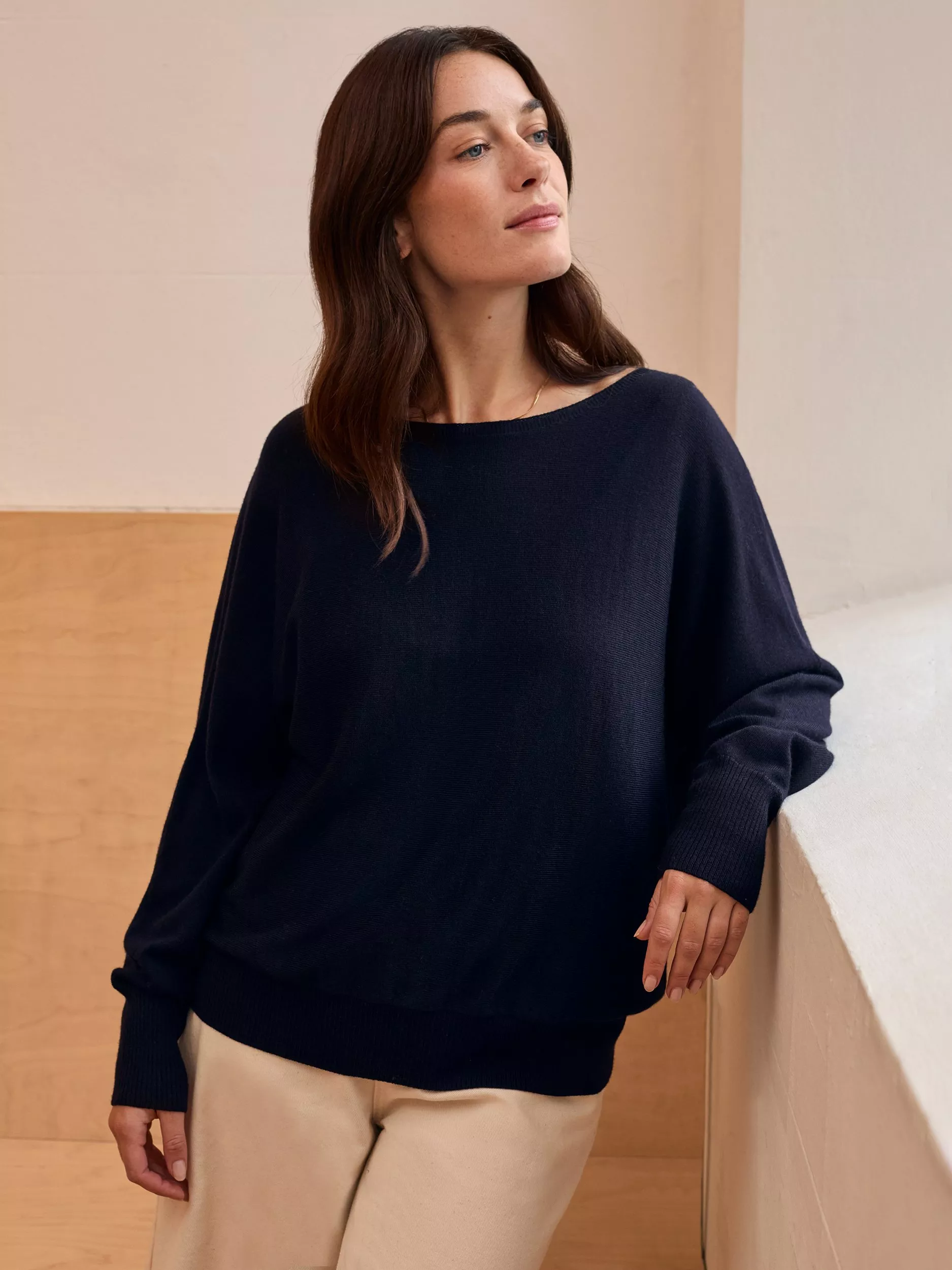 Introducing the Dolman merino knit jumper, super versatile and comfortable thanks to it's fine knit wool and loose-fitting shape. The slightly wide sleeves give a contemporary injection to your look. Wear tucked in with jeans or loose with leggings and thick socks for an effortless outfit look.