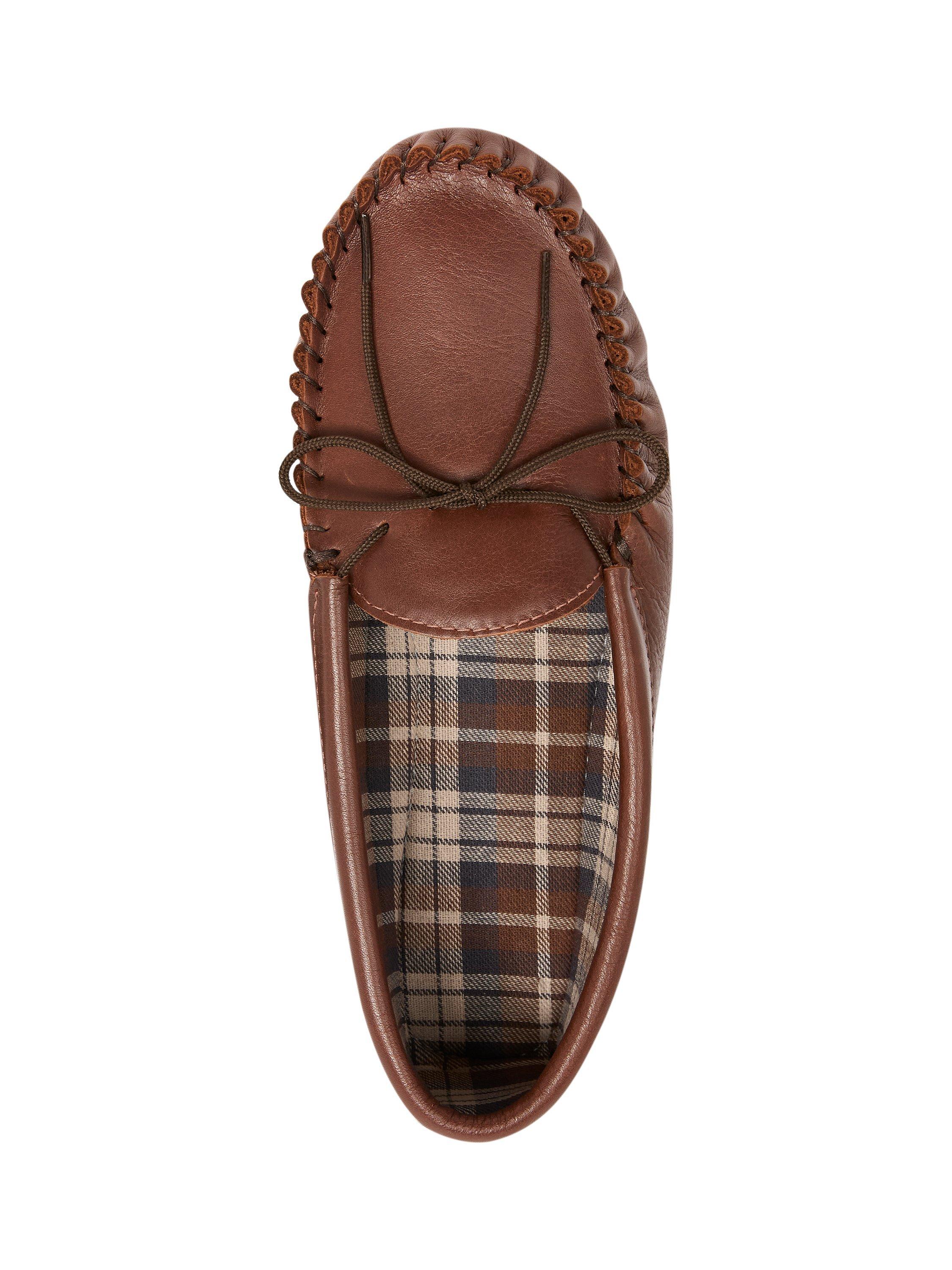 Channel the refinement of a weekend spent on the fairway with these golf moccasins. Created in soft leather with a characterful grain, these lightweight slippers are designed to add comfort and elegance around the house. A checked cotton lining adds heritage charm inside, and the durable outsole will ensure these are your favourite pair for a long time to come. Create an individual, foot-hugging fit by adjusting the tipped cords at the vamp.