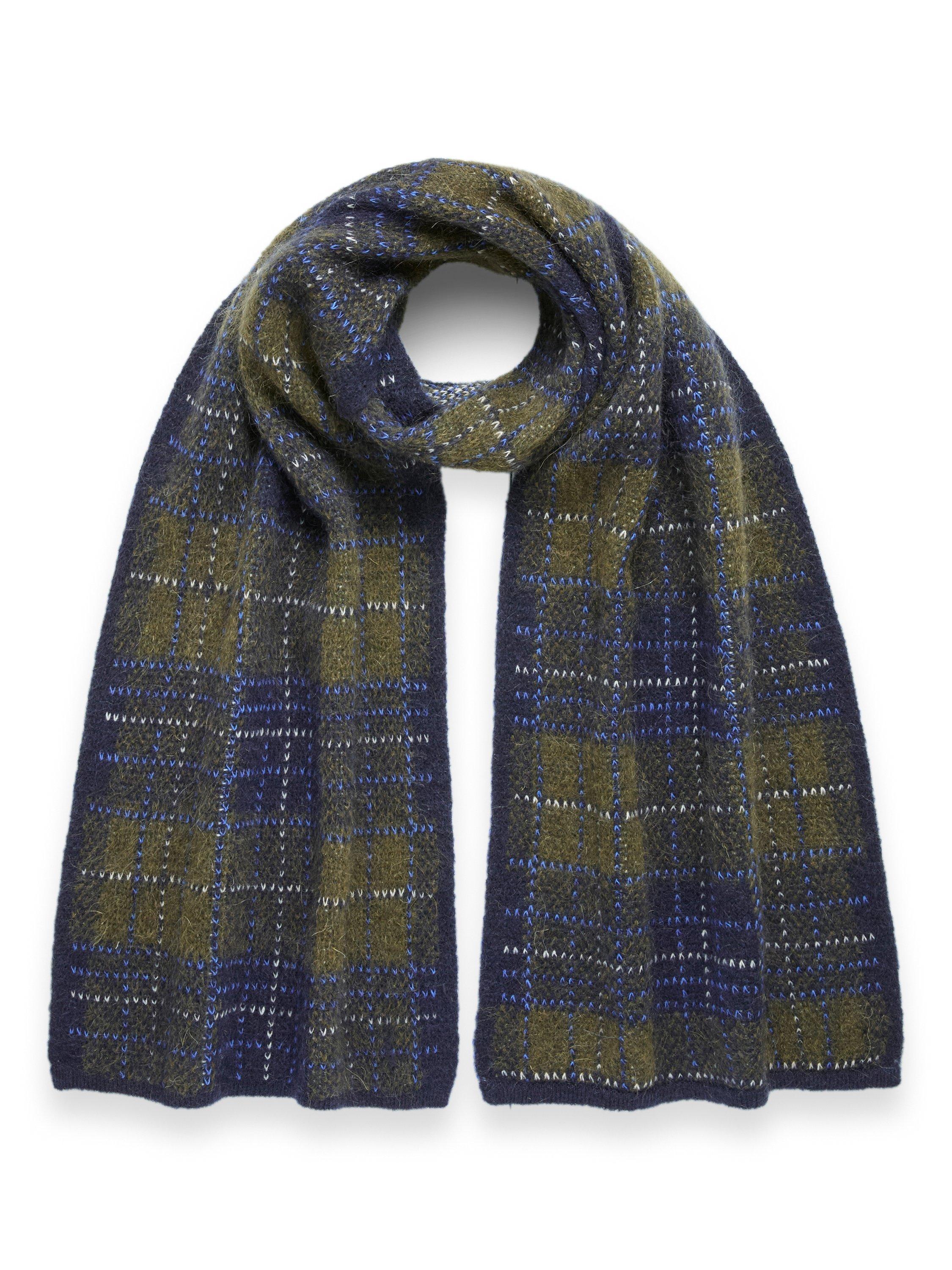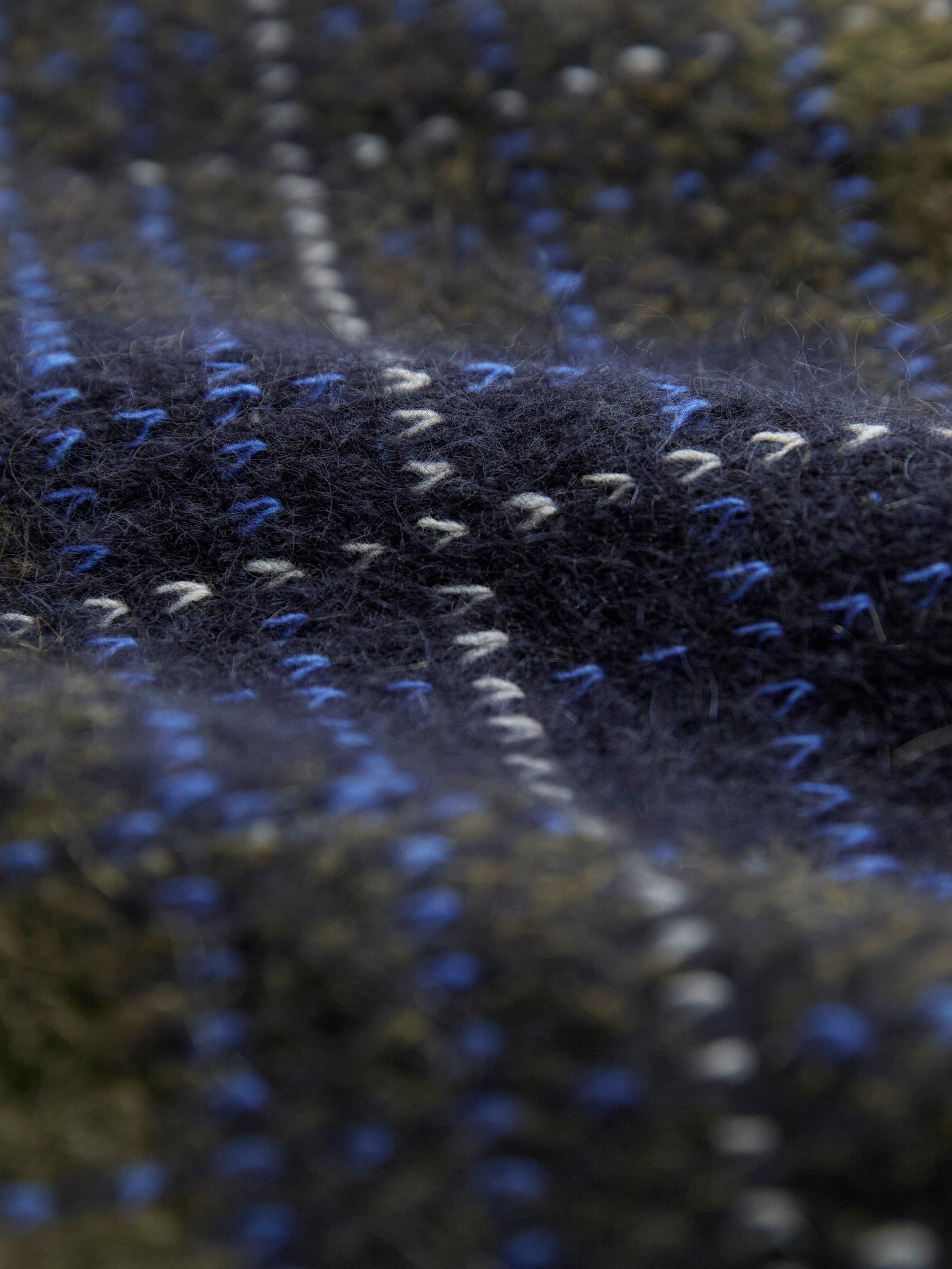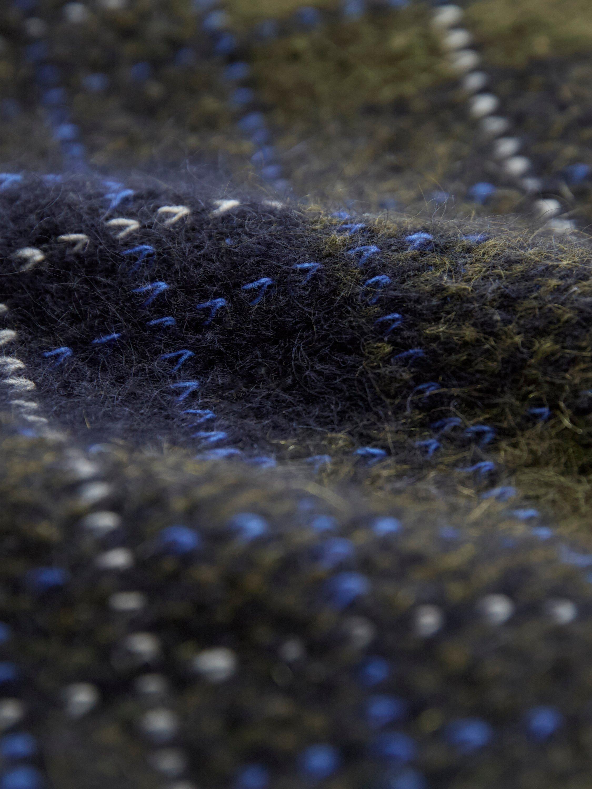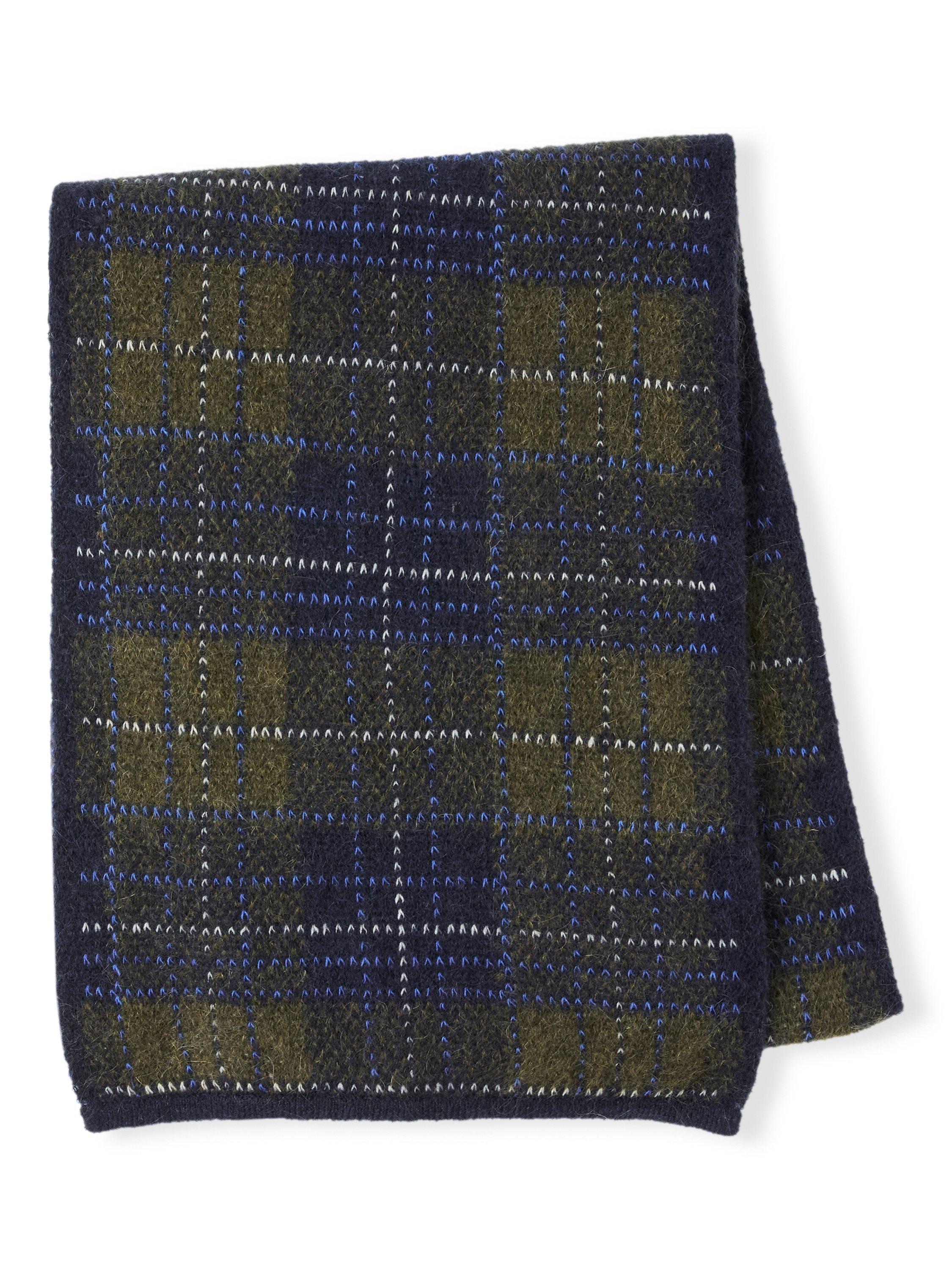 This scarf features a heritage check pattern woven into a soft, lofty blend including mohair for warmth and texture. Thick and cosy, it provides a comfortable layer for cooler days.