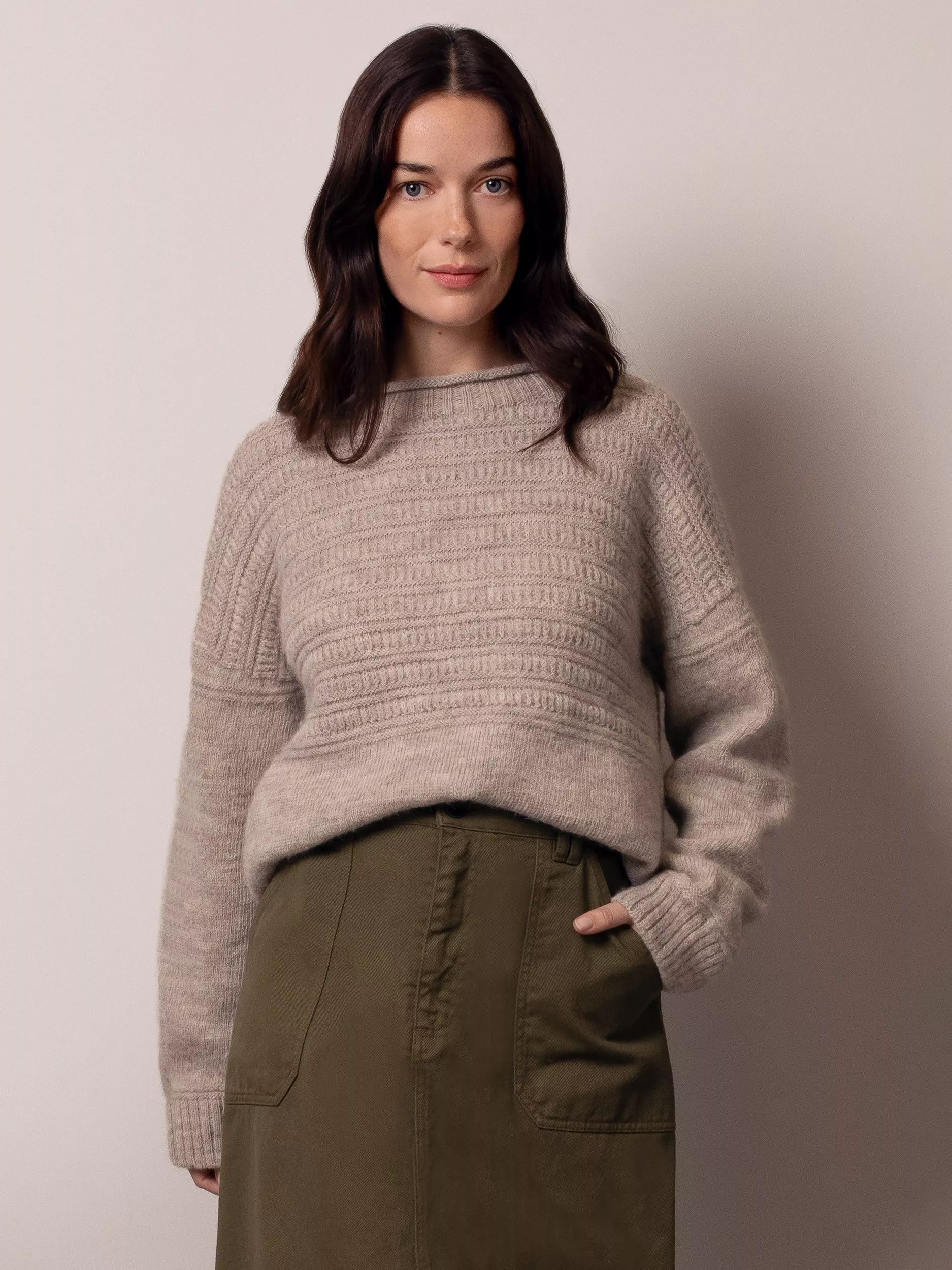 The British Wool Heritage Gansey Jumper features a classic crew neckline and long sleeves, drawing inspiration from traditional fishermen’s ganseys. It is crafted with intricate stitch detailing on the yoke and subtle gansey patterns on the cuffs and hem, complemented by ribbed trims for a refined finish. The jumper offers a comfortable and timeless fit, combining quality craftsmanship with a distinctive design that reflects a rich heritage. Its soft, warm fabric provides excellent comfort and durability, making it a versatile addition to any wardrobe.
