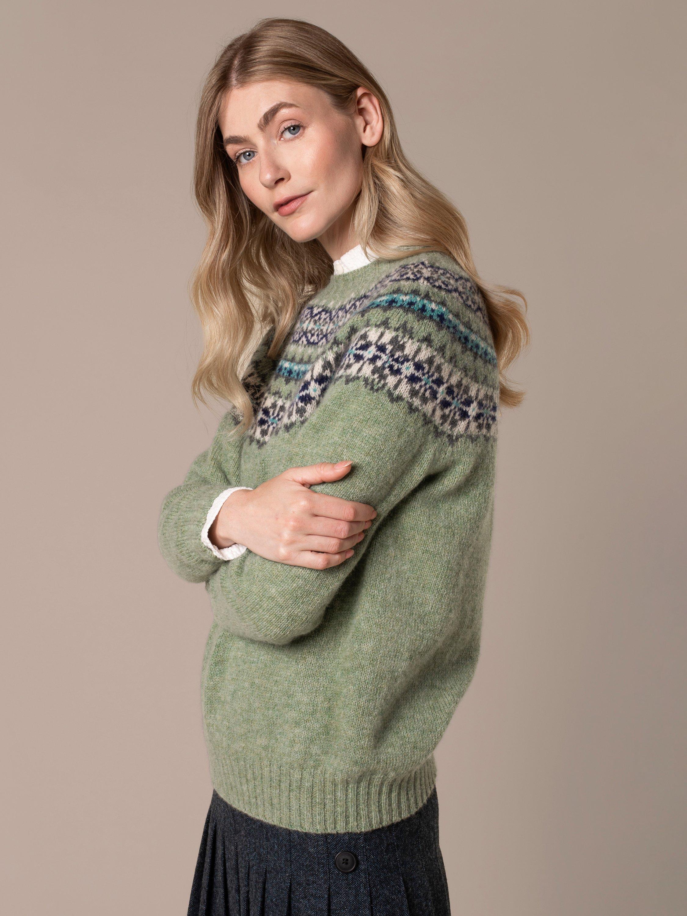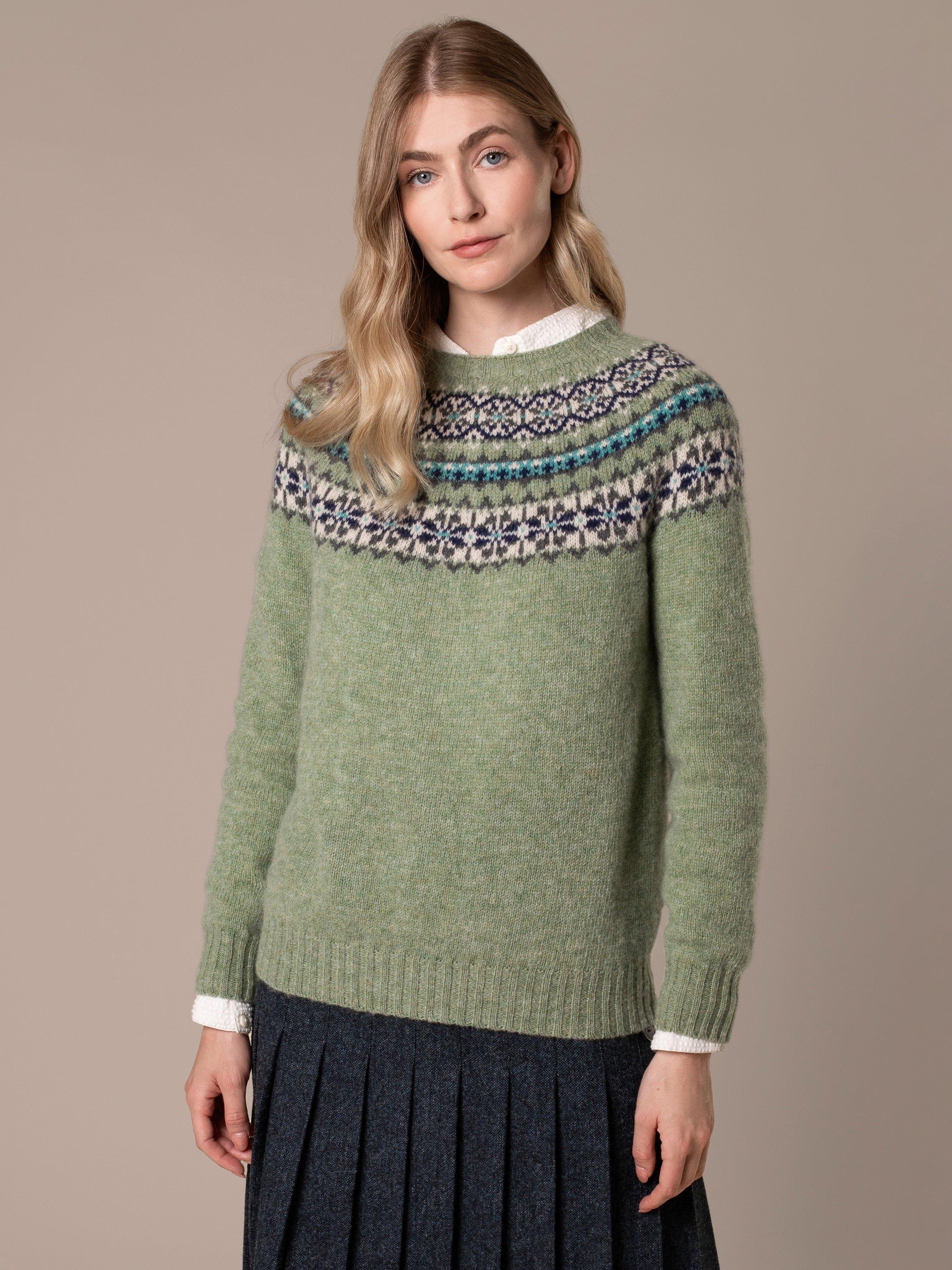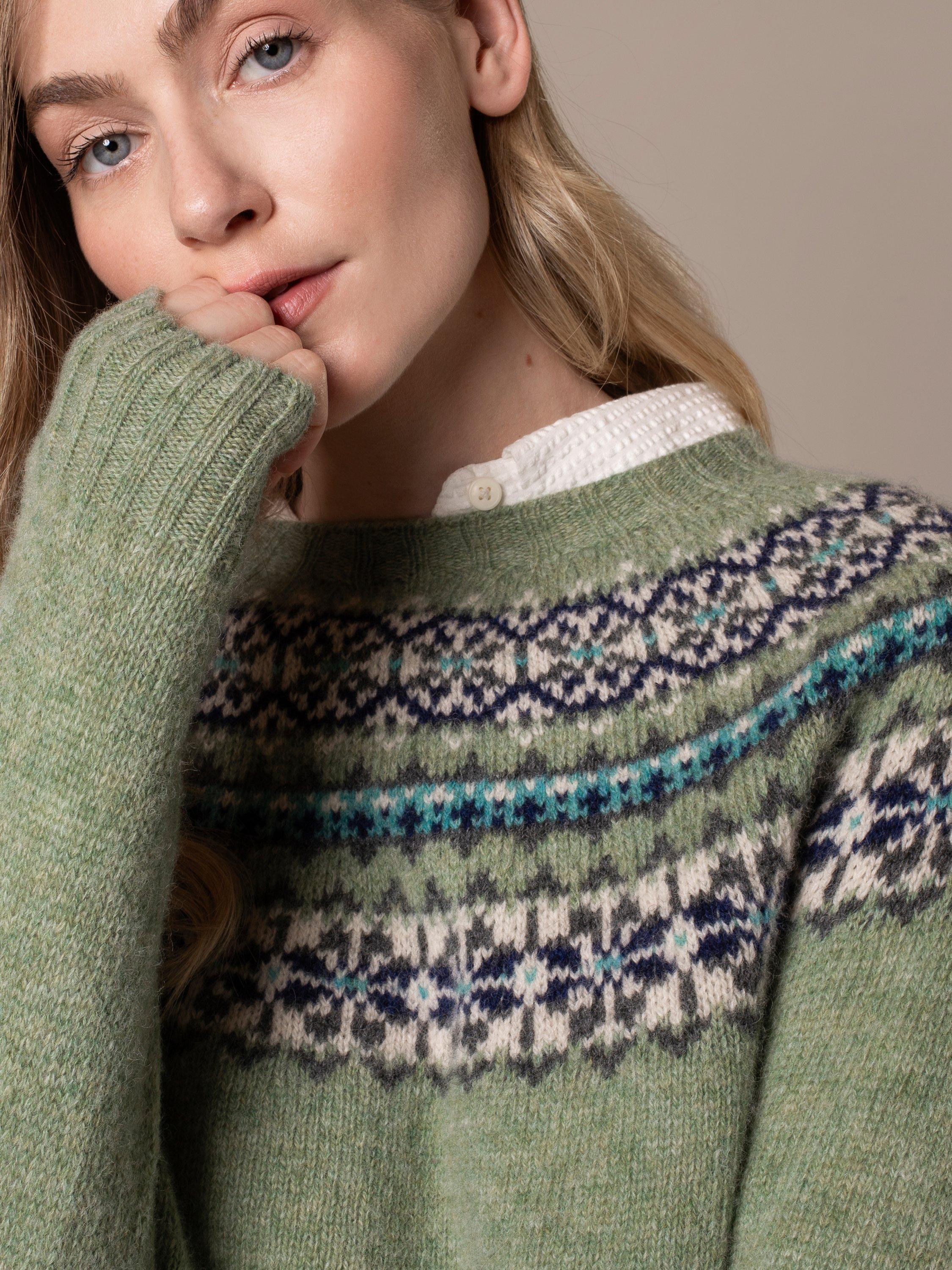 Created from pure wool, this mid-weight round neck jumper by Celtic & Co. features a snug and cosy fair isle pattern.