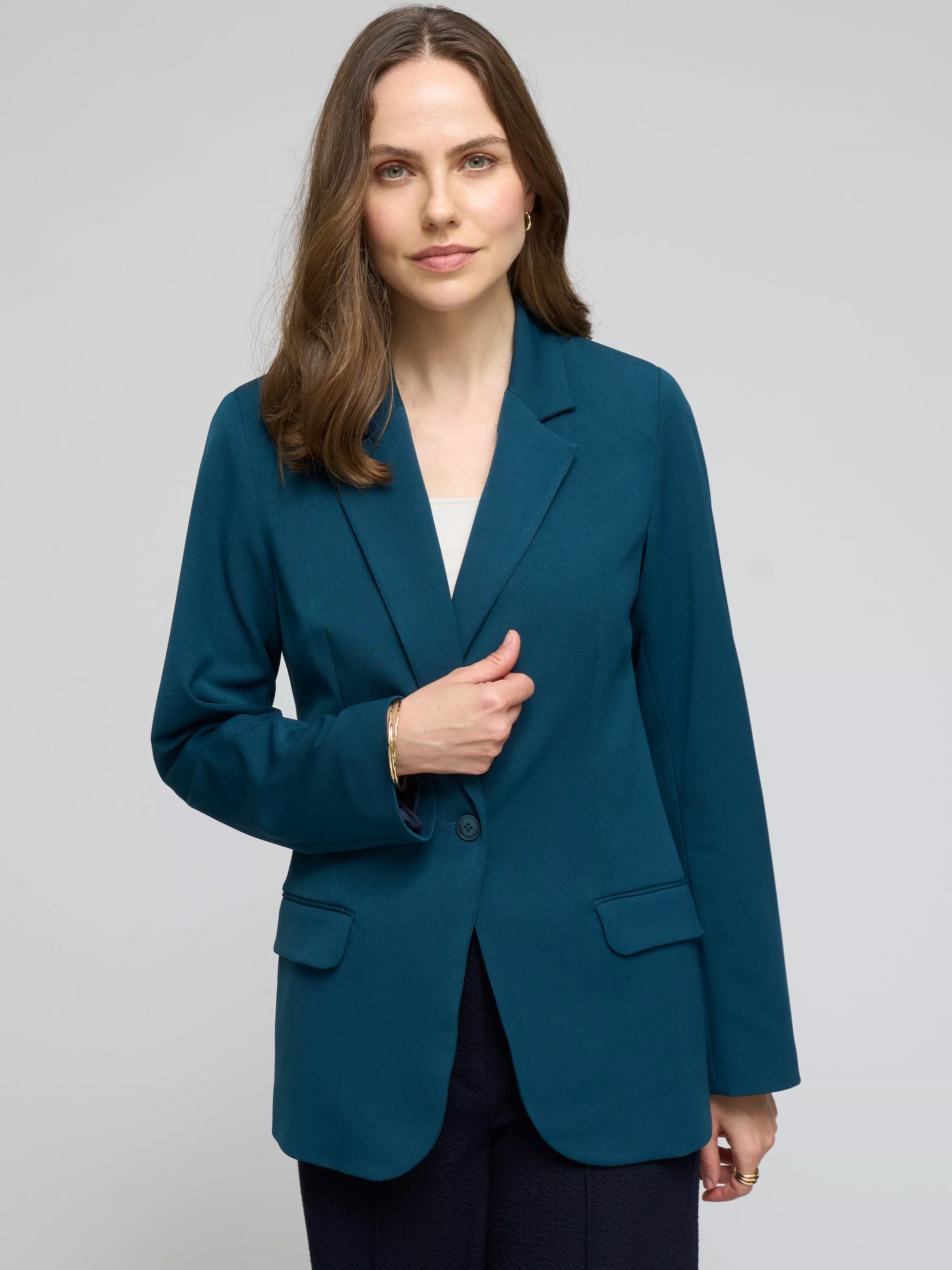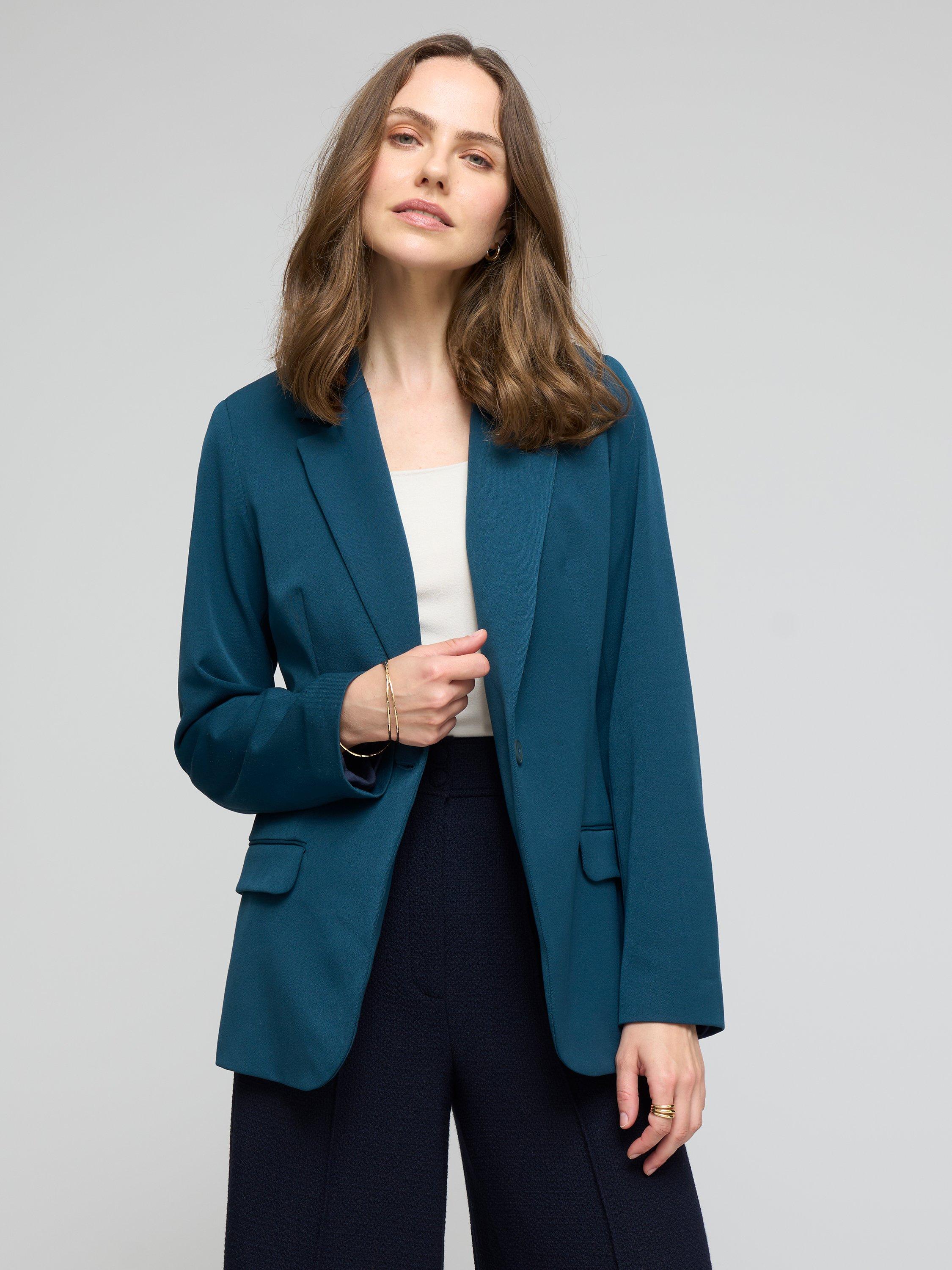 A regular fit blazer that moves with you, worn open for a relaxed, off-duty look or buttoned for a more tailored touch.