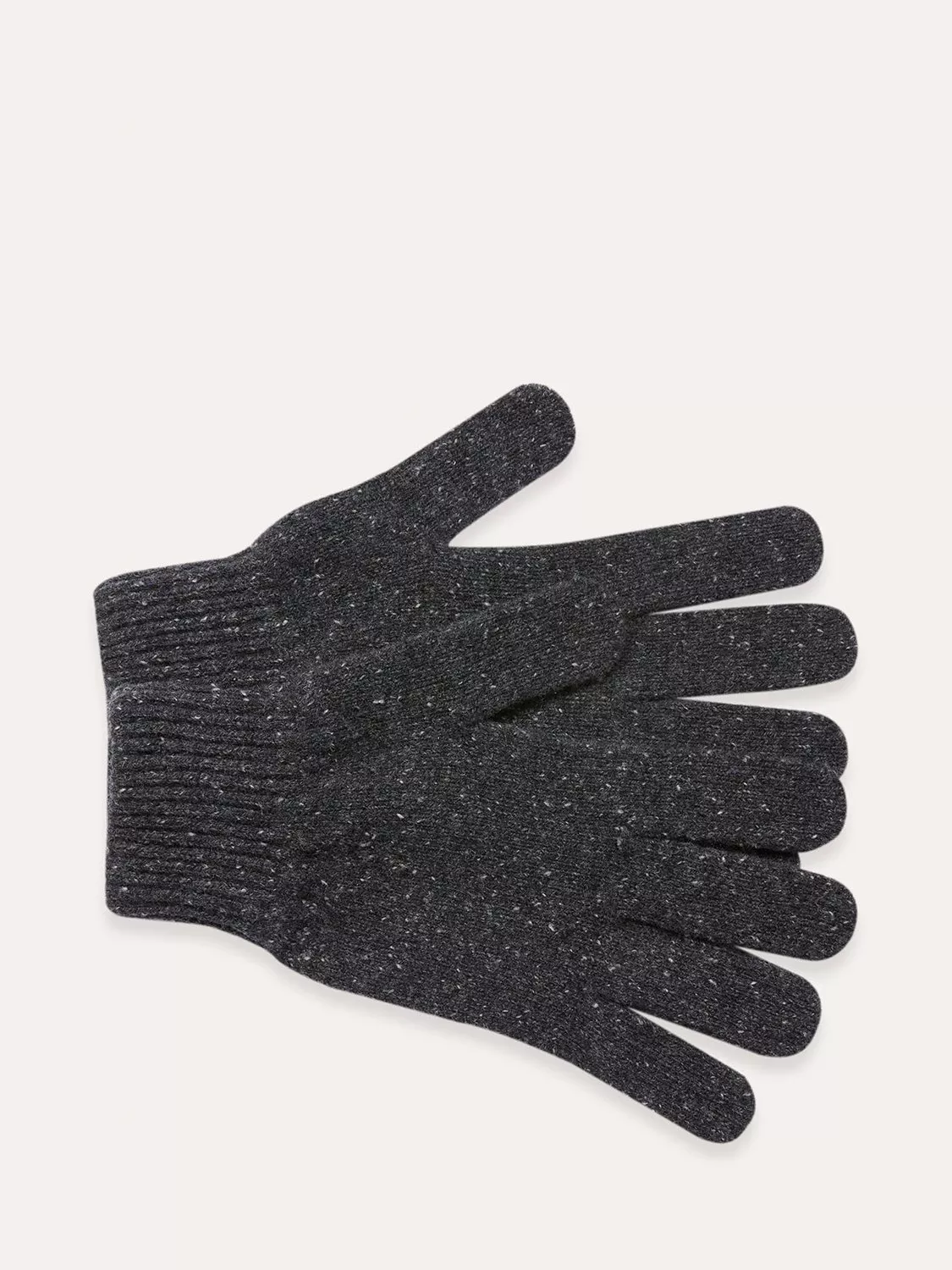Made in Britain from merino and cashmere yarn, these five-finger gloves offer a classic knitted design with a ribbed cuff for a secure, comfortable fit. Ideal for refined warmth during colder months.