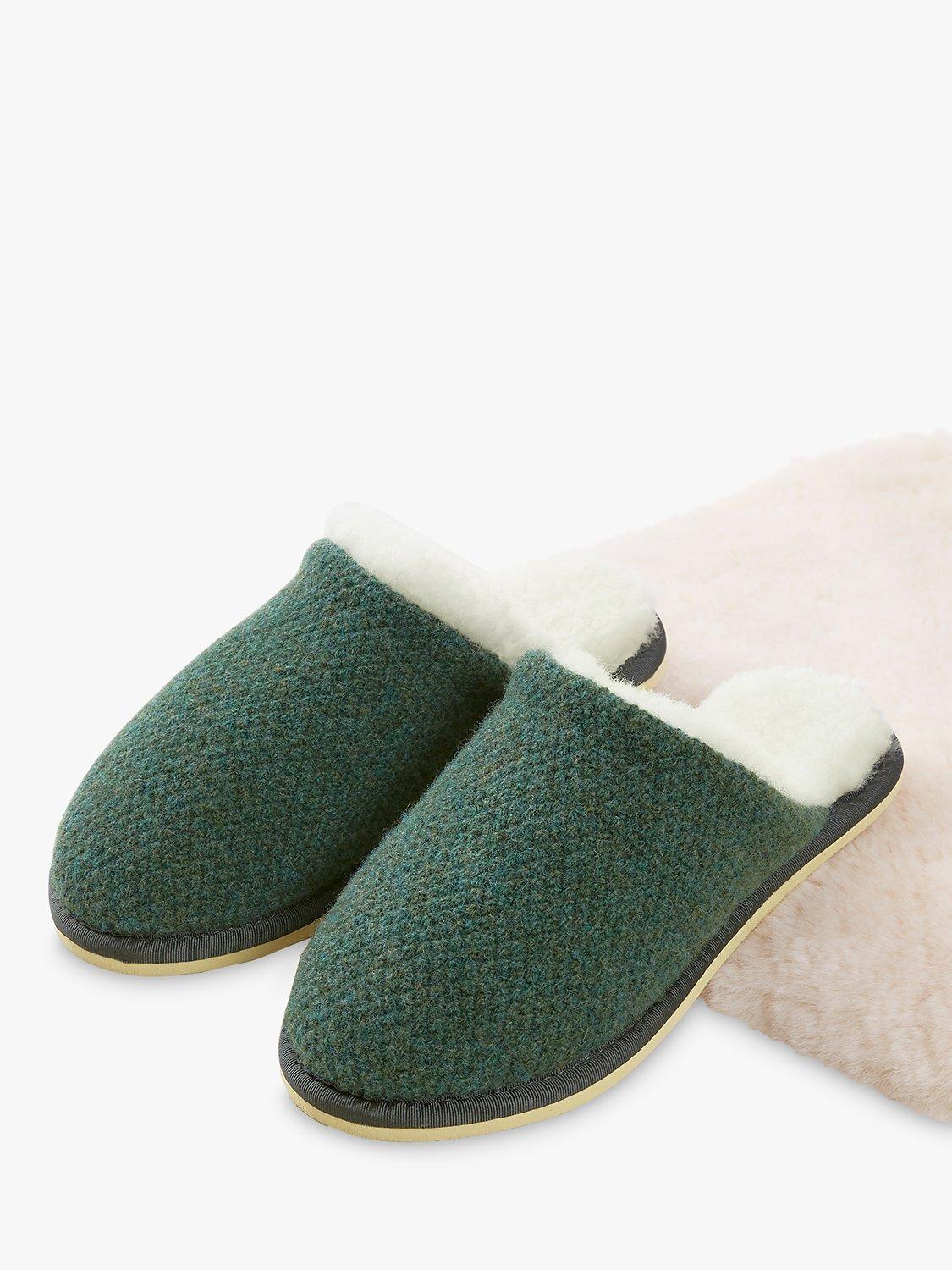 For padding around the house in style, these backless slippers by Celtic & Co. are made from wool for luxurious warmth.