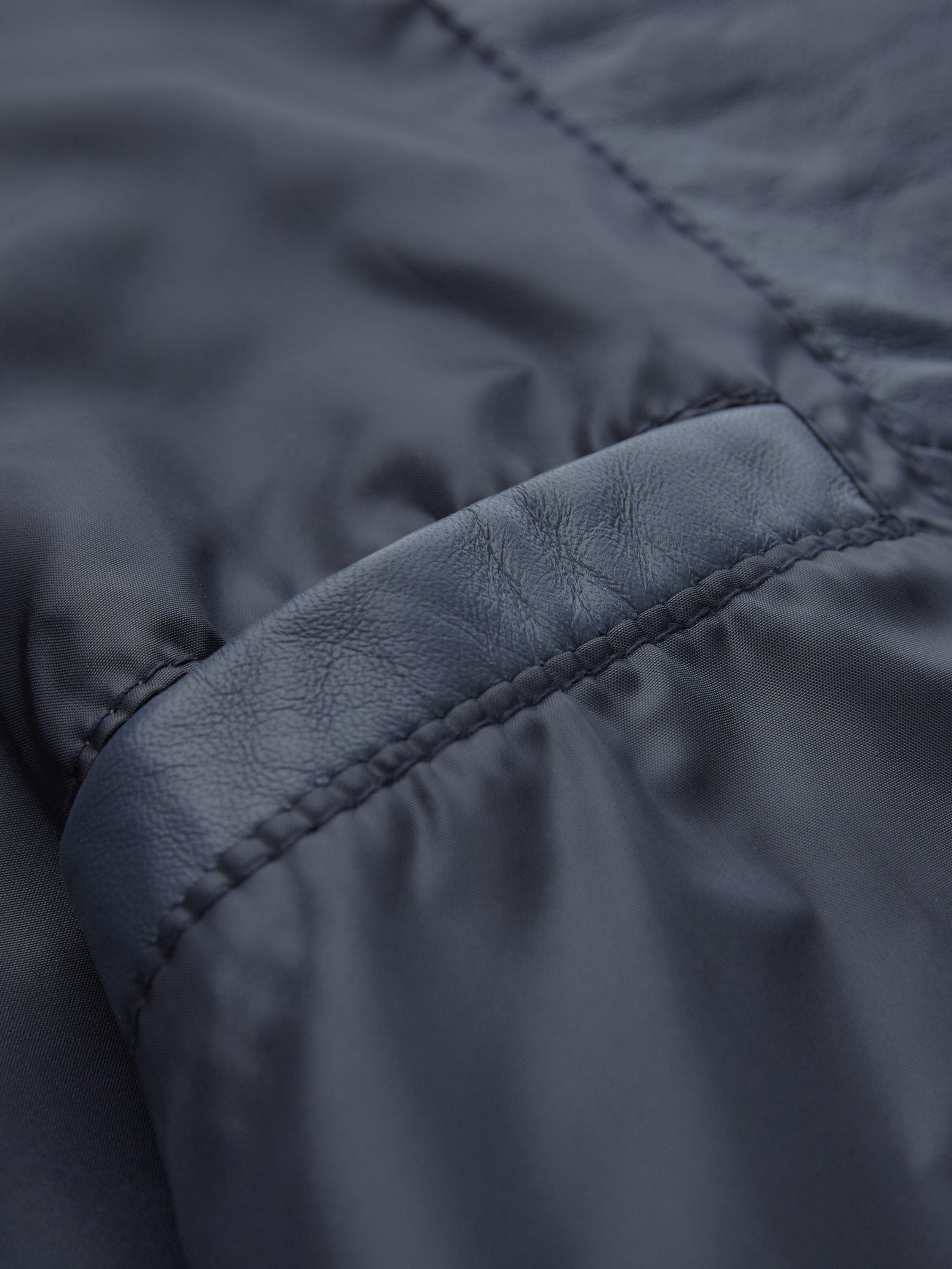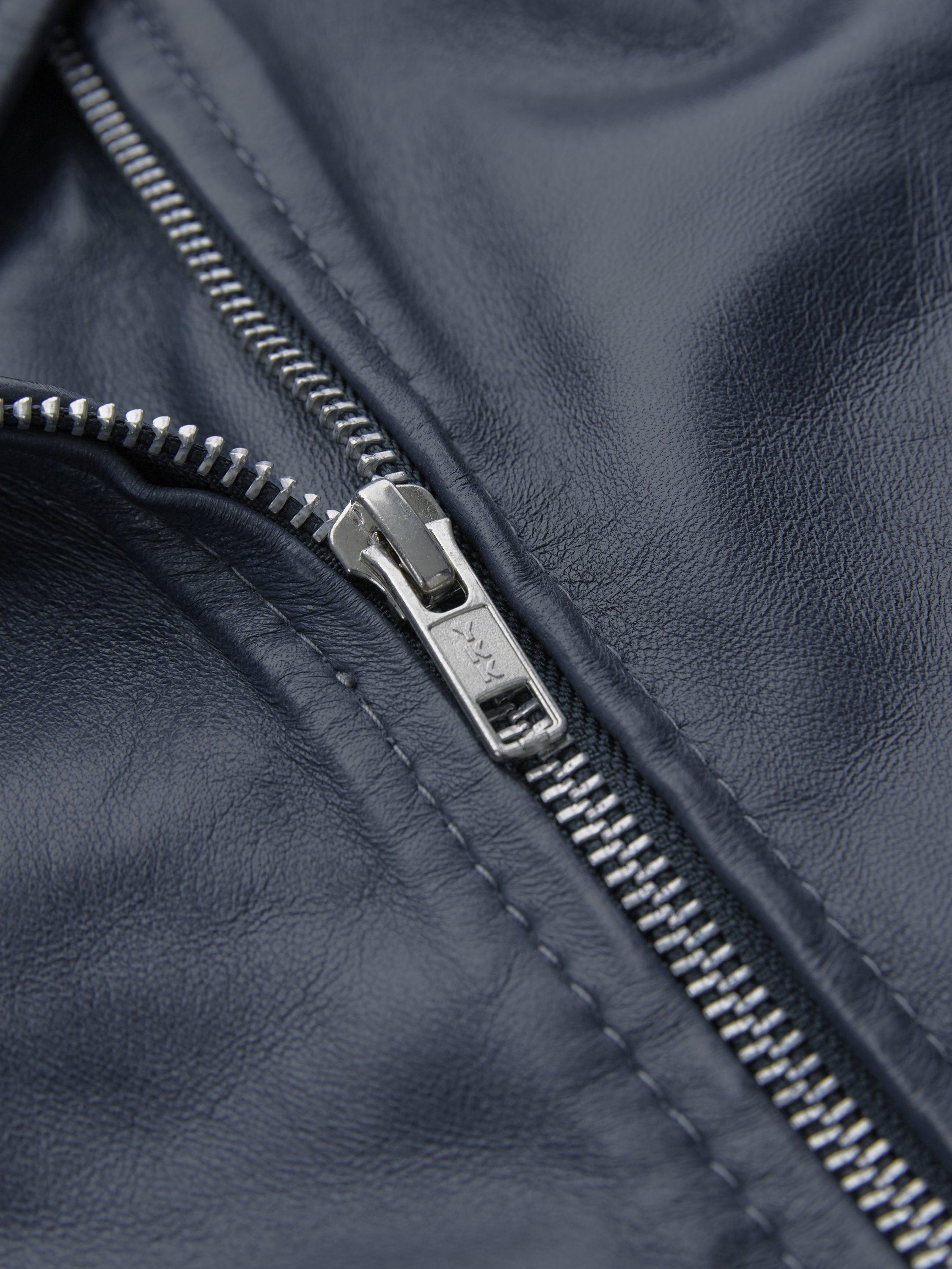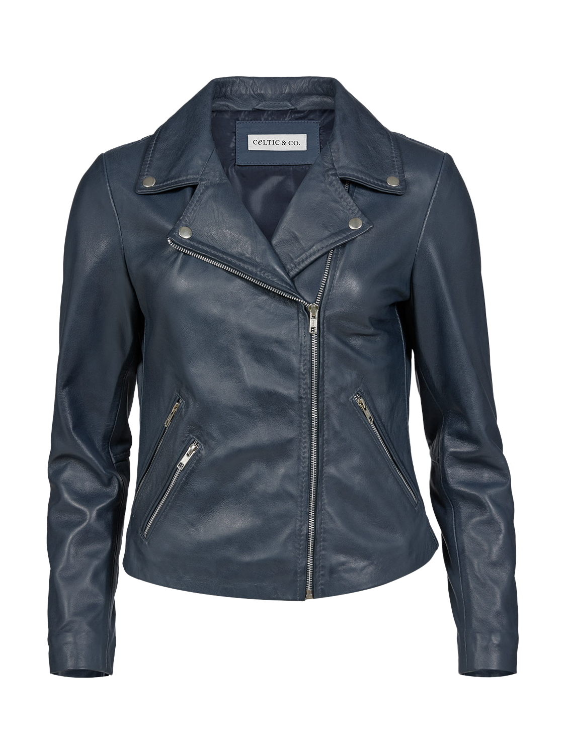 A classic biker style leather jacket with zipped pockets and popper stud detail on the collar lapels. Providing a slim, neat fit, the off-centre zip adds a flattering element.