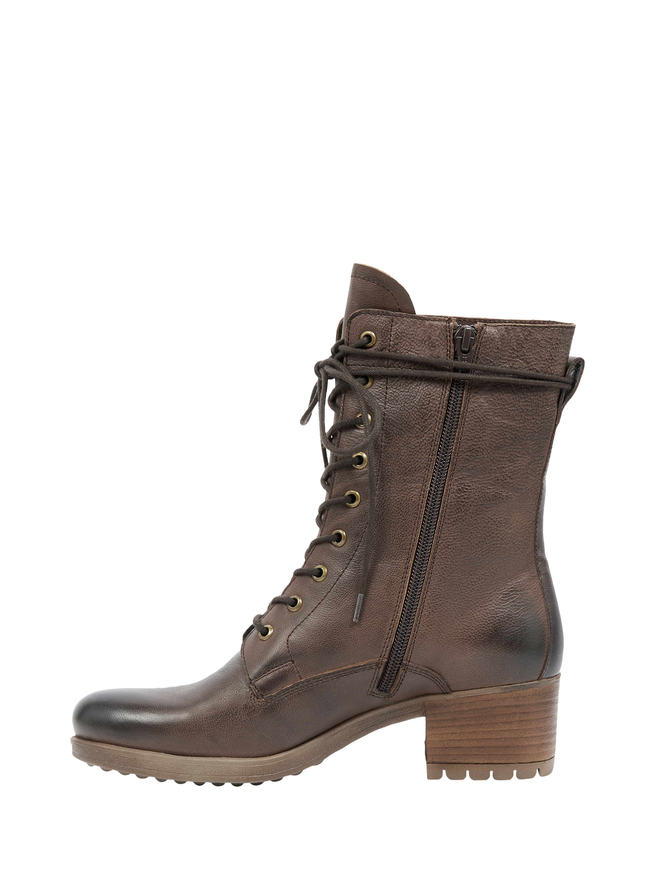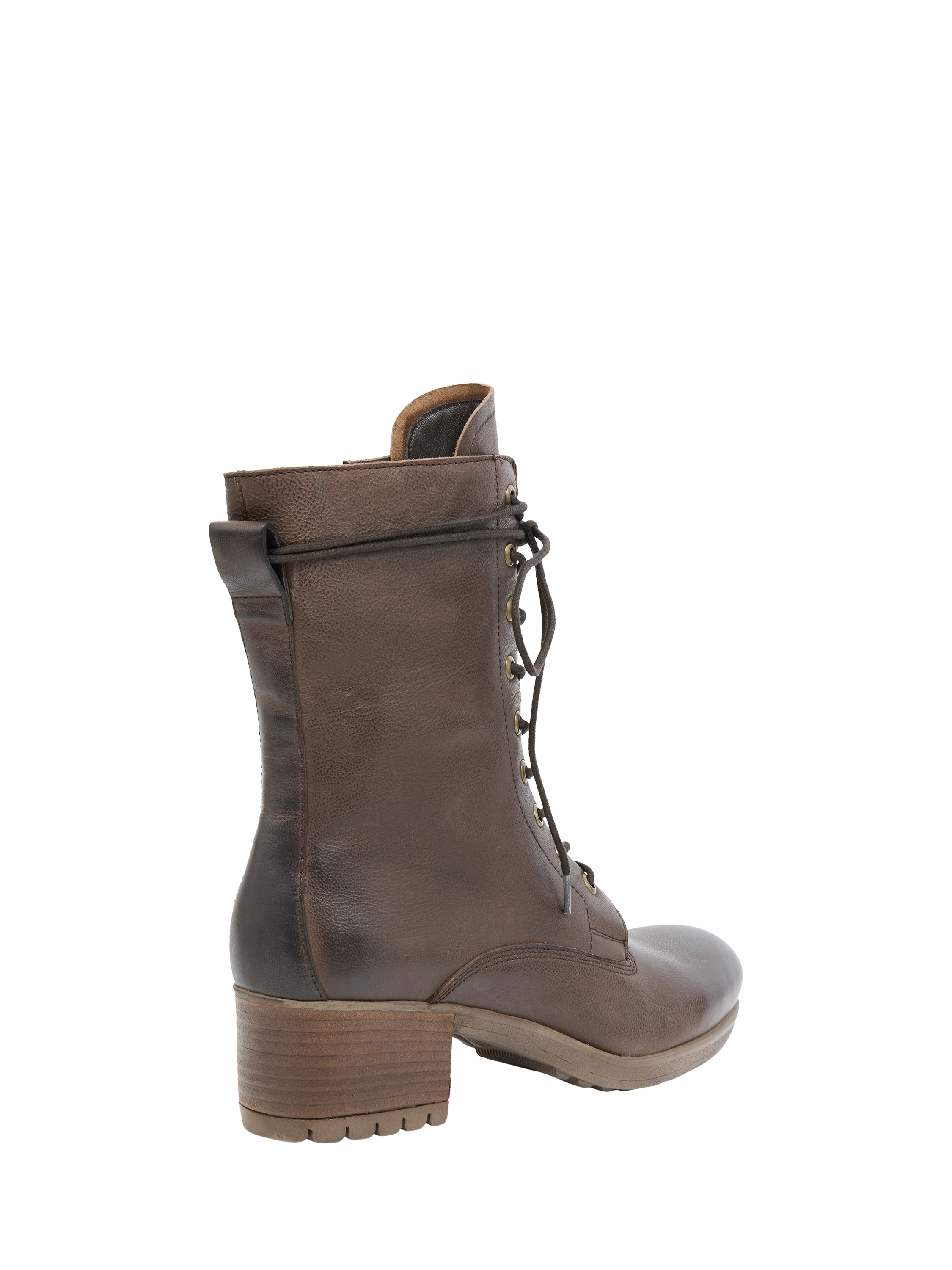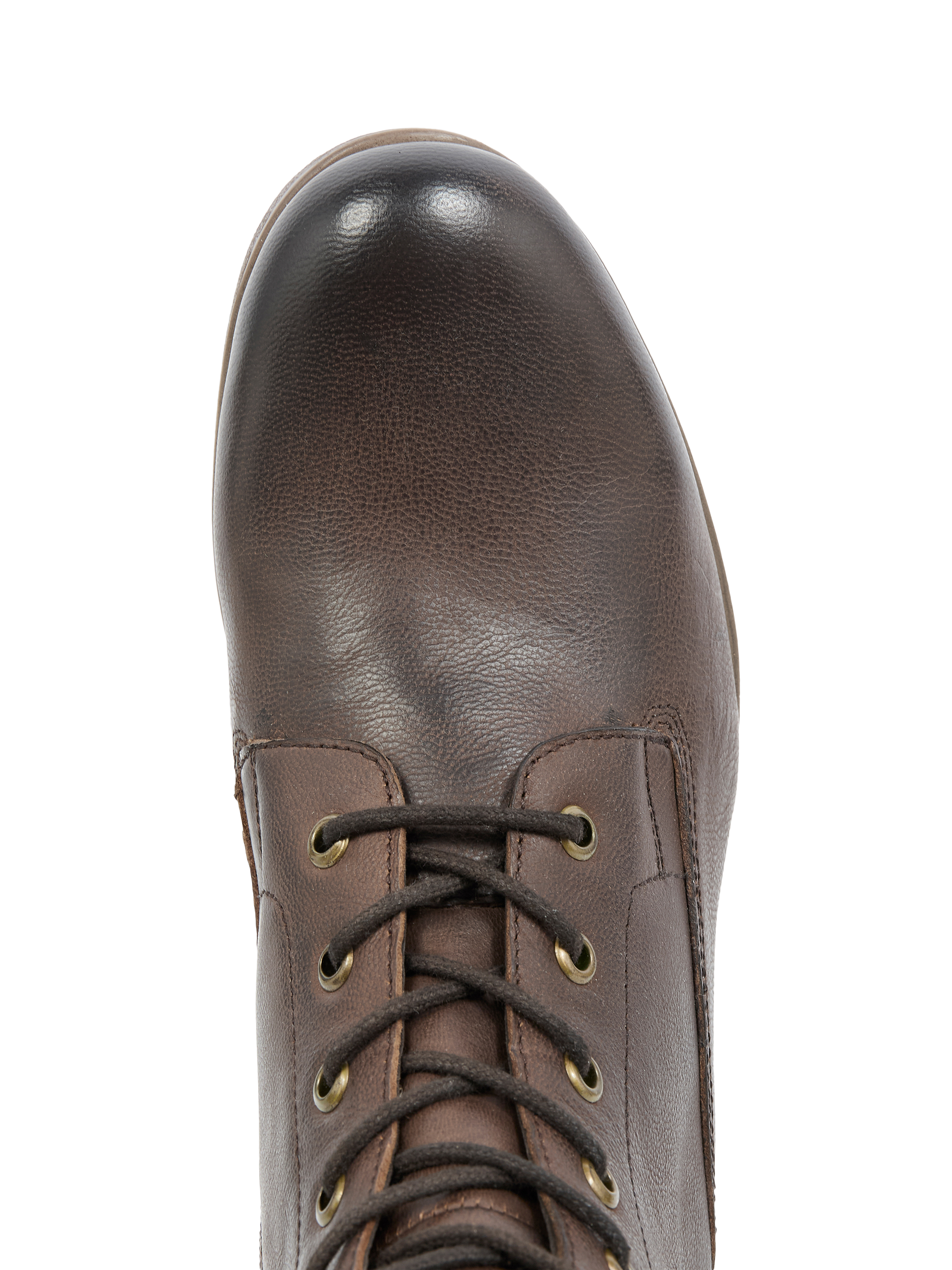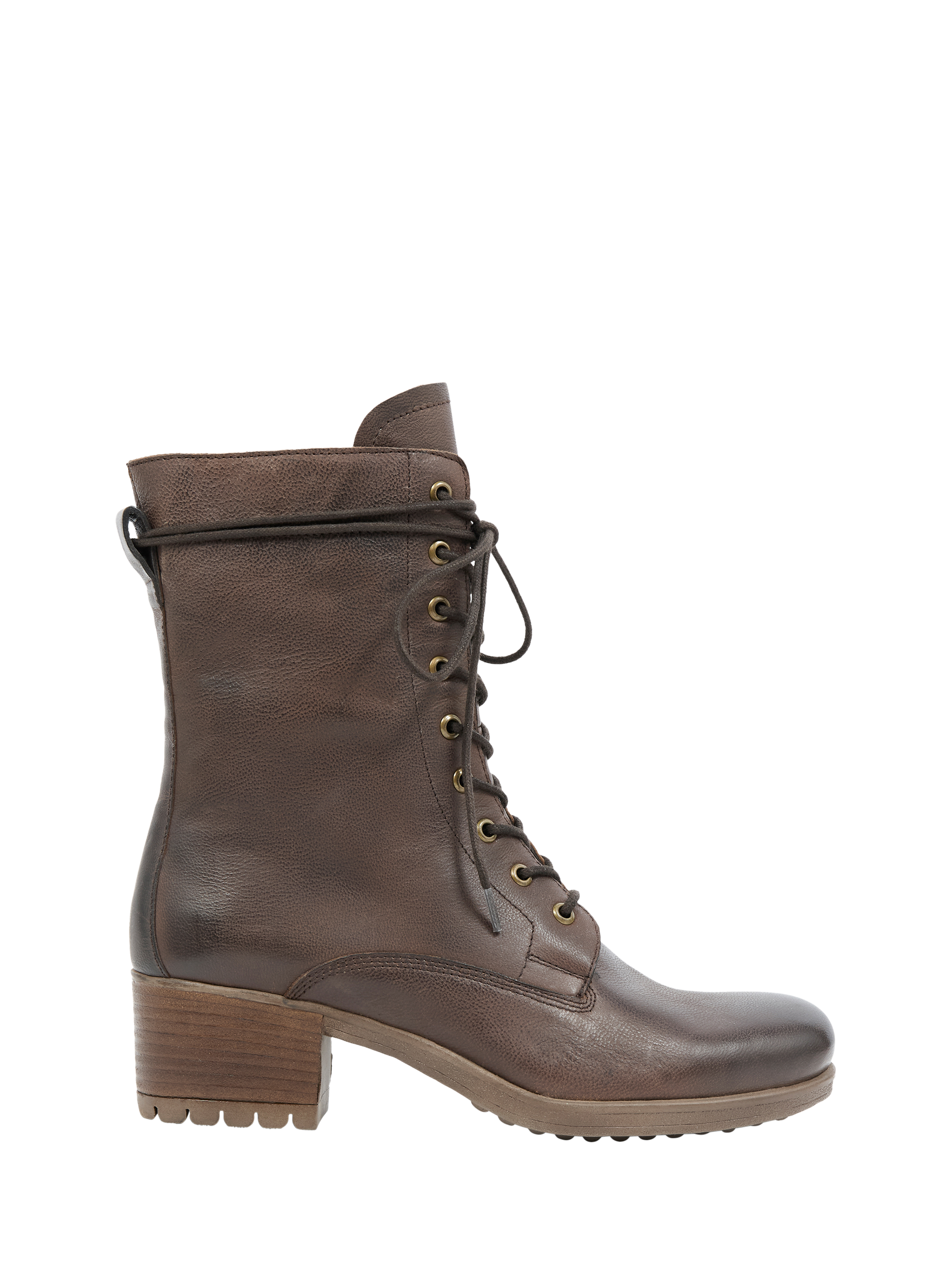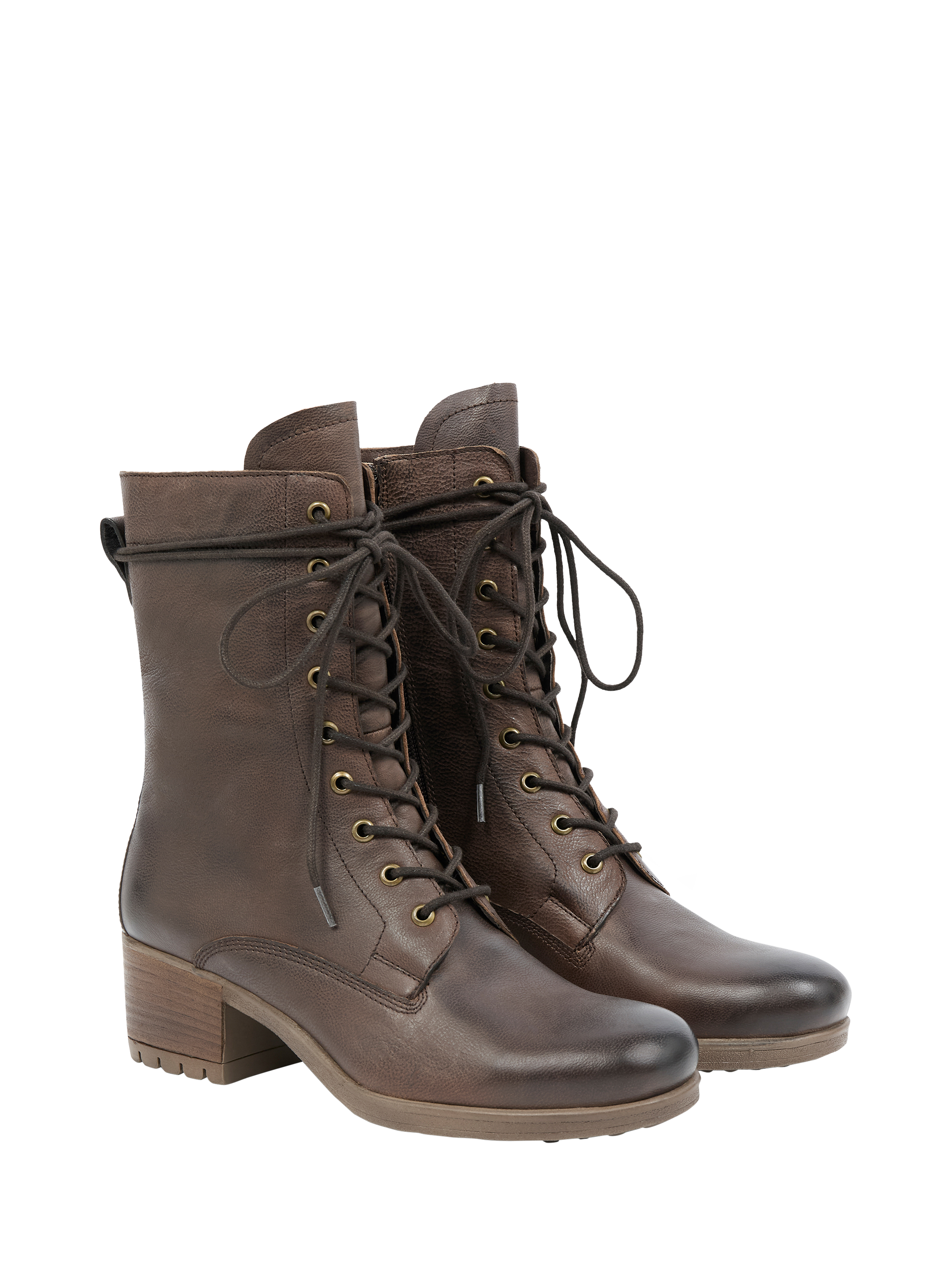 Introducing Celtic & Co.'s block heel derby boot in pure leather. Featuring lace-up detail and a convenient zip opening for easy dressing, it's designed with a modern block heel for added flair.
