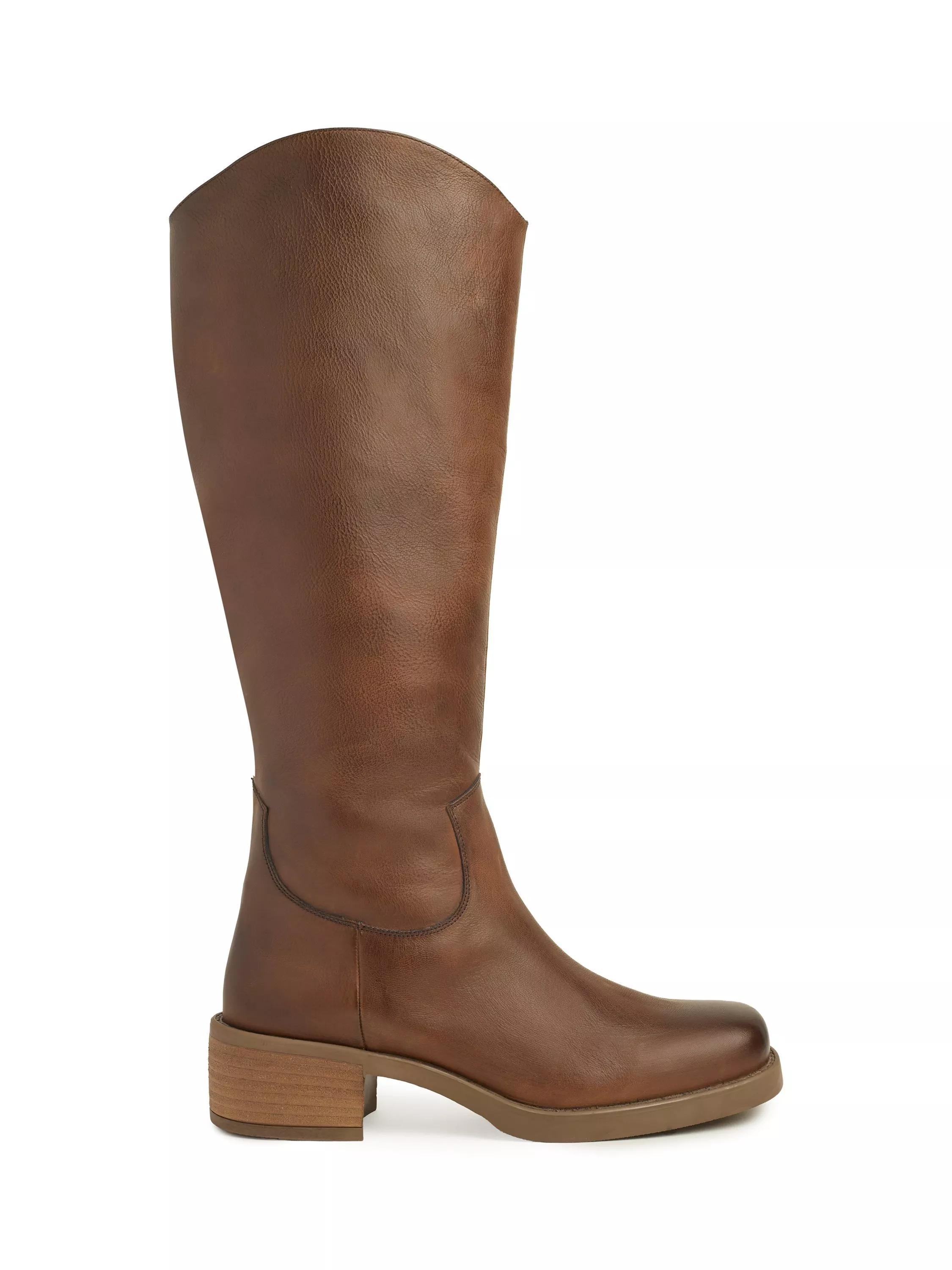 Celtic & Co.Leather Block Heel Knee High Boots, Tan