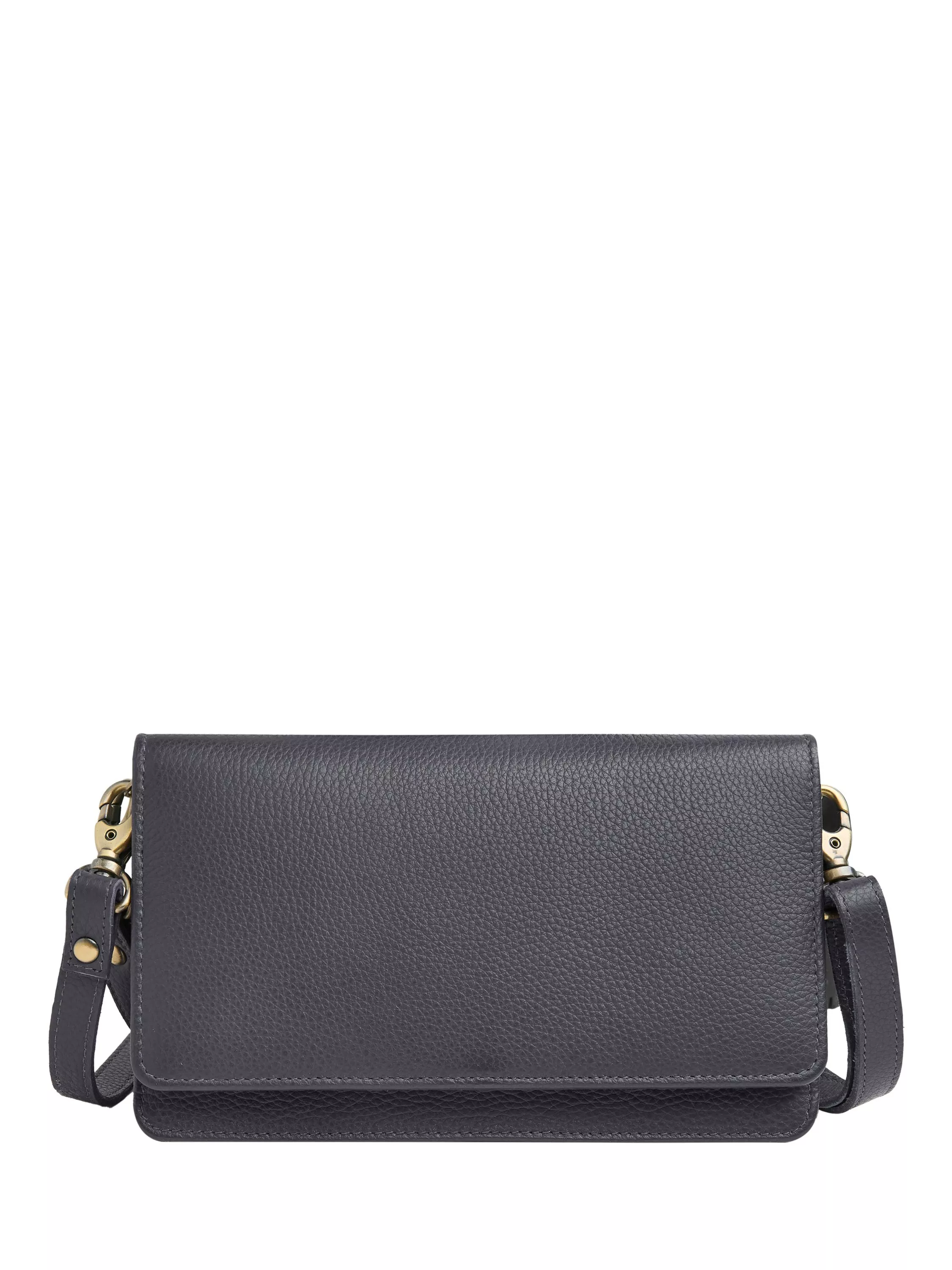 Designed in a lovely, rich leather accented by antique metal finish hardware, Celtic & Co.'s soft phone bag is stylish and on-trend. Features include a cross body strap for easy wear that can be clipped off, with the choice of a handy wrist strap or no-strap option. The front flap with popper fastening detail allows for easy access but added security. This versatile design provides room for most smartphones plus your daily essentials, including credit cards and an inner pocket for paper money.