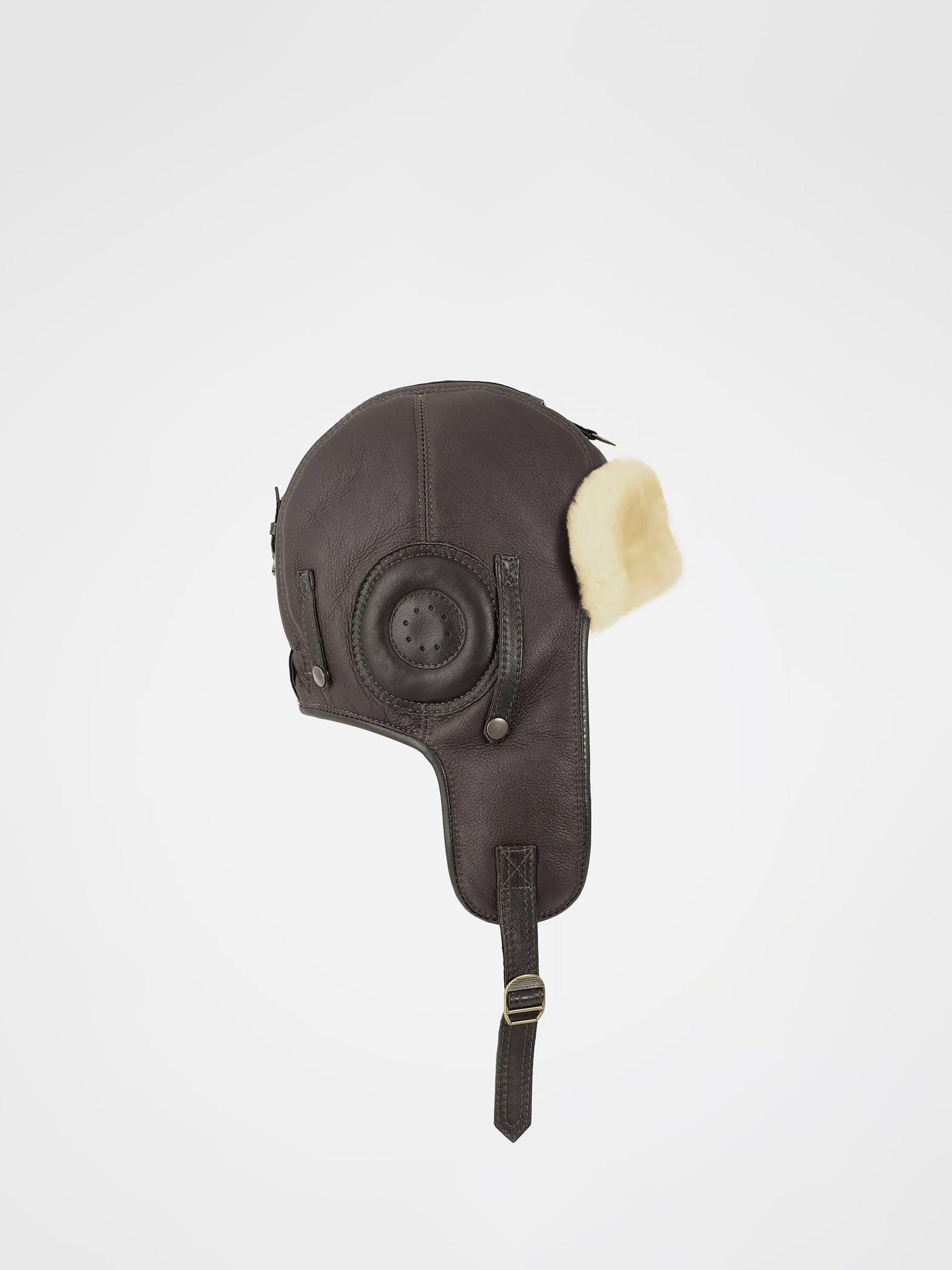 Celtic & Co.Leather Flying Cap, Mocca/Cream