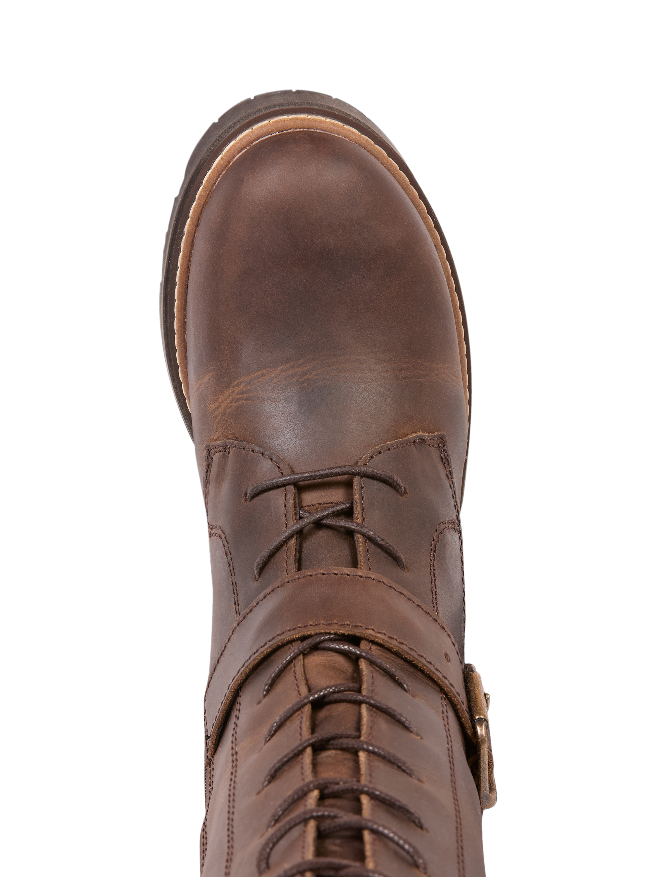 Leather lining adds comfort, while the chunky cleated sole with a contrast welt provides a sturdy and distinctive finish.