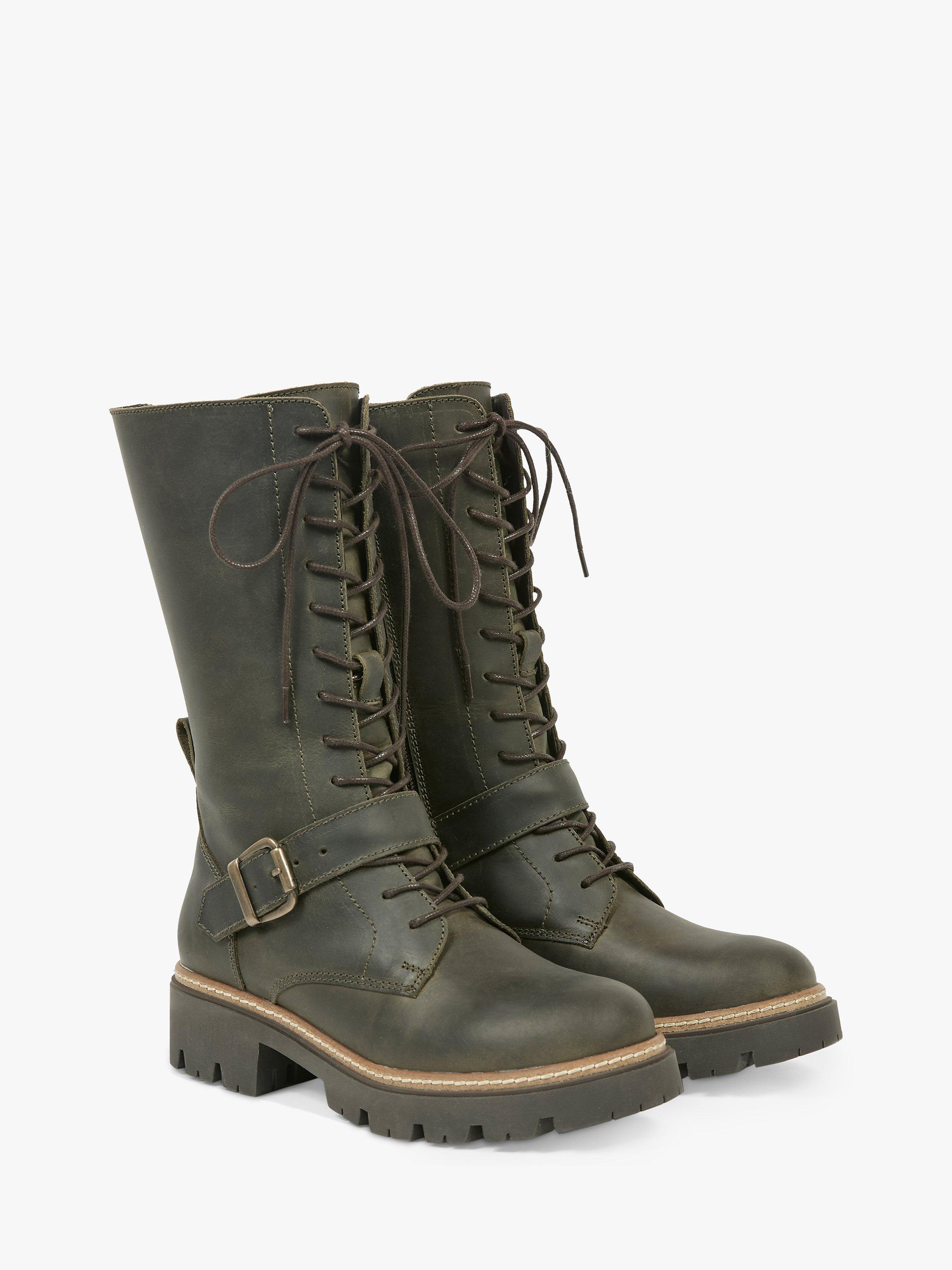 Celtic & Co.Leather Strap Detail Mid-Calf Boots, Olive