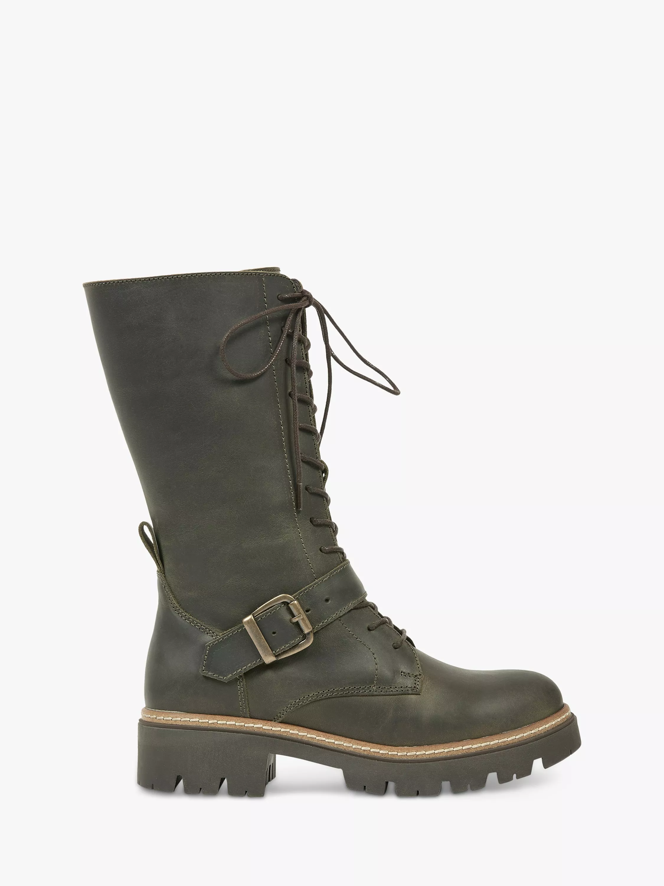 Celtic & Co.Leather Strap Detail Mid-Calf Boots, Olive, EU37