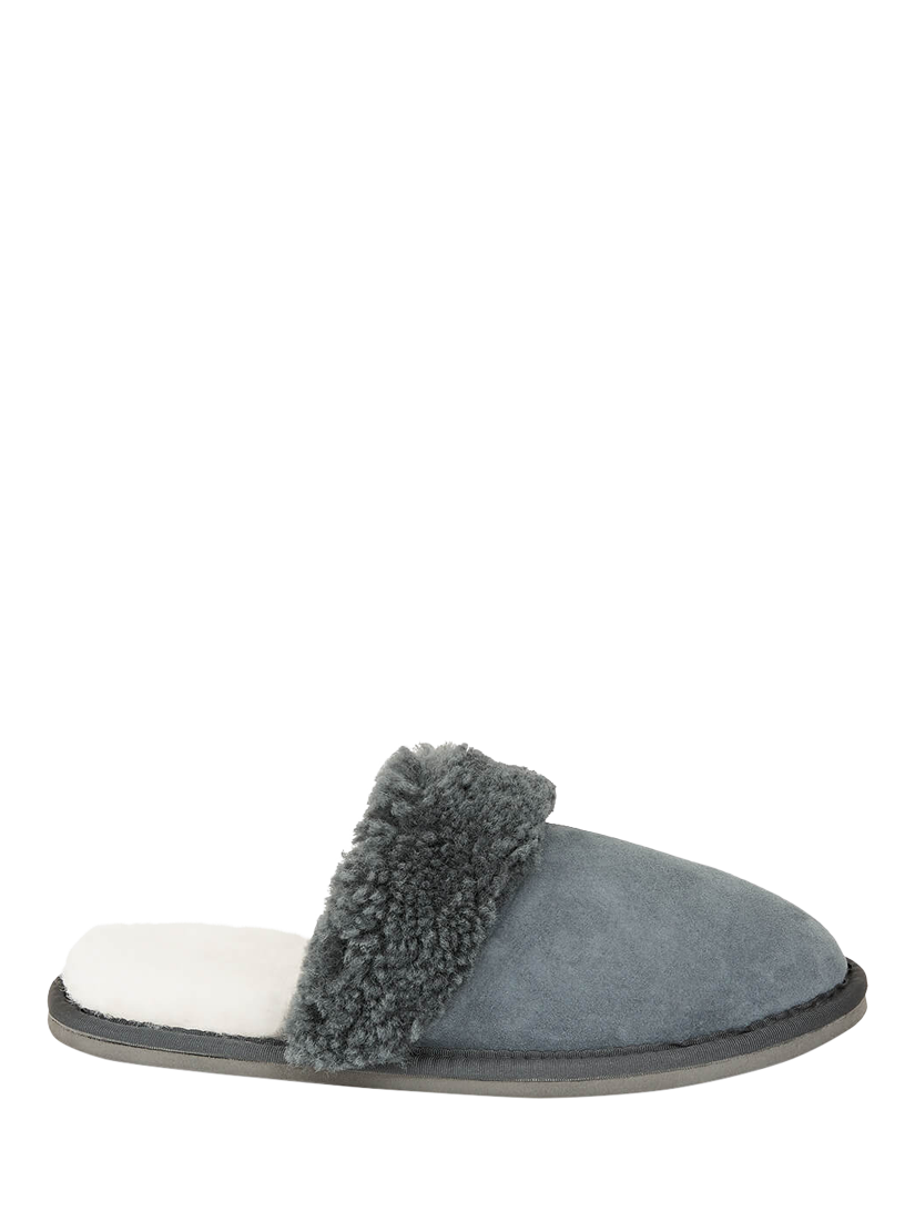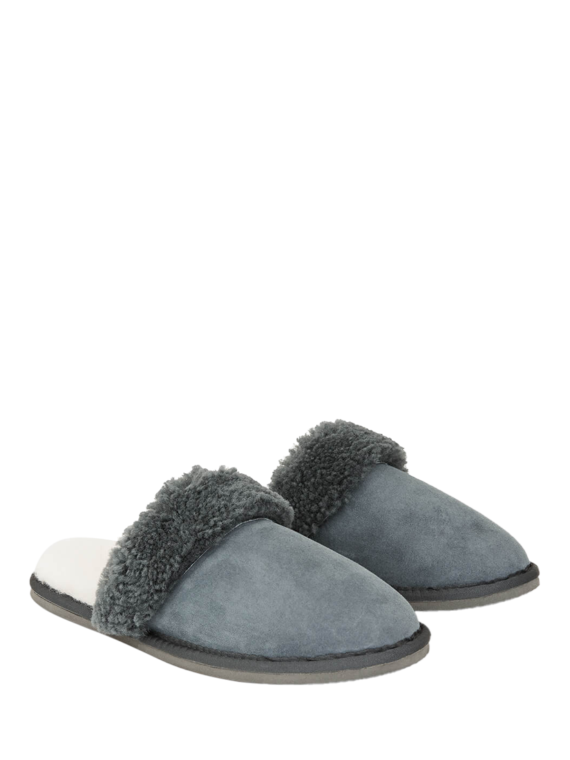 Celtic & Co.'s men's sheepskin mules embrace a backless style so that they slip on and off with ease, and are set on a durable outsole that can be worn outside as well as in.