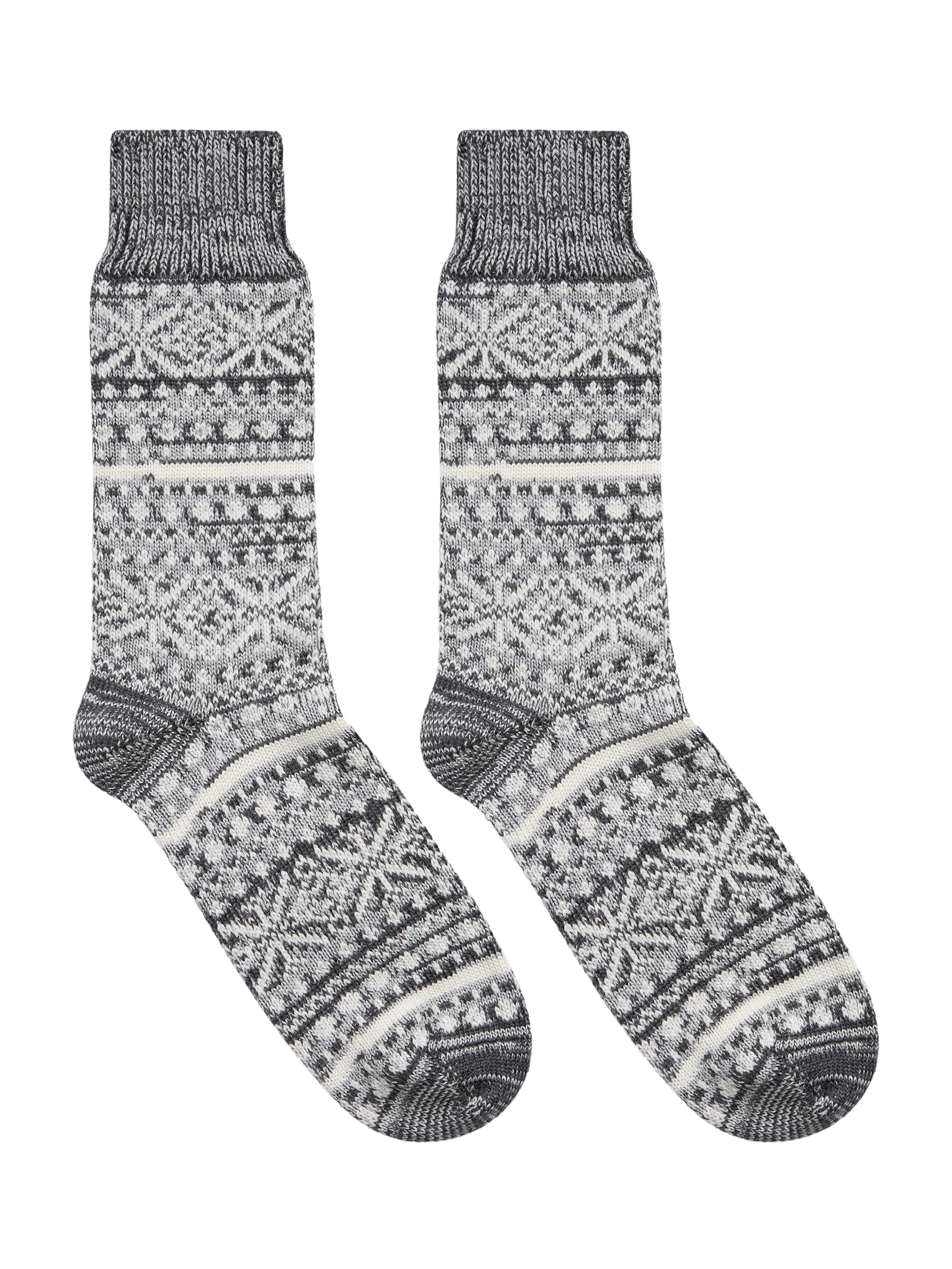 These socks are guaranteed to be a hit when you're next due to give gifts. Crafted in extra-fine Italian-spun Merino wool, they're blended with a touch of cotton for natural comfort and breathability. An all-over snowflake Fair Isle motif gives this pair plenty of traditional character.