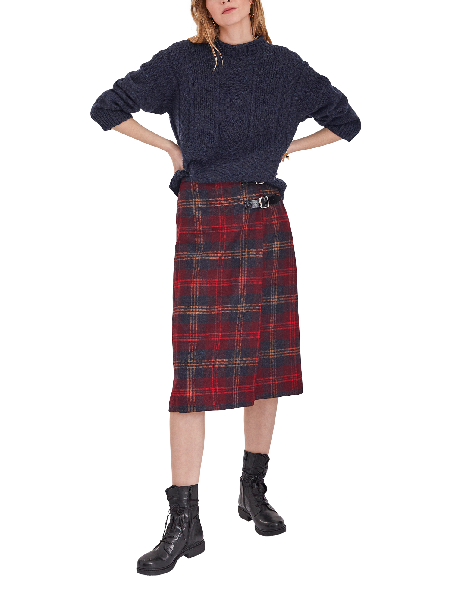 Our best-loved kilt but in a trending midi length to fall around mid calf. The longer cut makes this the ideal foundation for building a modern winter look with hints of the traditional. Expertly crafted for Celtic & Co. by one of the last remaining kilt manufacturers in Scotland, this fully lined kilt is made in pure wool with a wrapped design and twin leather straps for an adjustable fit at the waist. Team it with our felted funnel-neck jumper and your favourite boots. And don't forget your kilt pin: those in the know place it on the right-hand side between 2-4 inches from the bottom and 1.5-2 inches from the side