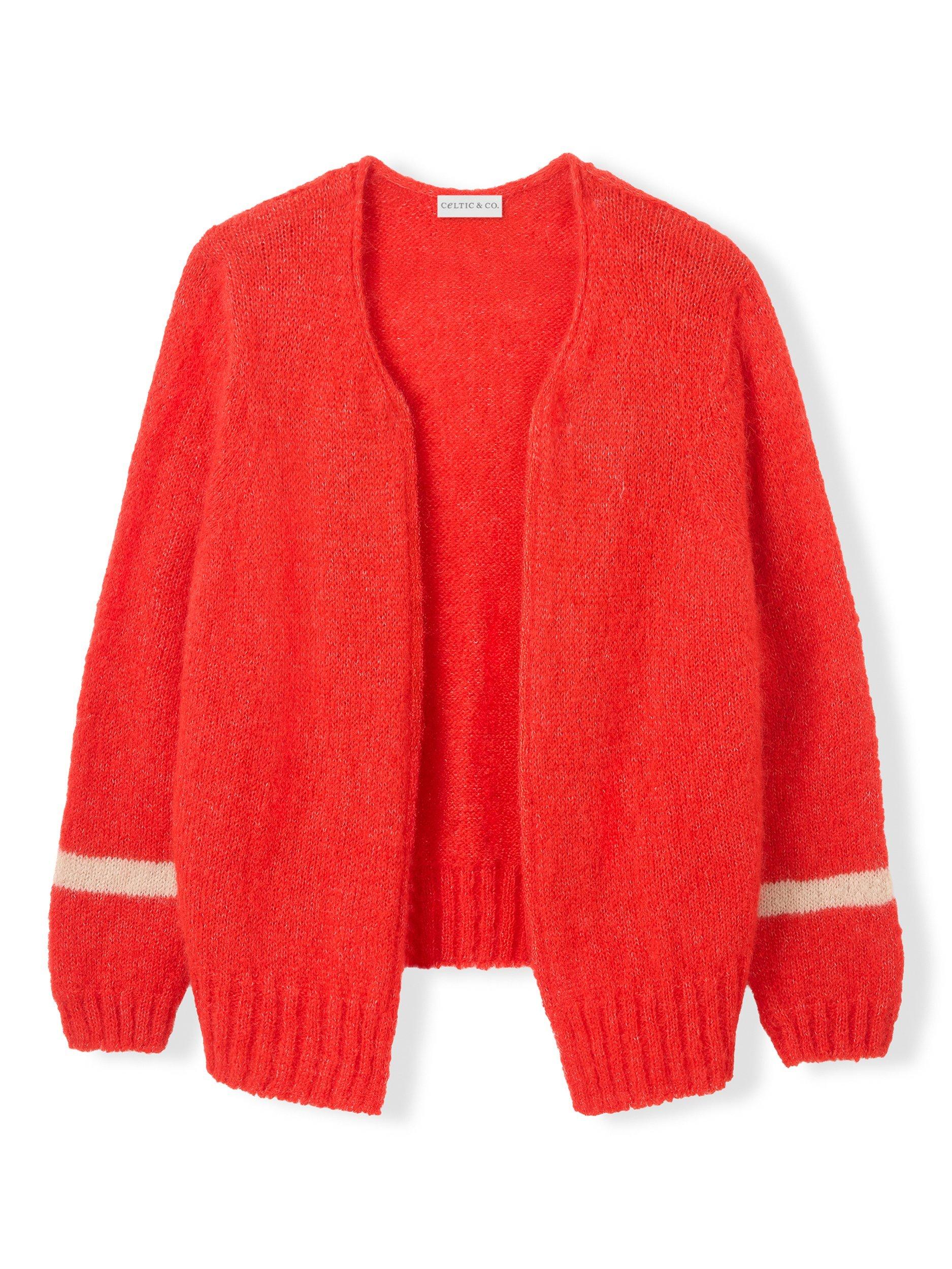 Celtic & Co.Open Neck Contrast Cuff Cardigan, Tomato