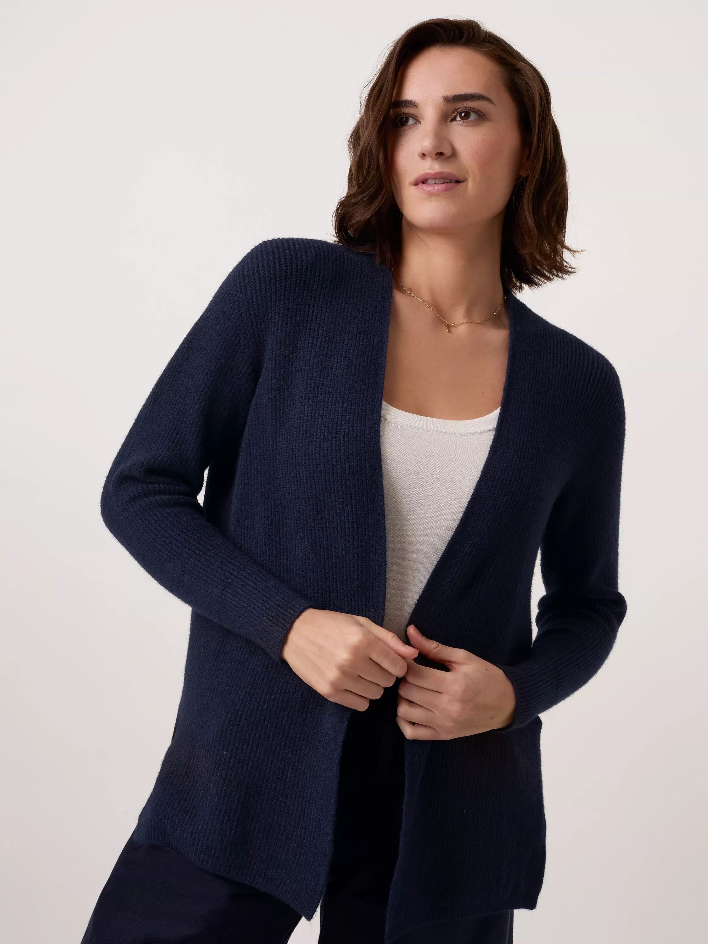 Wrap yourself in effortless comfort and understated elegance with the Longline Ribbed Cardigan. Designed for both style and versatility, this wardrobe essential features a flattering longline silhouette that drapes beautifully, elongating your frame while offering a relaxed, easy fit.
