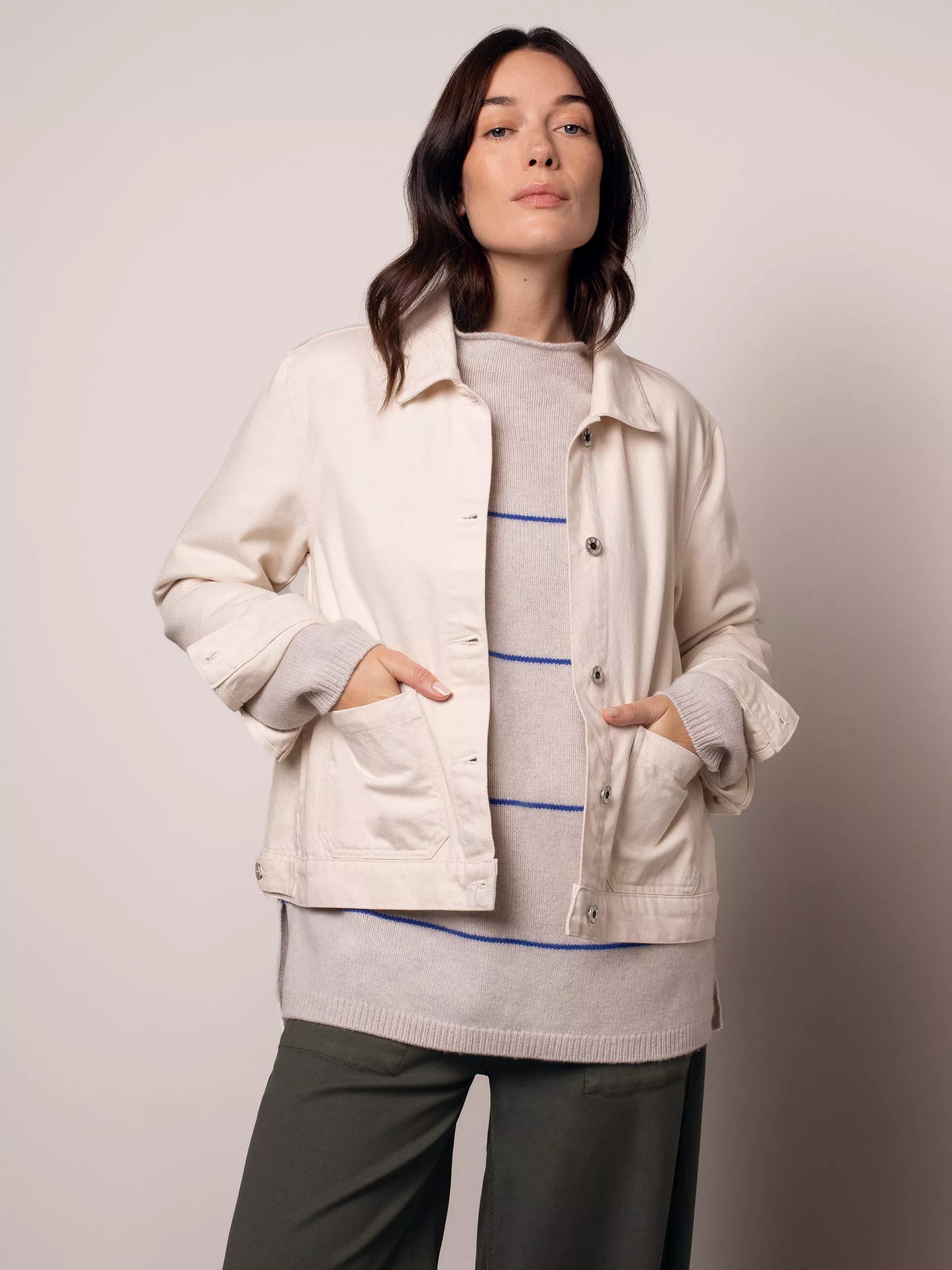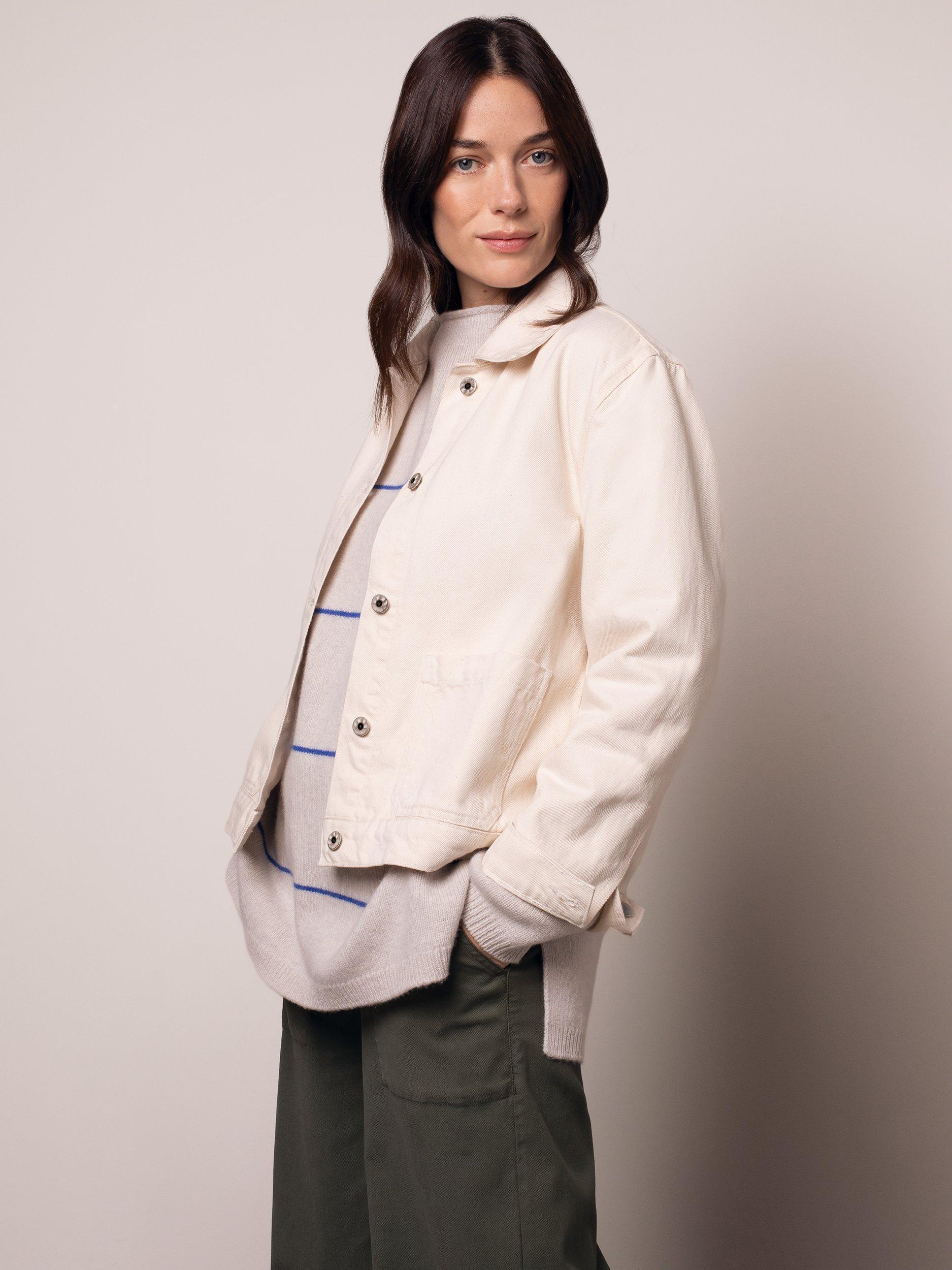 This boxy, collared denim jacket features practical patch pockets and a stud popper fastening for a clean, functional finish. Crafted from durable 12 oz denim, it offers a timeless appeal with a sturdy feel, making it a reliable choice for everyday wear.