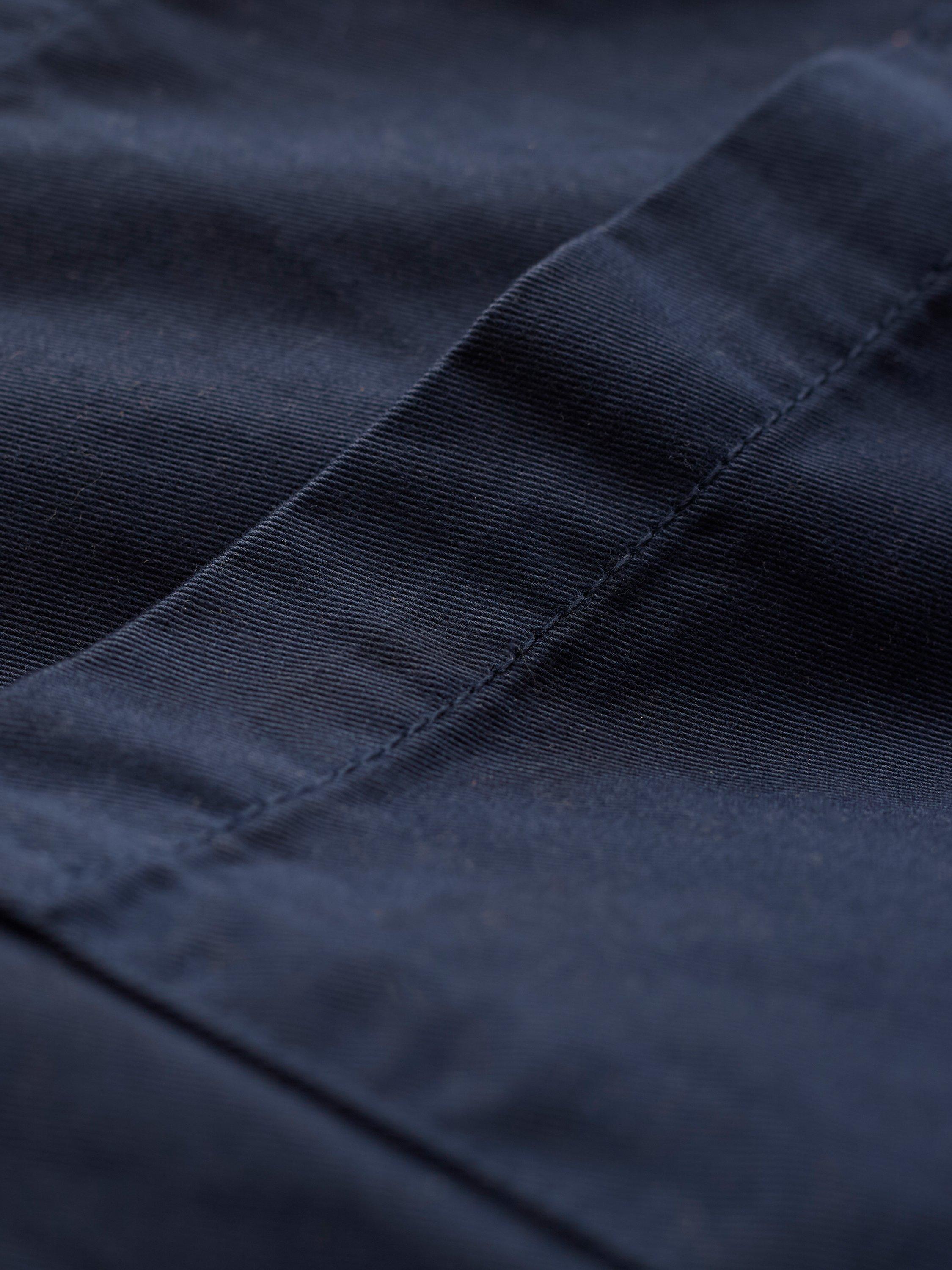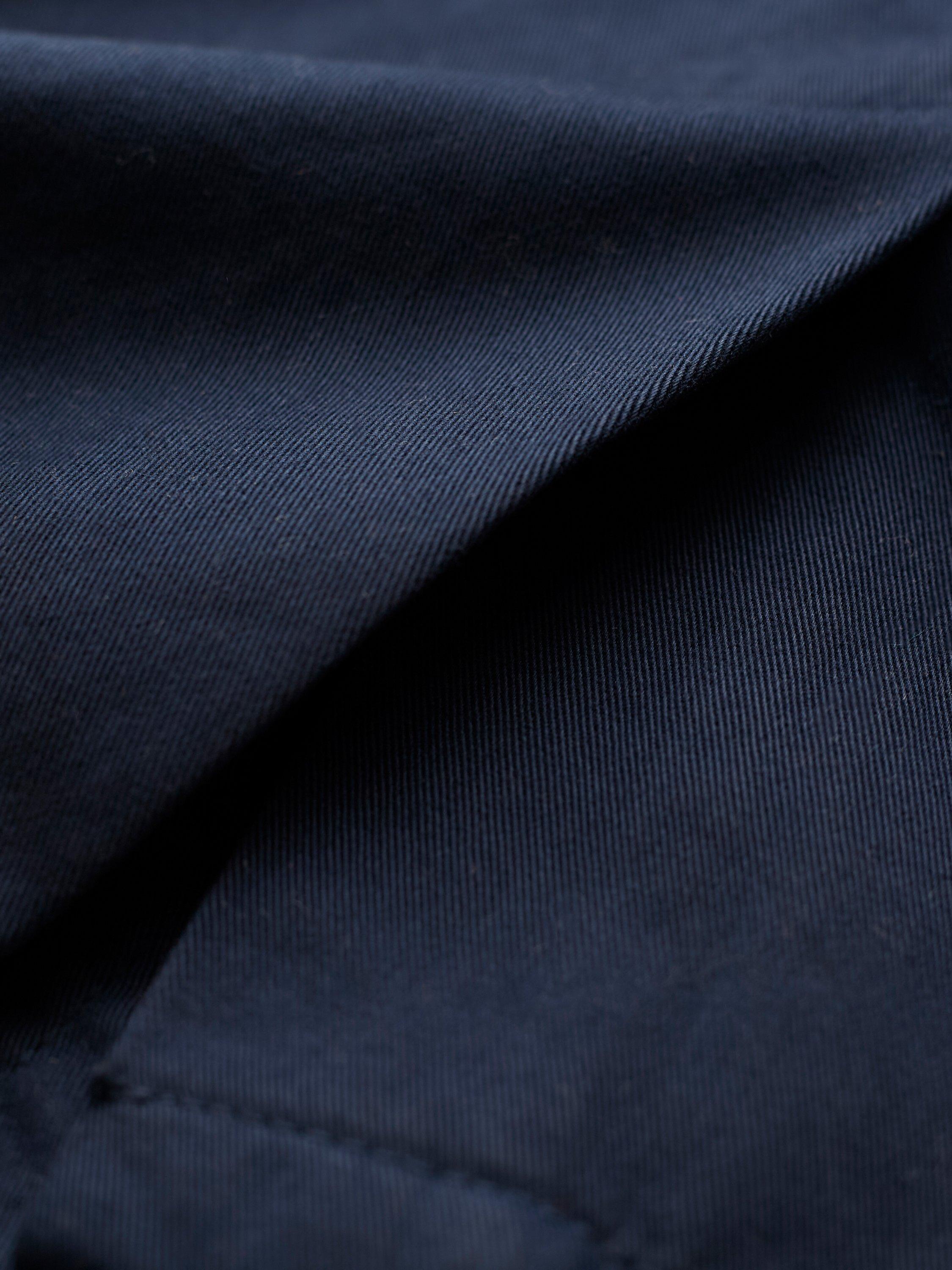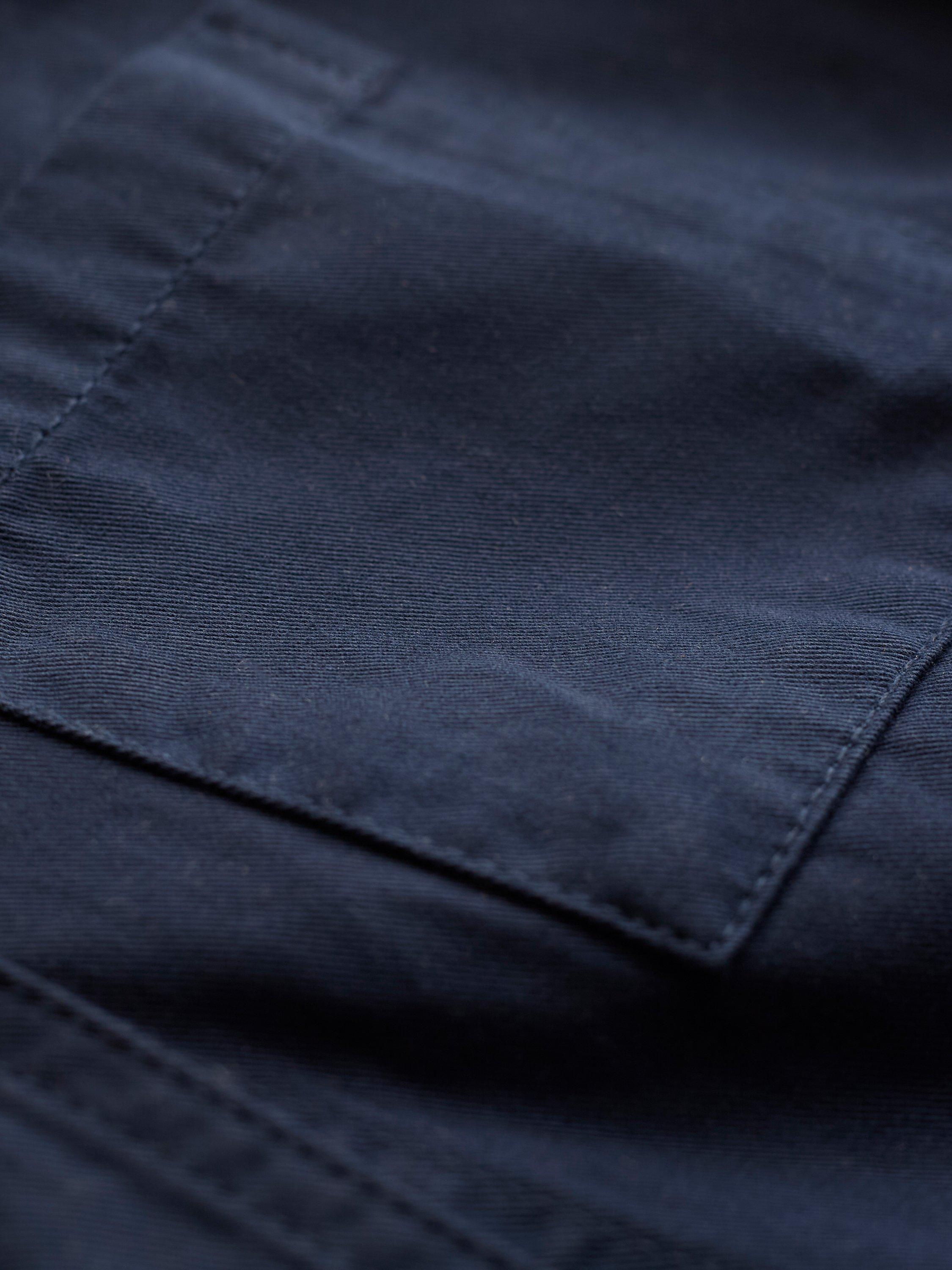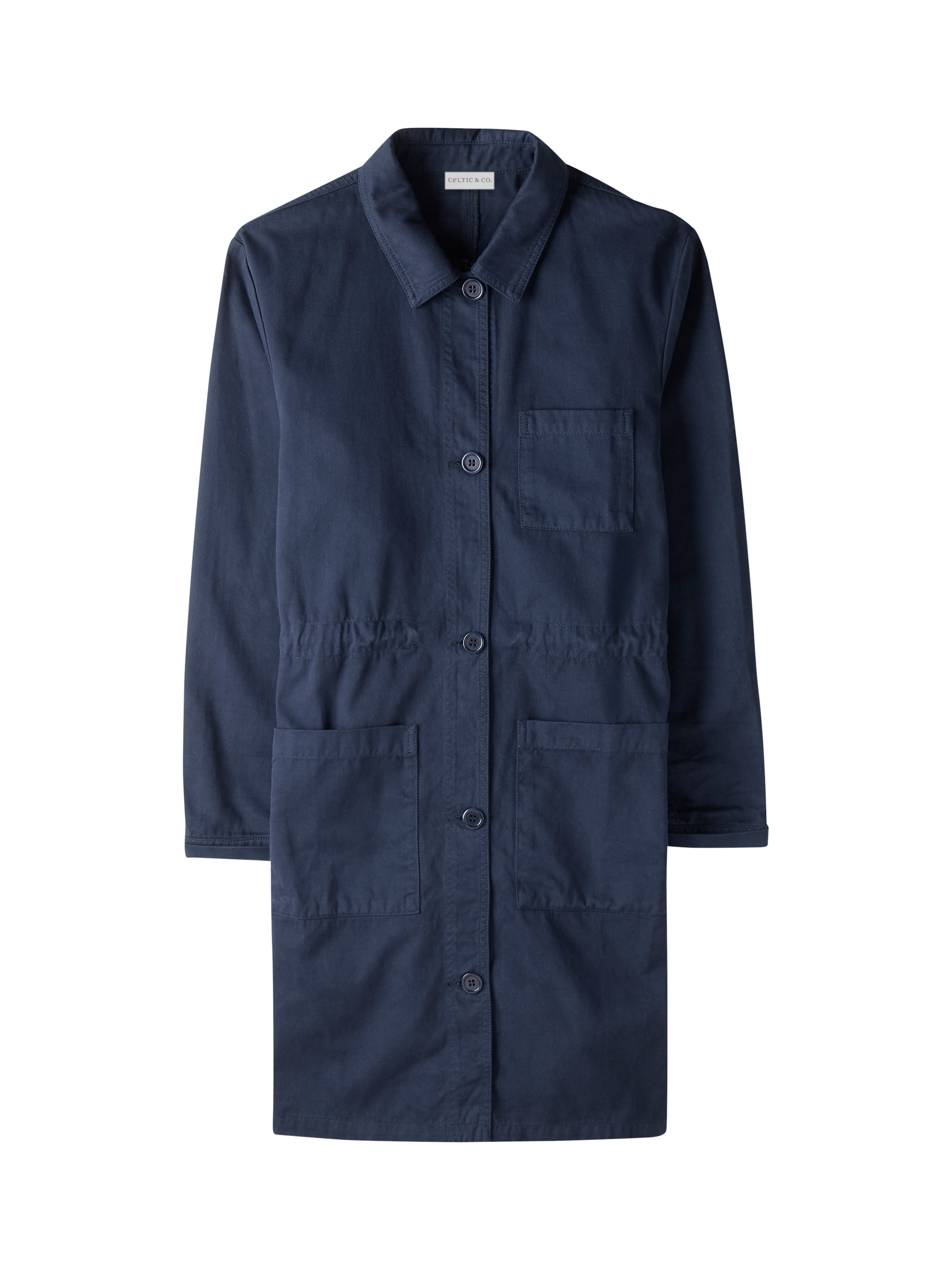 A versatile, 3/4 length, mid-weight jacket that is perfect for spring. Made from smooth cotton fabric, the surface is slightly peached, making it soft to the touch. Featuring a chest pocket, two hip pockets, collar detail and Corozo buttons, this coat has an internal tie at the waist that can be adjusted: cinch it in for a fitted look, or leave it loose for a boxy shape.