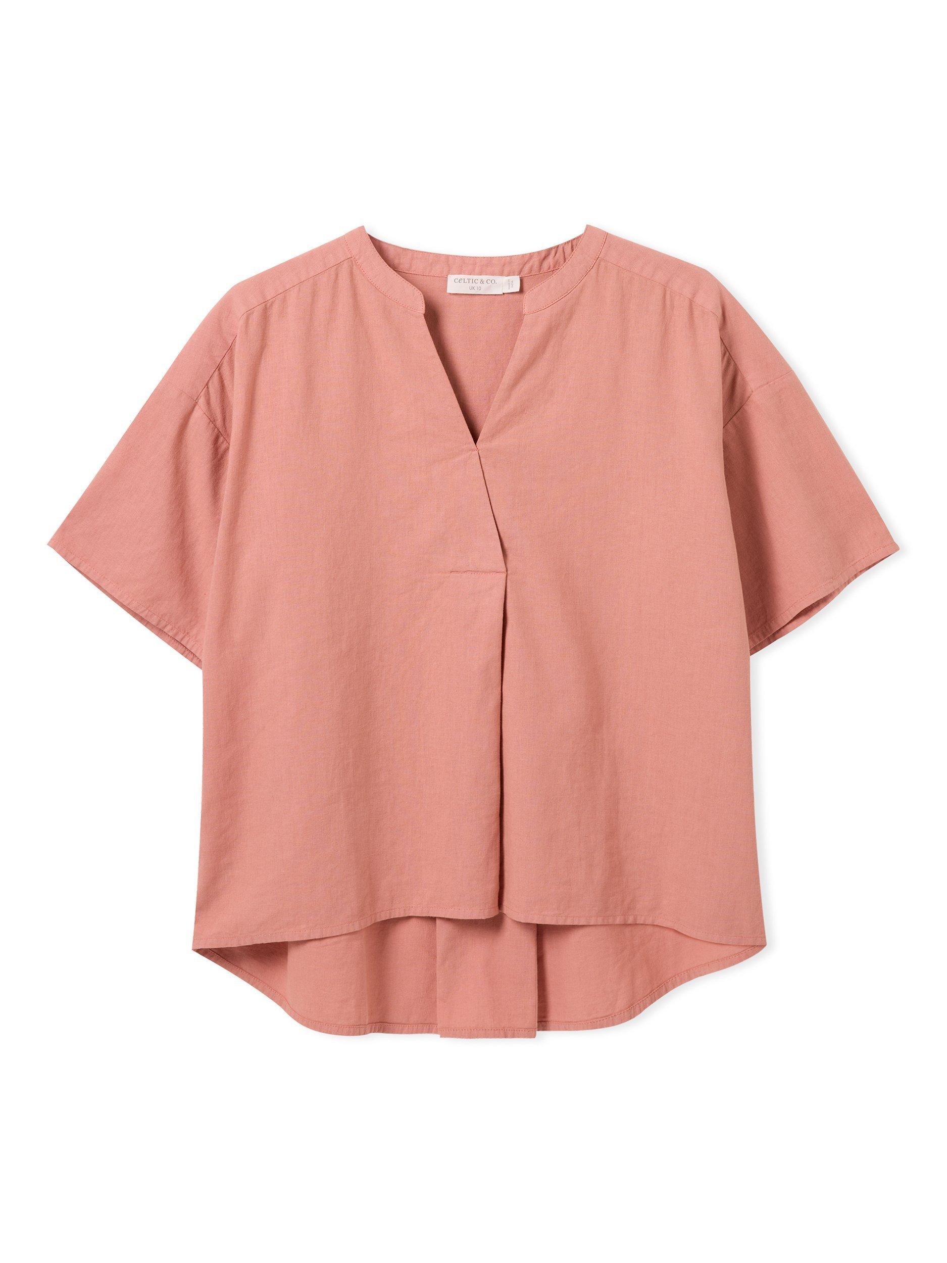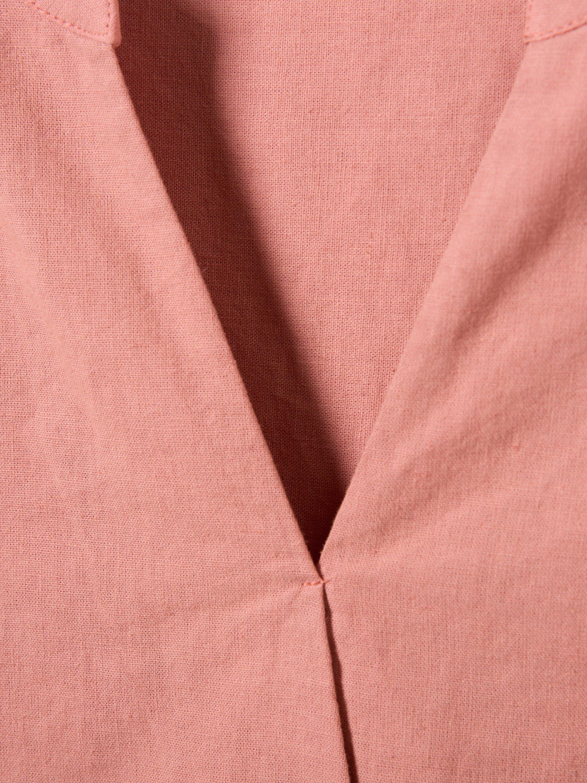 This relaxed-fit top features a softly dipped hem and a clean, fastening-free design with a flattering V-neckline and half sleeves.