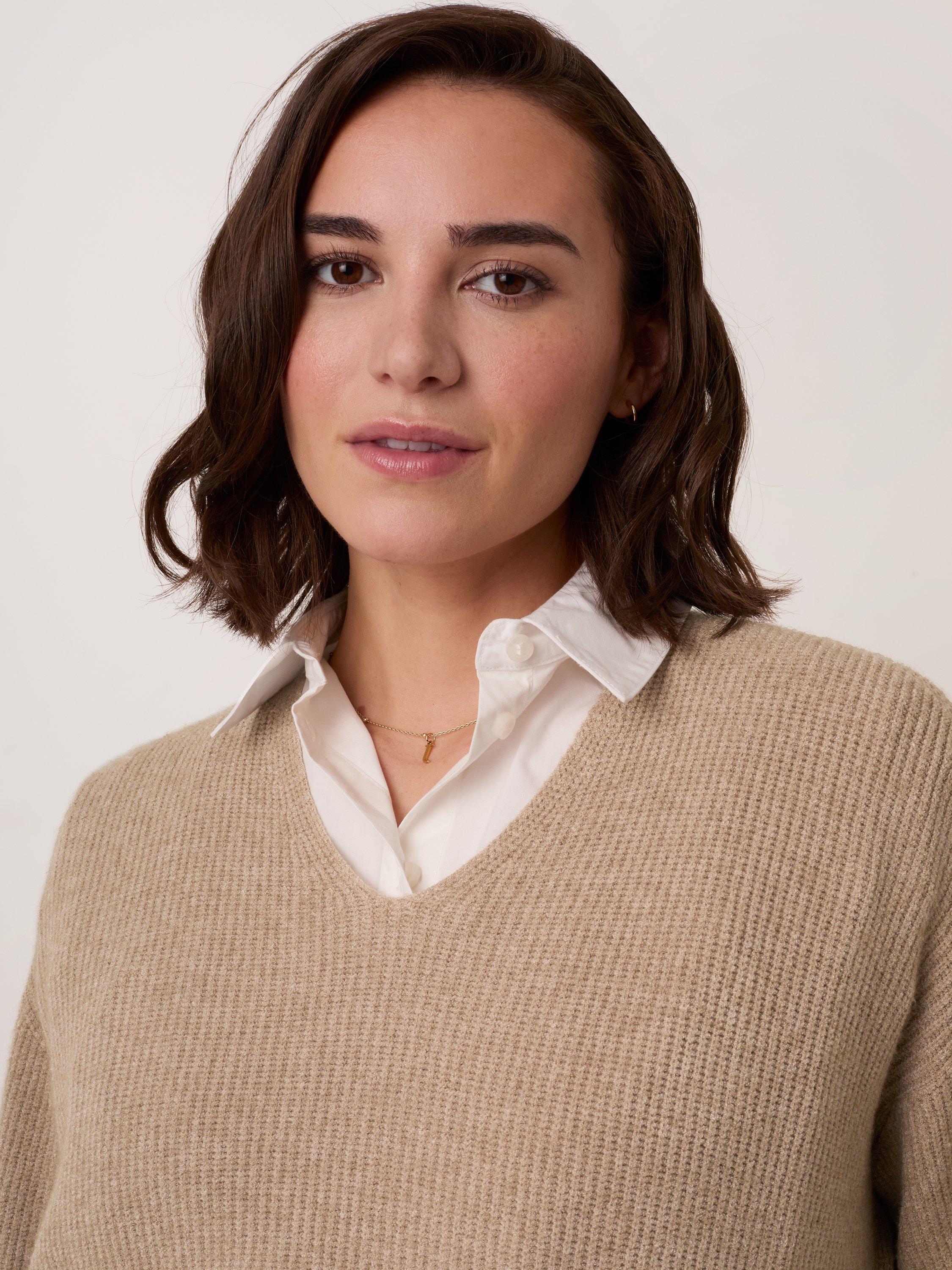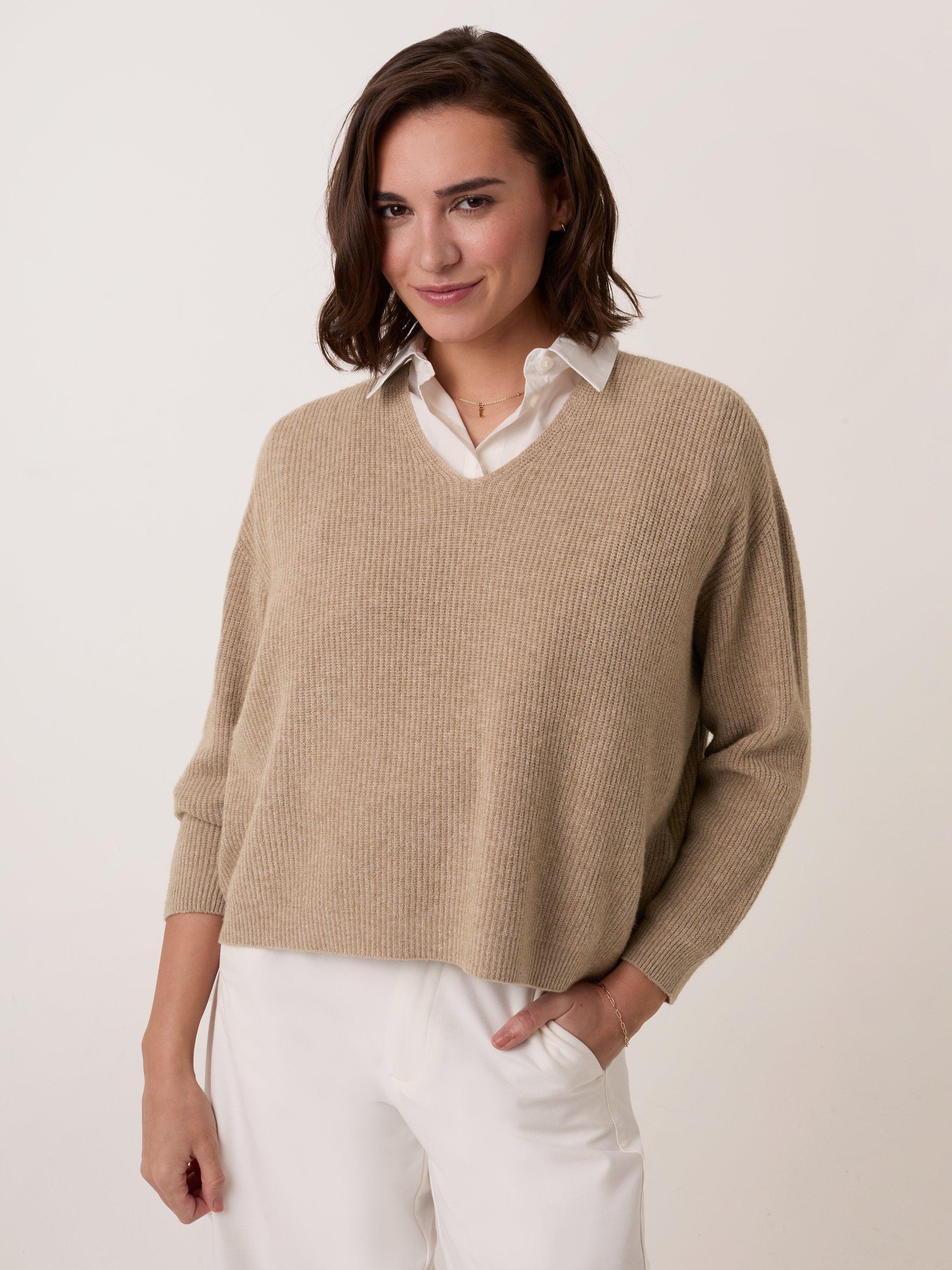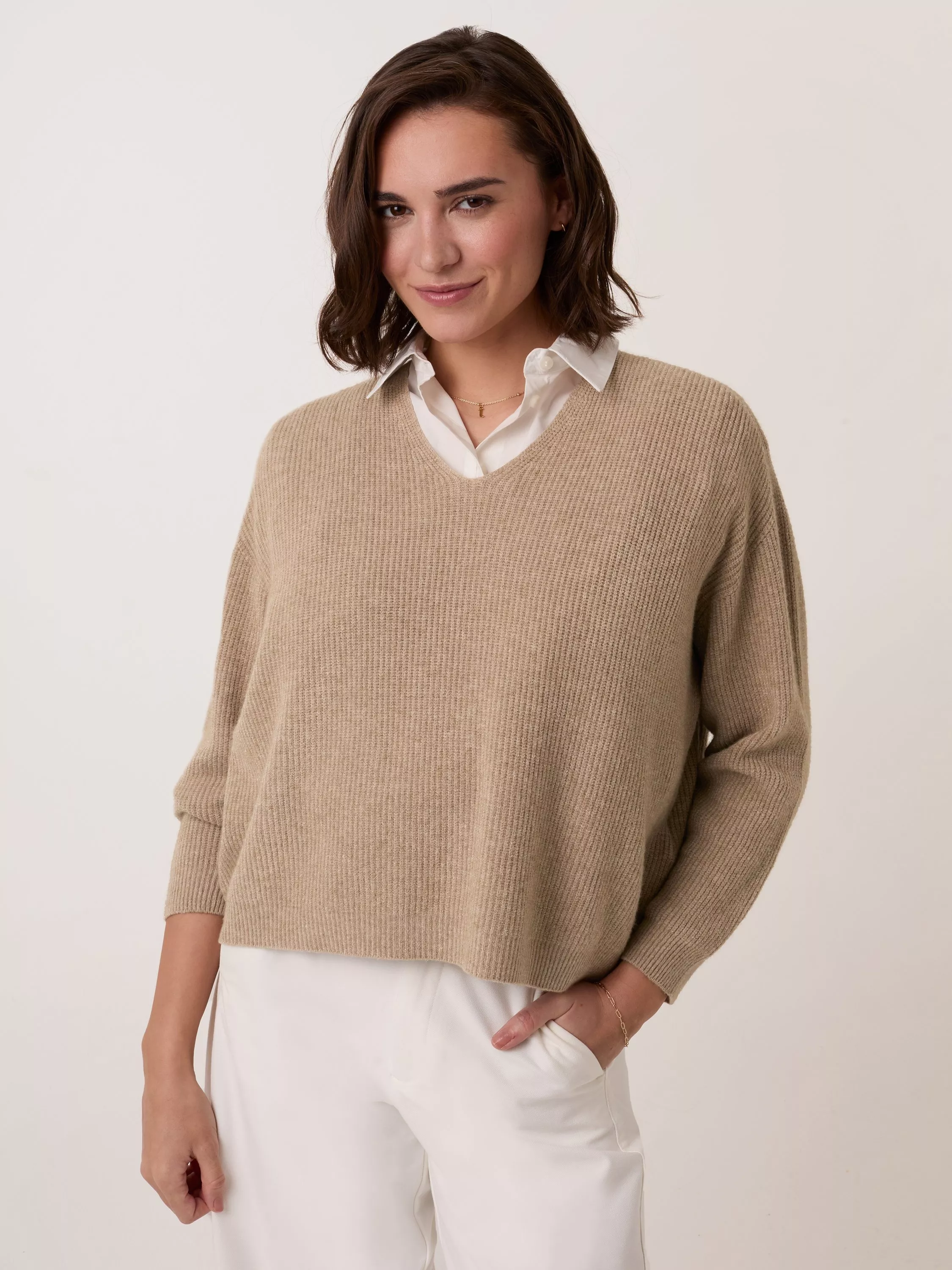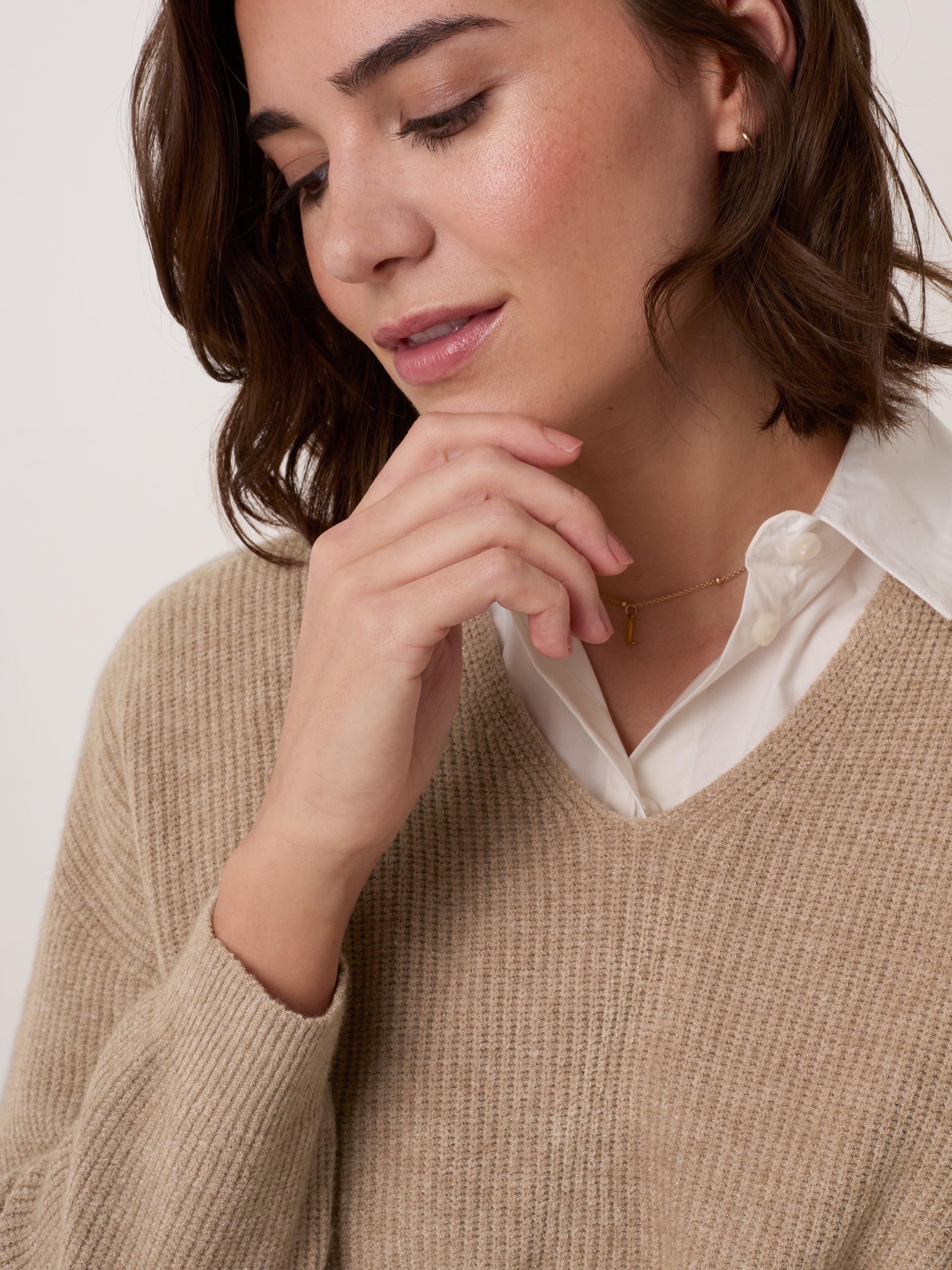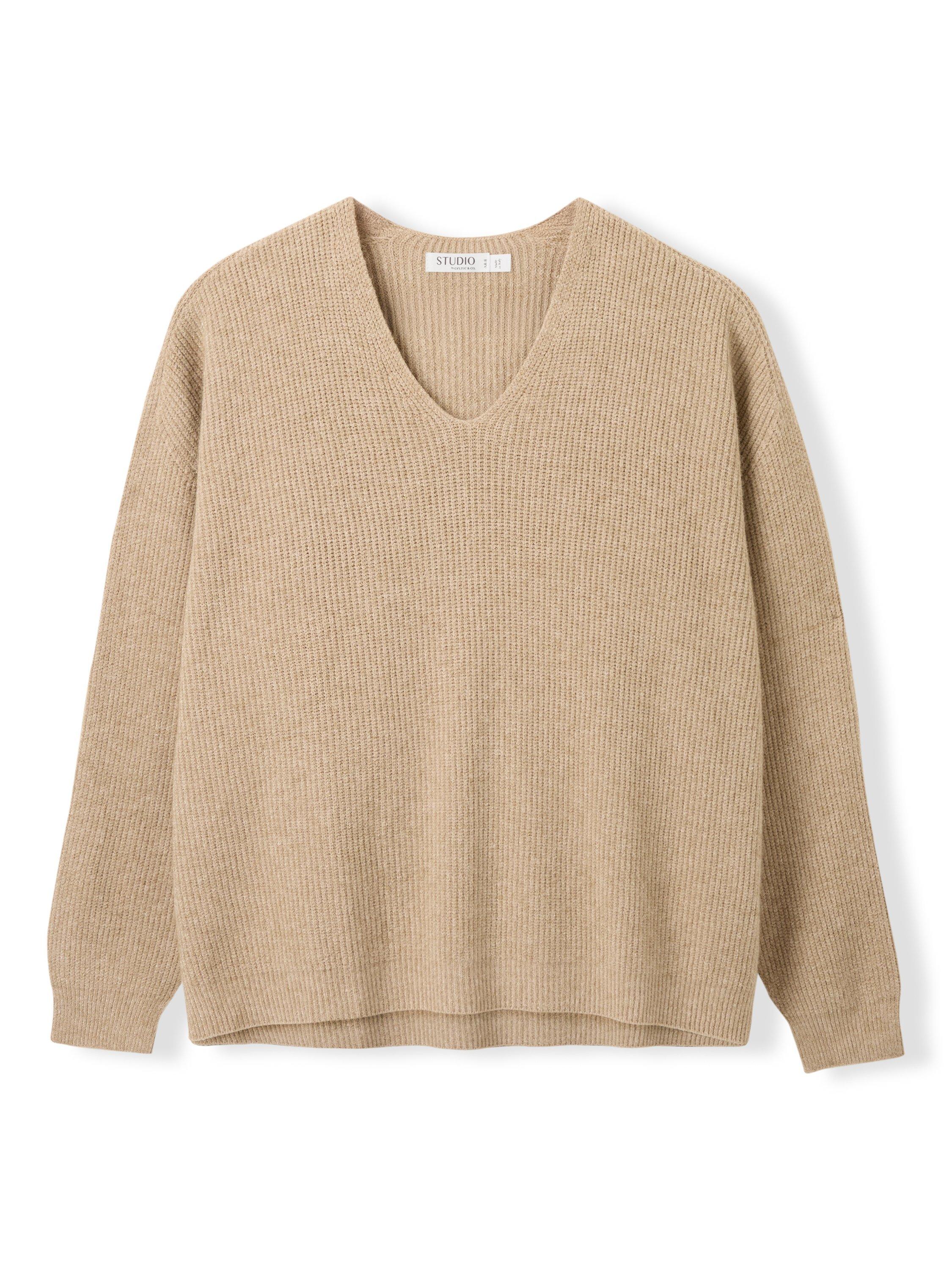 Celtic & Co.Ribbed V-Neck Jumper, Taupe