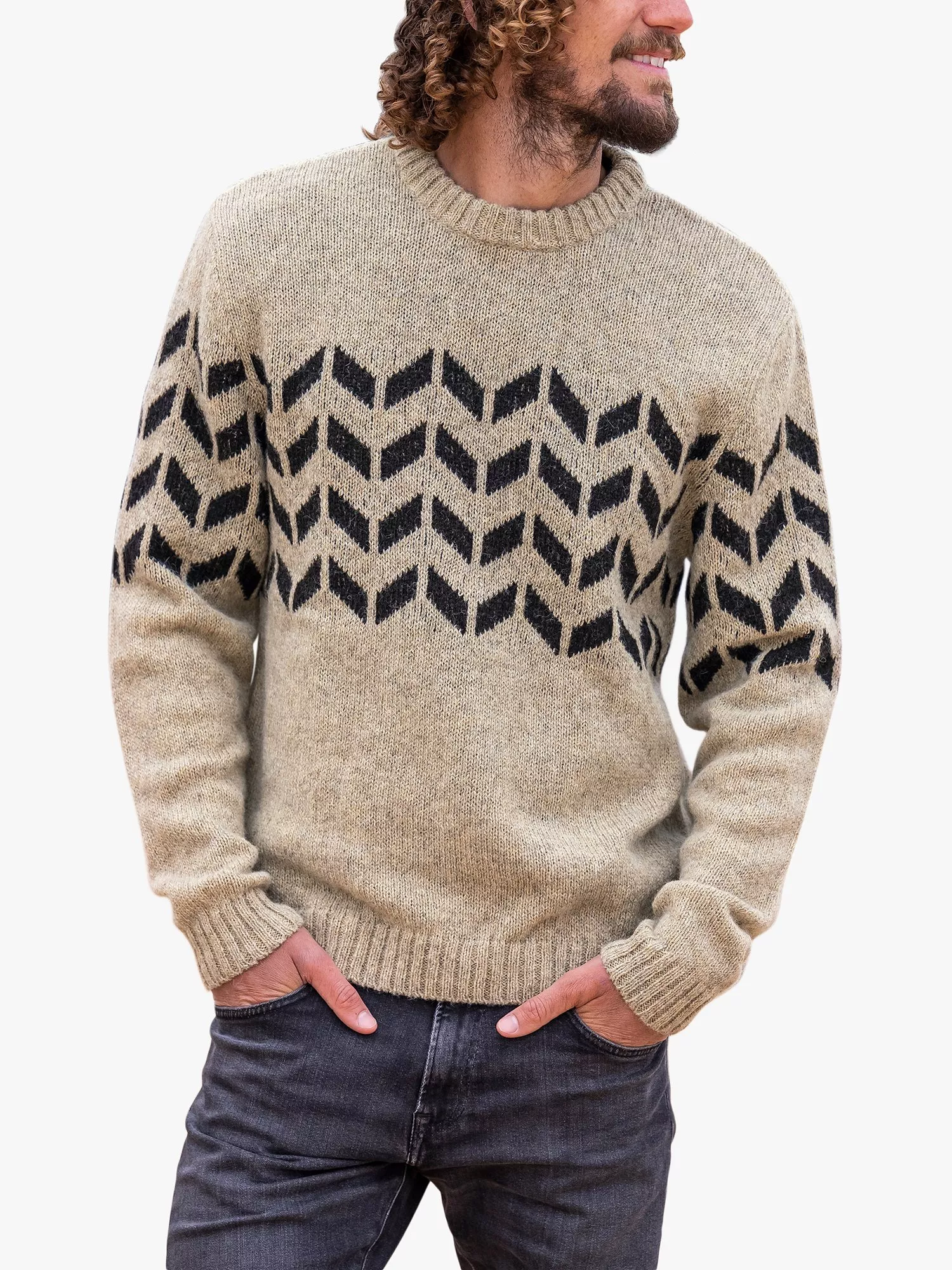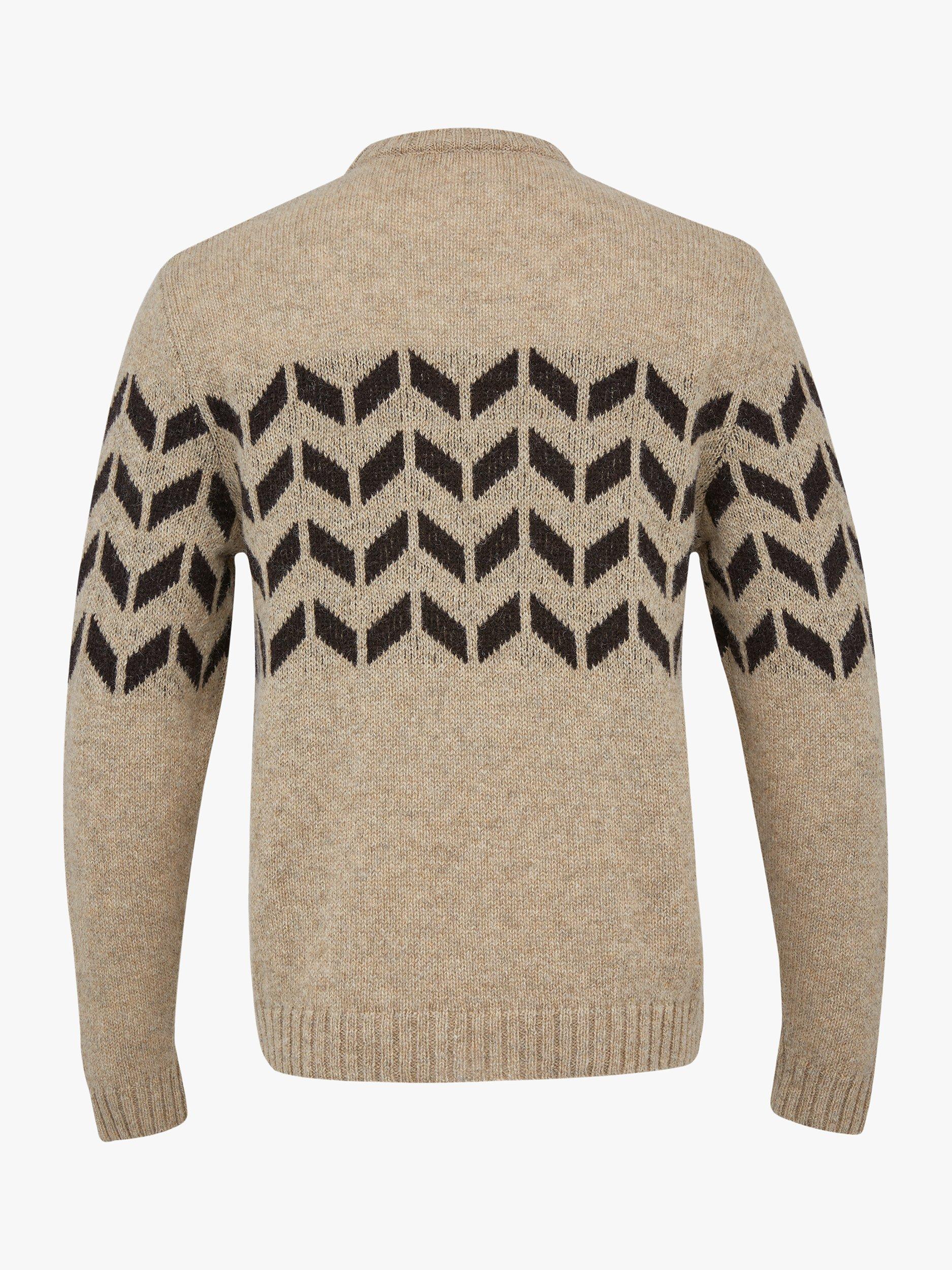 An indispensable wardrobe staple that's sure to stand the test of time, this crew neck jumper from Celtic & Co. uses a dynamic geometric motif and is finely knitted from wool for a super cosy texture.