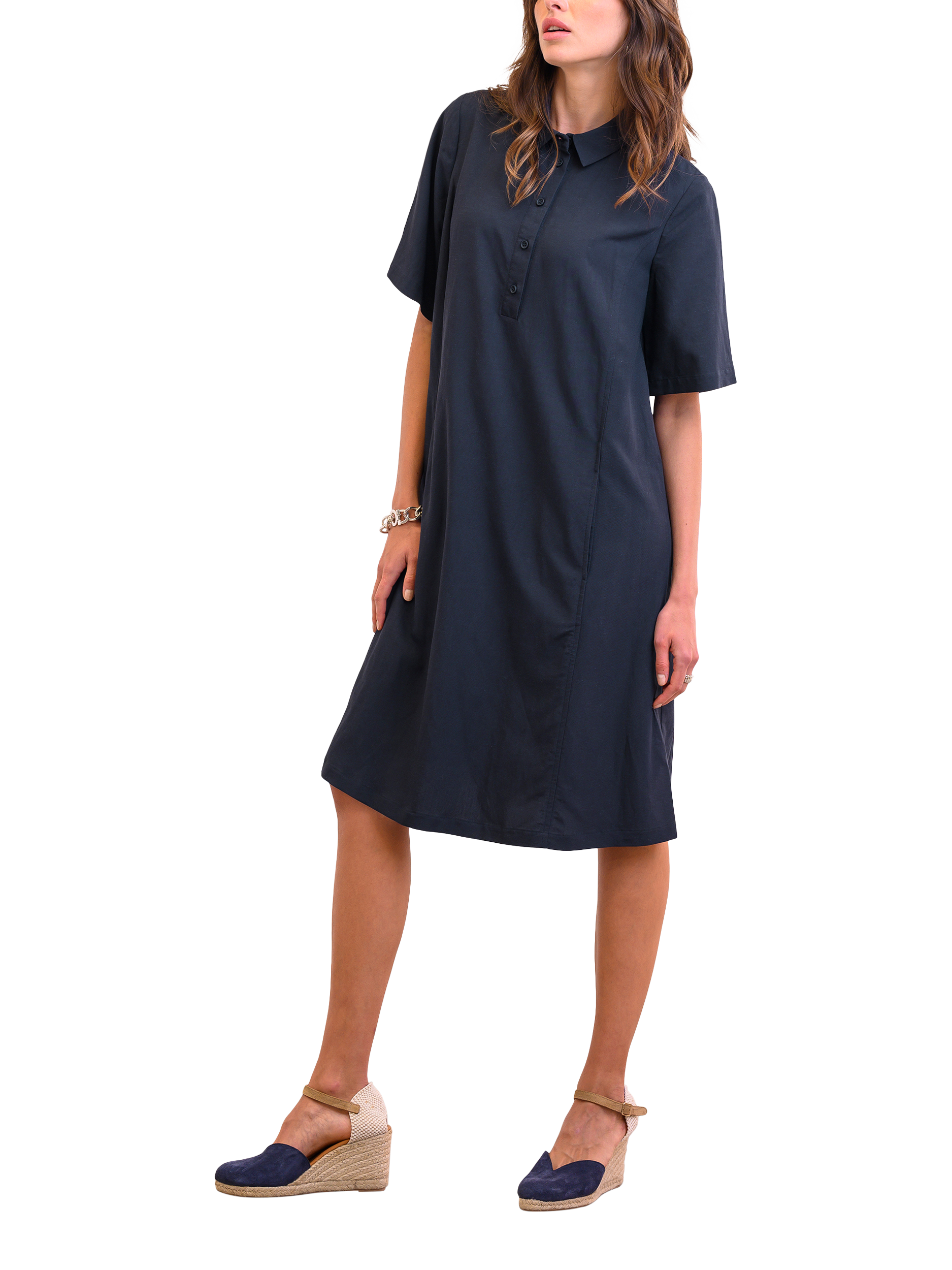 With a collared neckline and flattering swing shape, this dress is designed for effortless style. The half-length sleeves provide added comfort, while the blend of viscose and linen ensures a soft feel, perfect for both casual wear or occasions.
