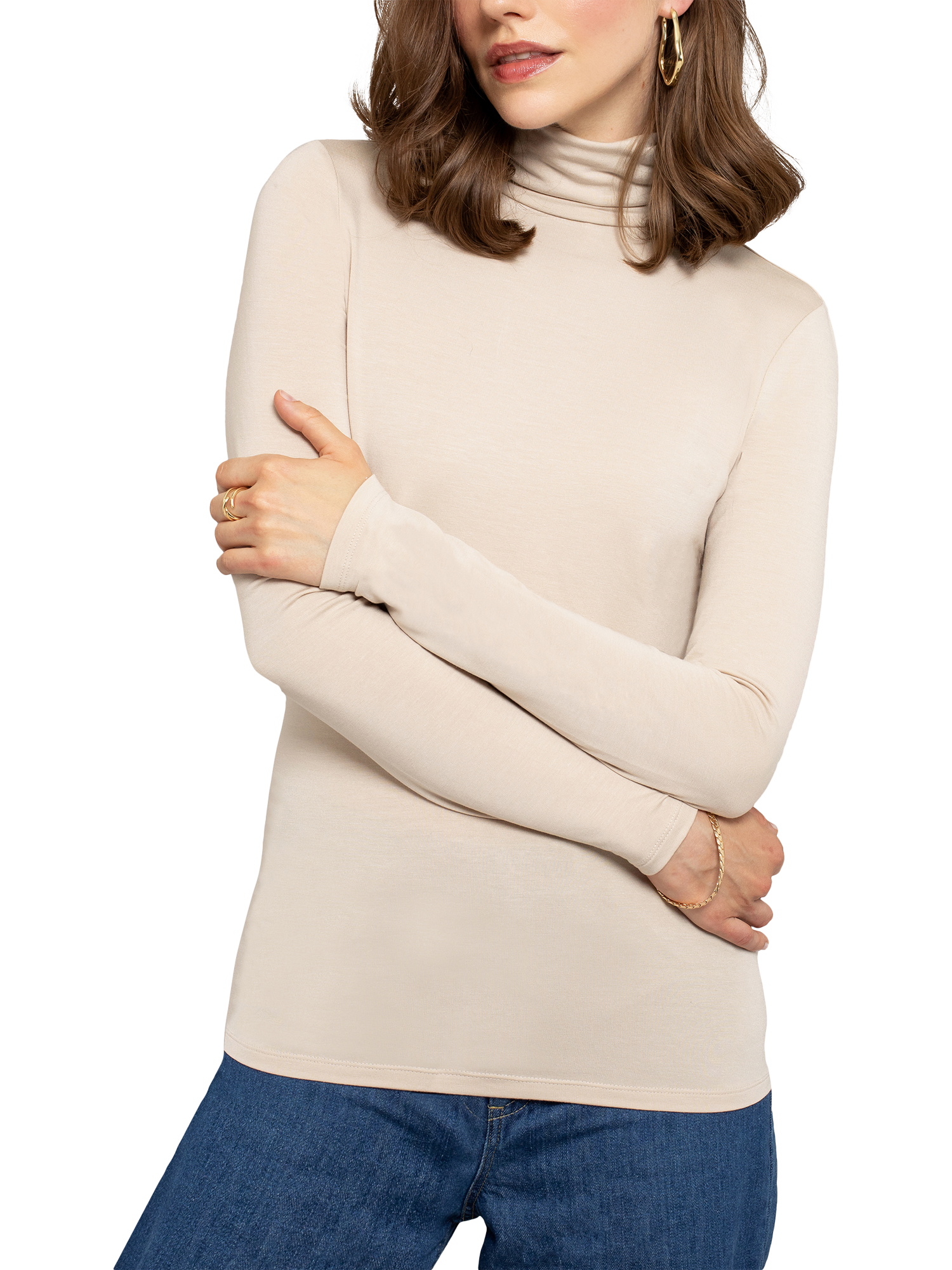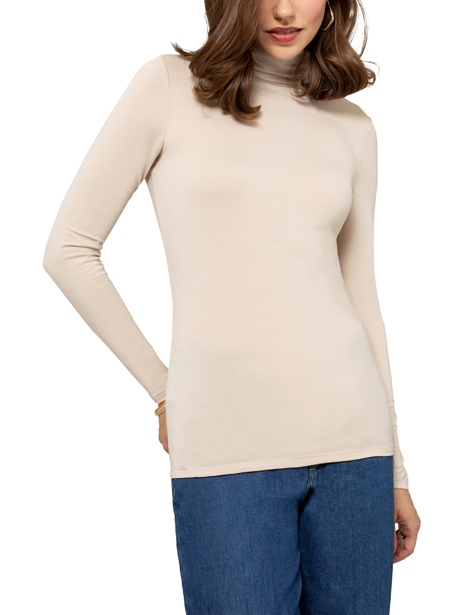 A best-selling style, beloved by fashion editors worldwide for its timeless appeal and unparalleled quality. Designed for a silky-smooth finish that flatters and contours your natural shape with every wear, with a neat fitting roll neck and long length sleeves and body. Lightweight modal blend fabric ensures minimal bulk when tucked and layered.