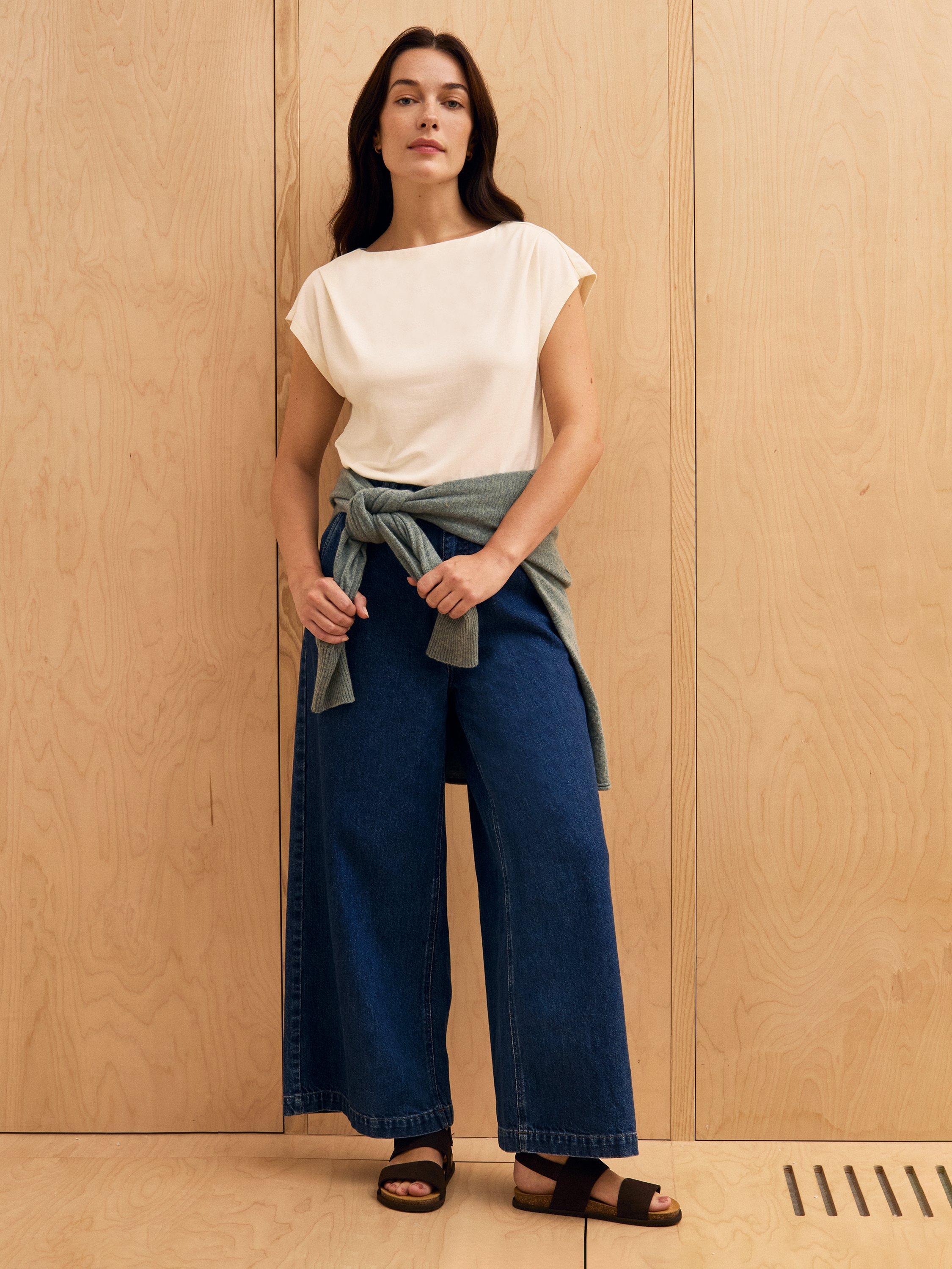 An everyday T-shirt by Celtic & Co., offered in a cotton blend for a soft feel. With a slash neck and cap sleeves, it's casual, comfortable, and effortlessly chic.
