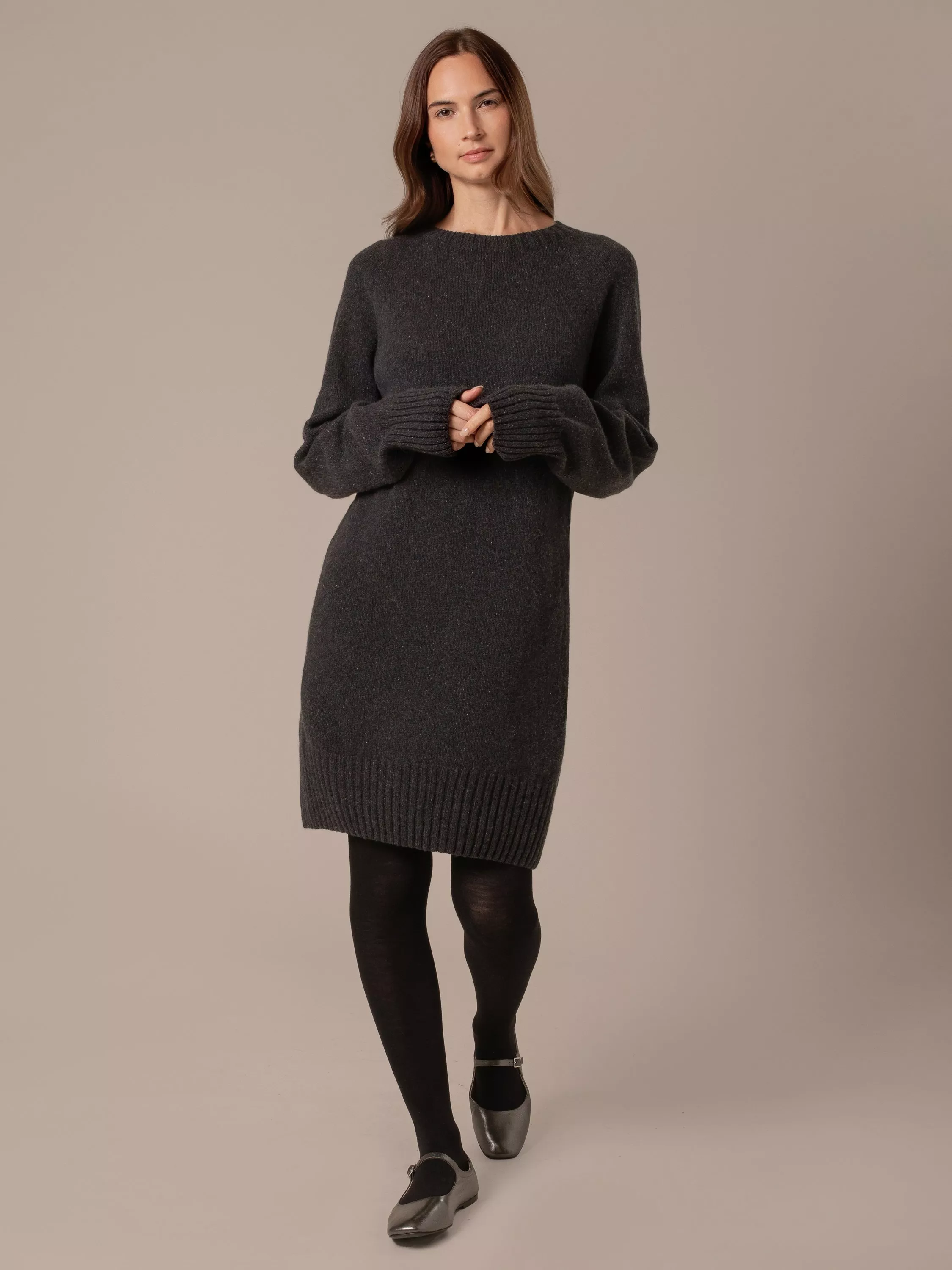 Picture it: you, a fireplace, this jumper dress. This long-sleeved cashmere blend midi dress by Celtic & Co. is framed with a round neck and a goes-with-anything plain design.