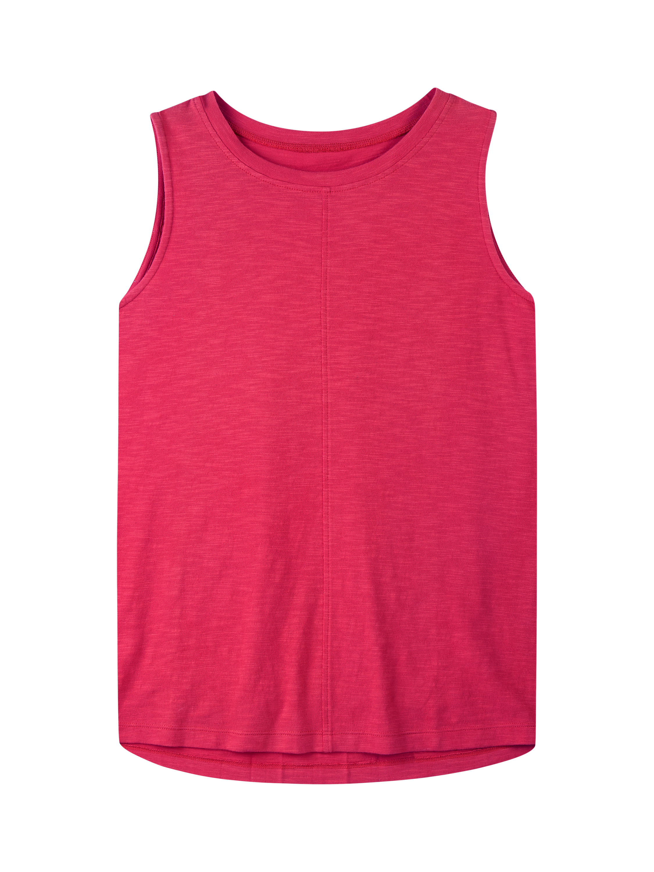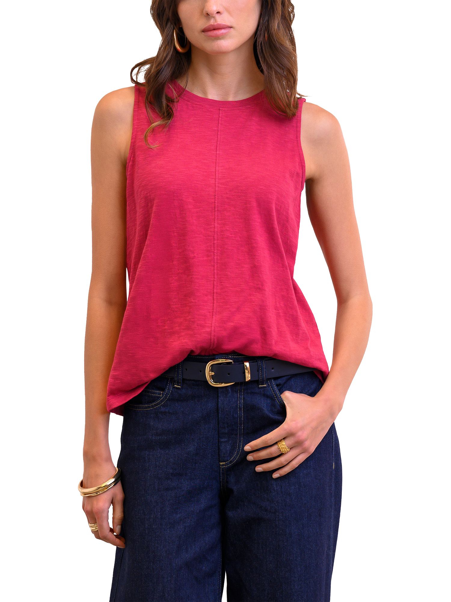 This sleeveless tank features a crew neckline and a flattering swing shape, making it a versatile piece for warm days. Crafted from cotton, it offers comfort and breathability, perfect for casual outings or layered looks.