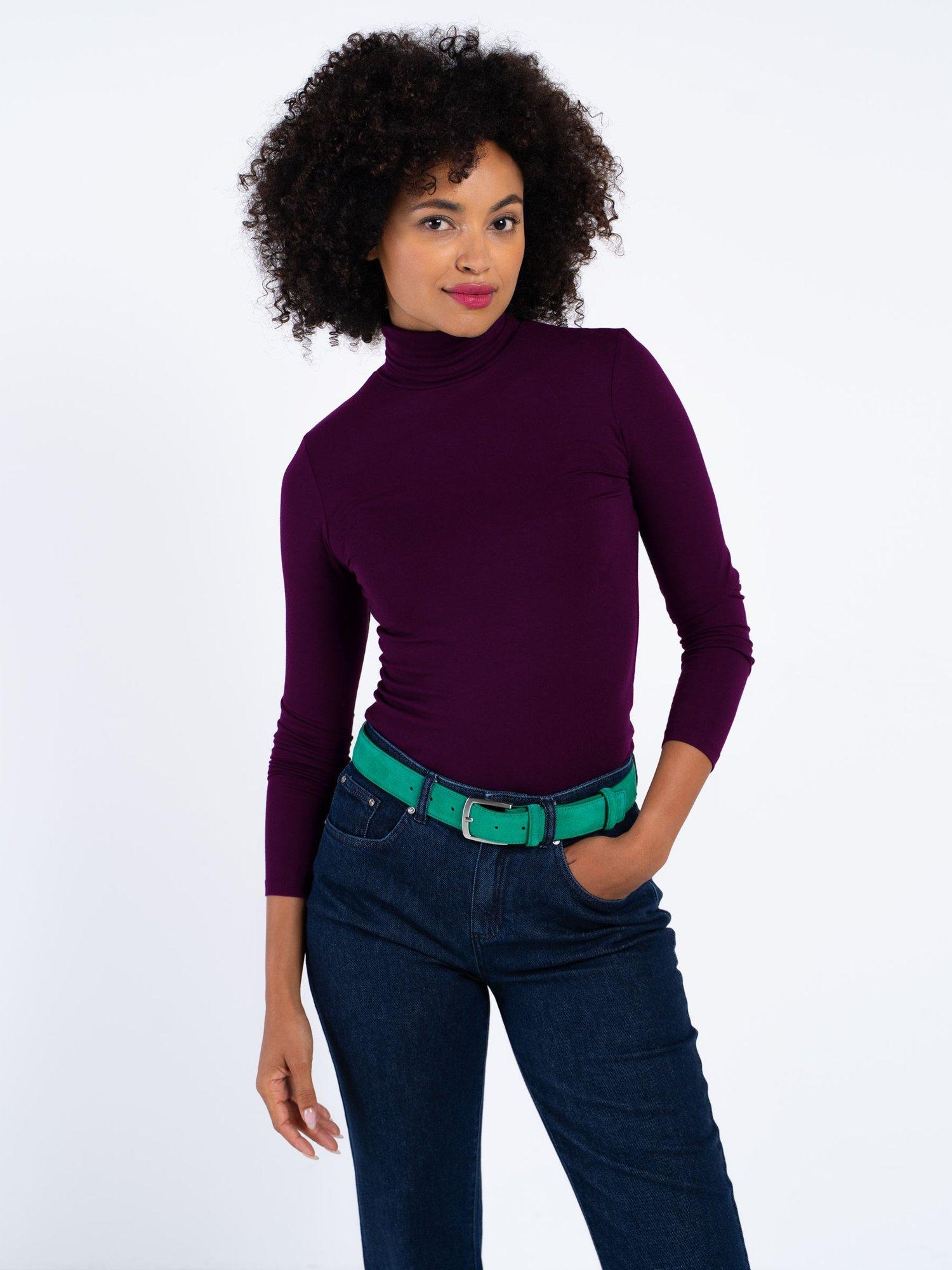 A long length top with a generous scoop neckline and long sleeves, this fitted style is designed for layering under jackets and jumpers for a neat, put-together look.