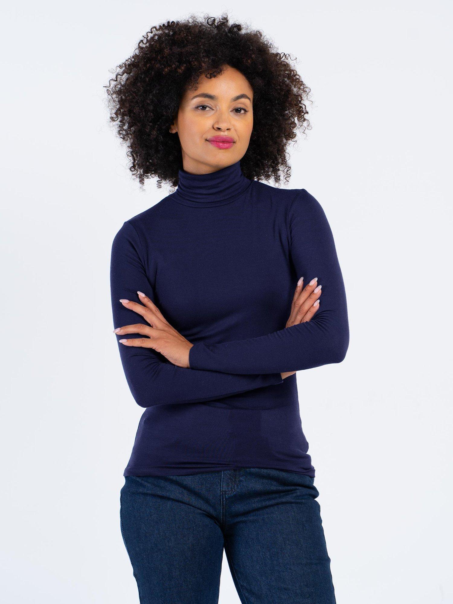 A long length top with a generous scoop neckline and long sleeves, this fitted style is designed for layering under jackets and jumpers for a neat, put-together look.