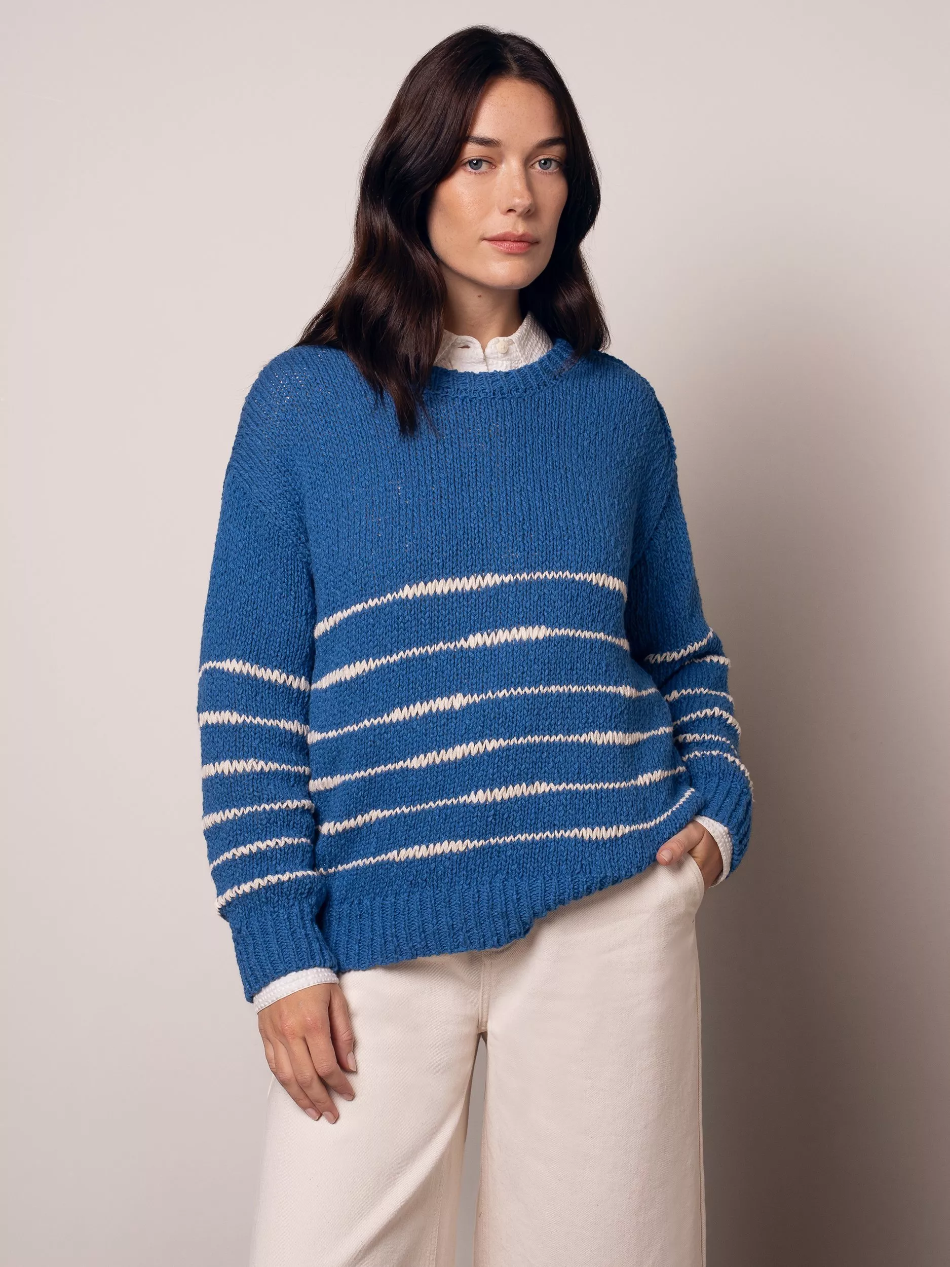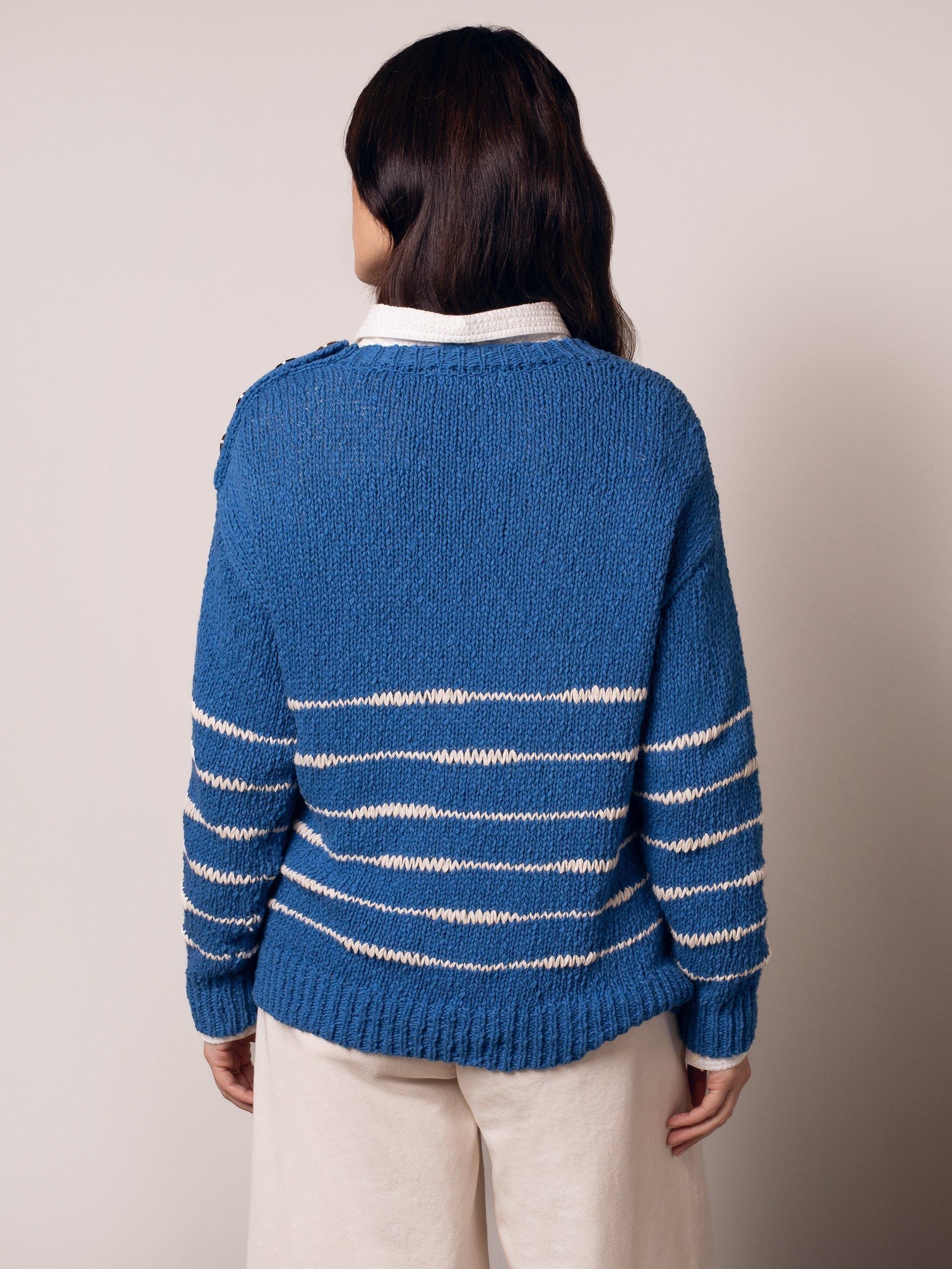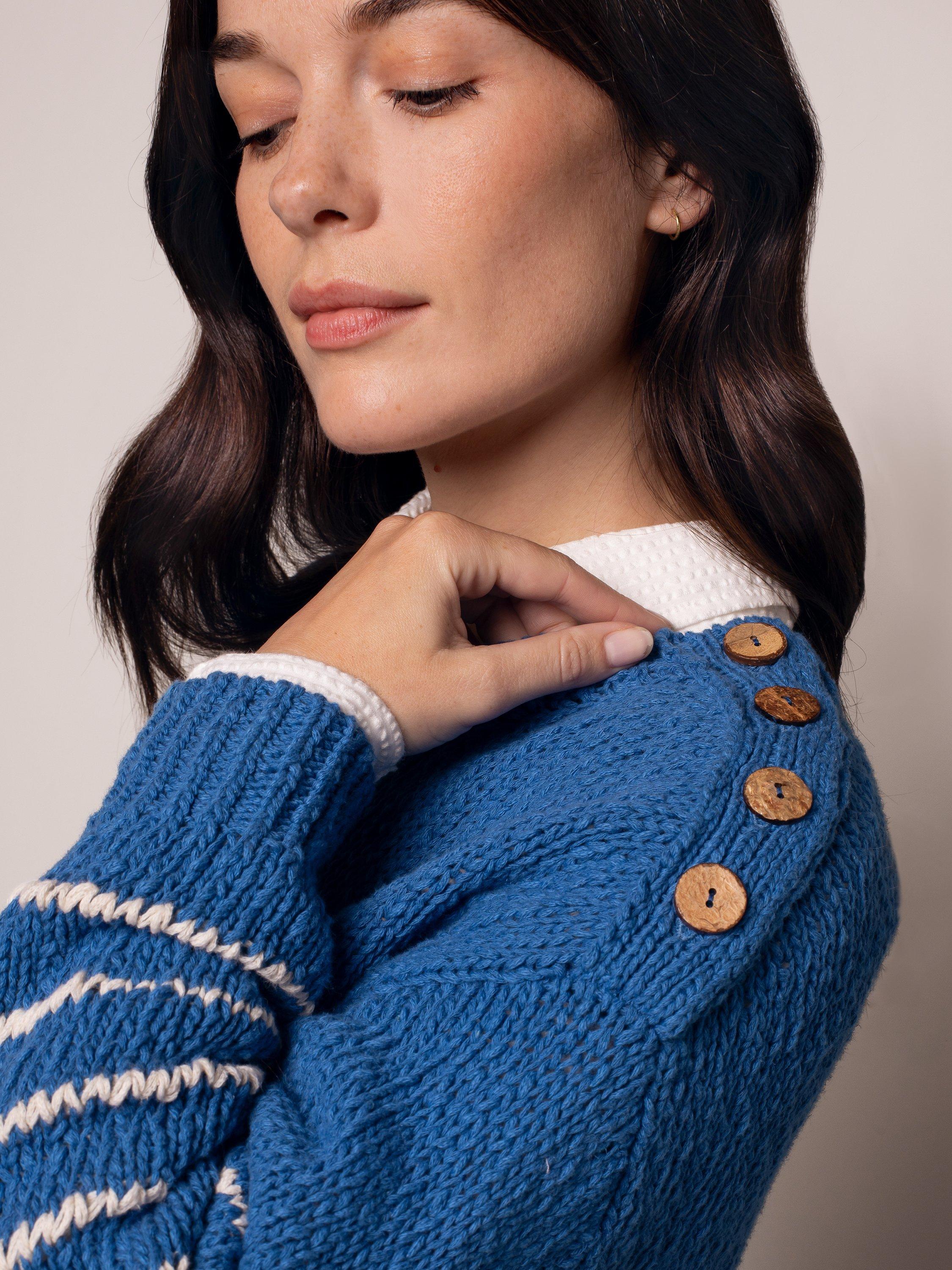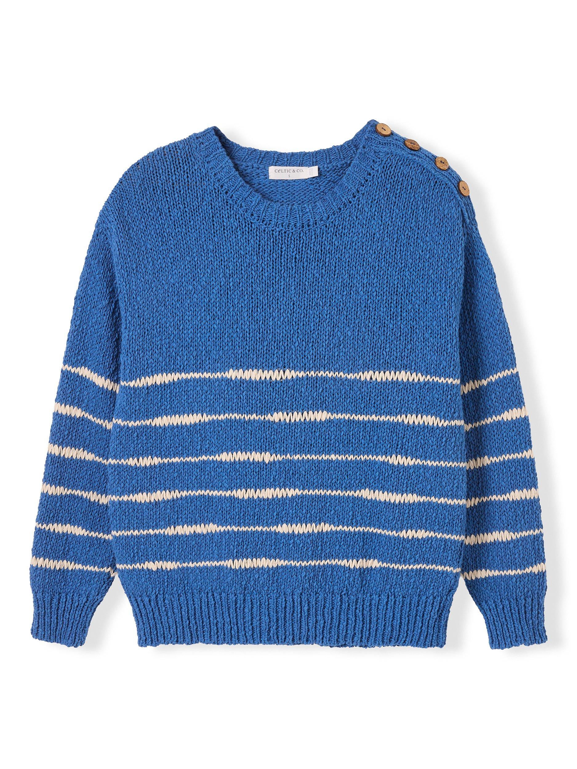 This Celtic & Co. take on the classic Breton jumper will fast be the one you reach for. Crafted in slub yarns with a chunky, uneven structure created through random drop stitches, it's trimmed with functioning buttons at the left shoulder for a little extra detail.