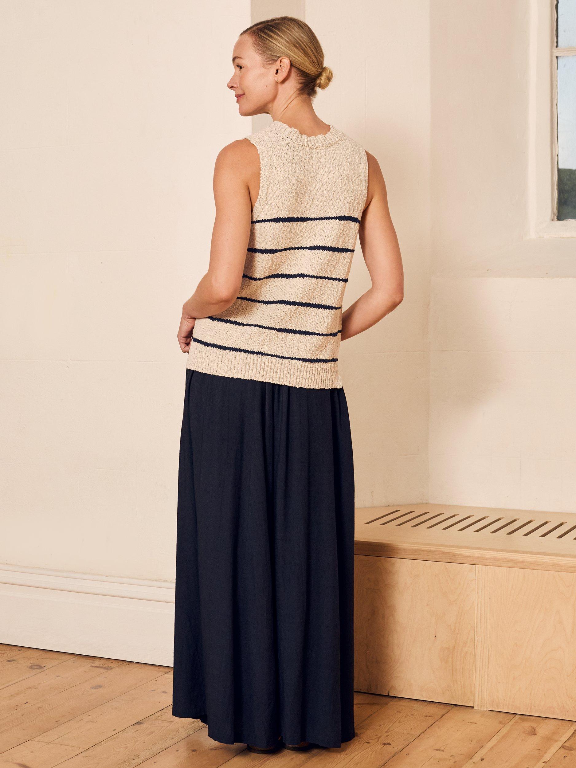 A favourite Summer vest style you'll reach for everytime. Features a cotton linen blend drop stitch yarn, ribbed hem and side split detail to elevate your vest game.