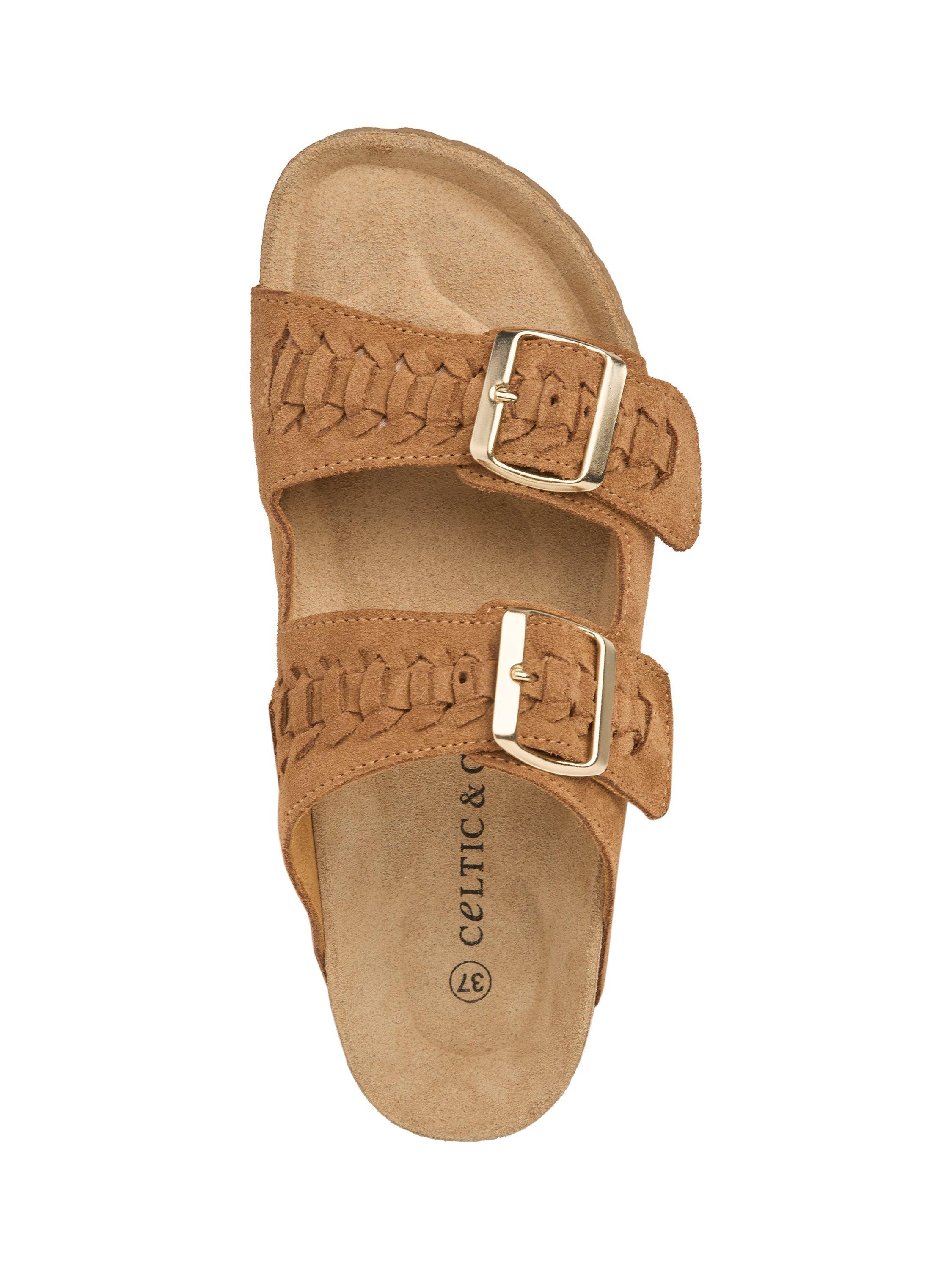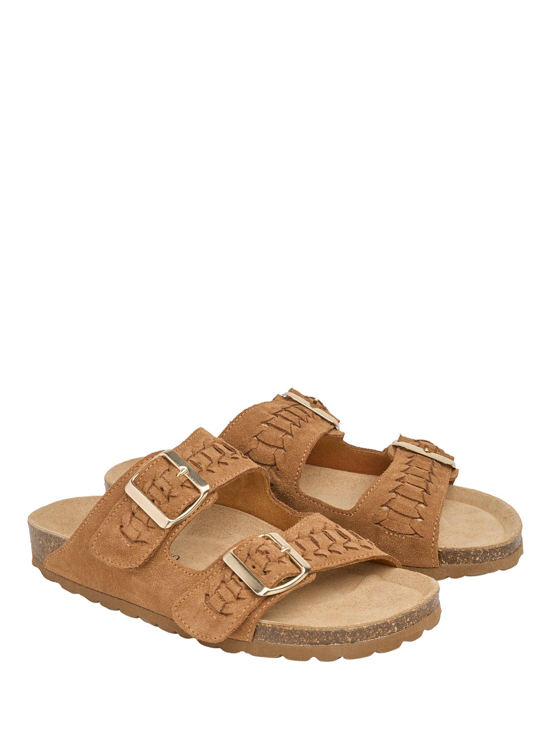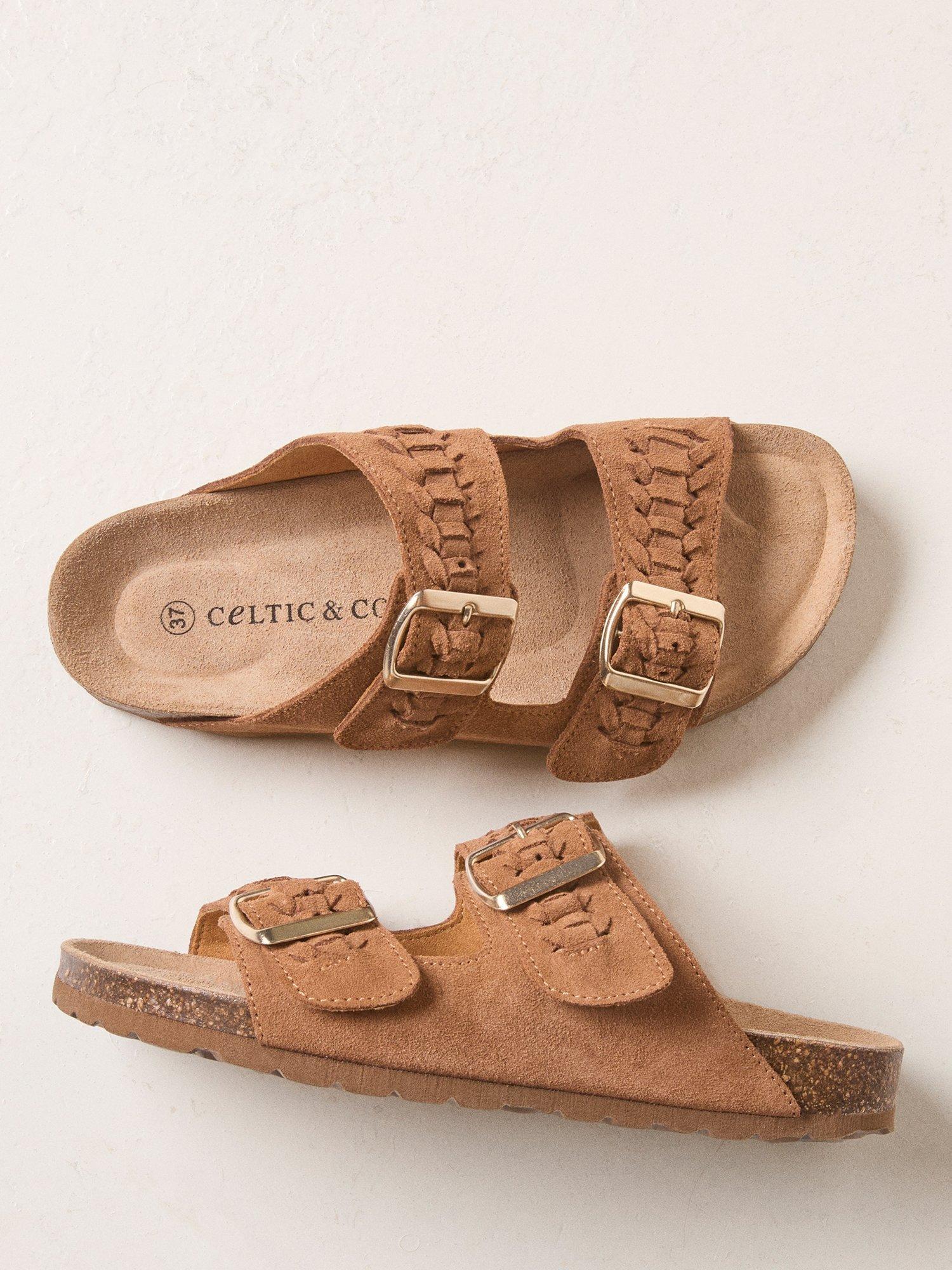 These plaited sandals crafted in soft cow suede features the brand's signature moulded cork sole, blending style and comfort.