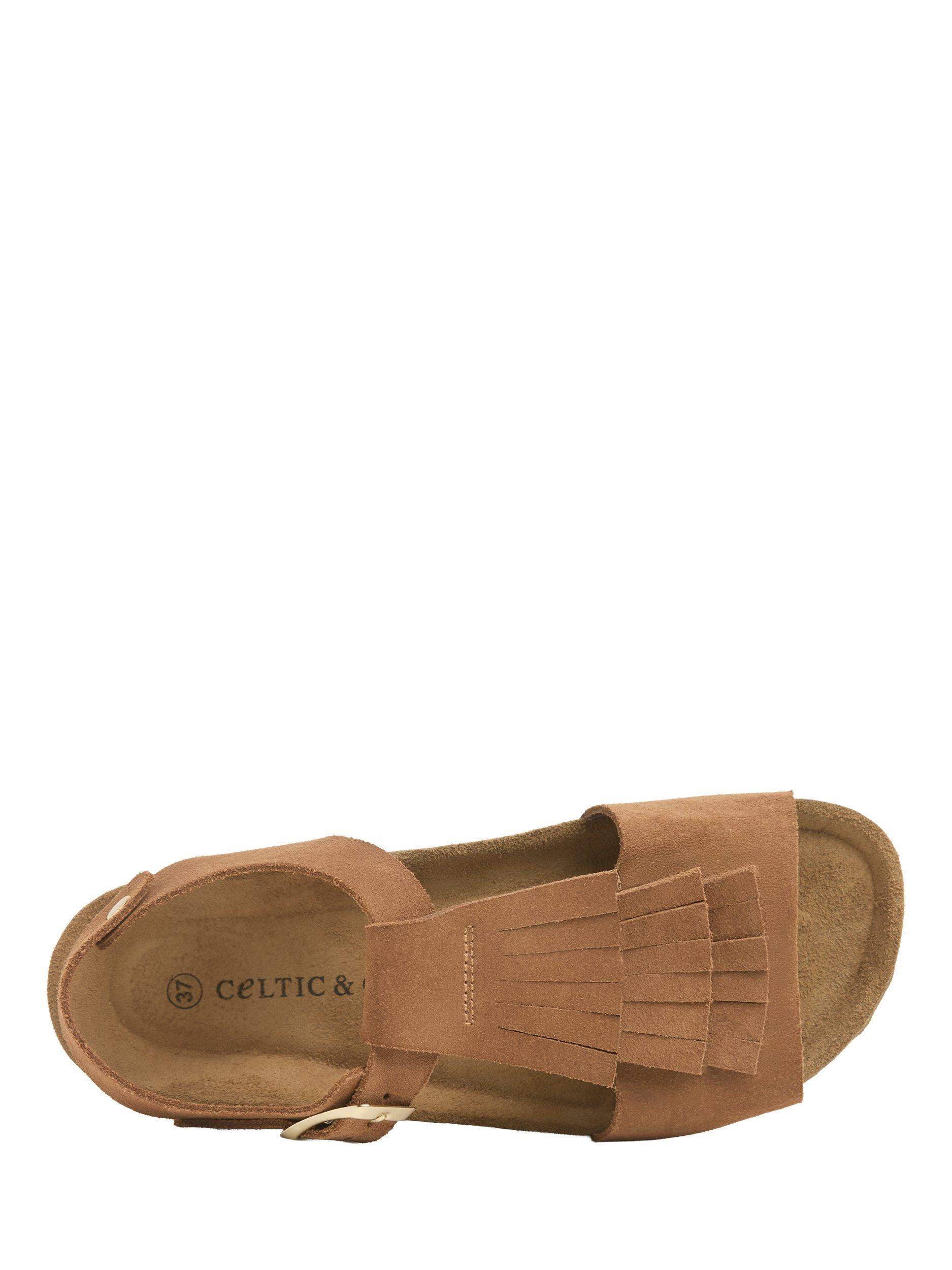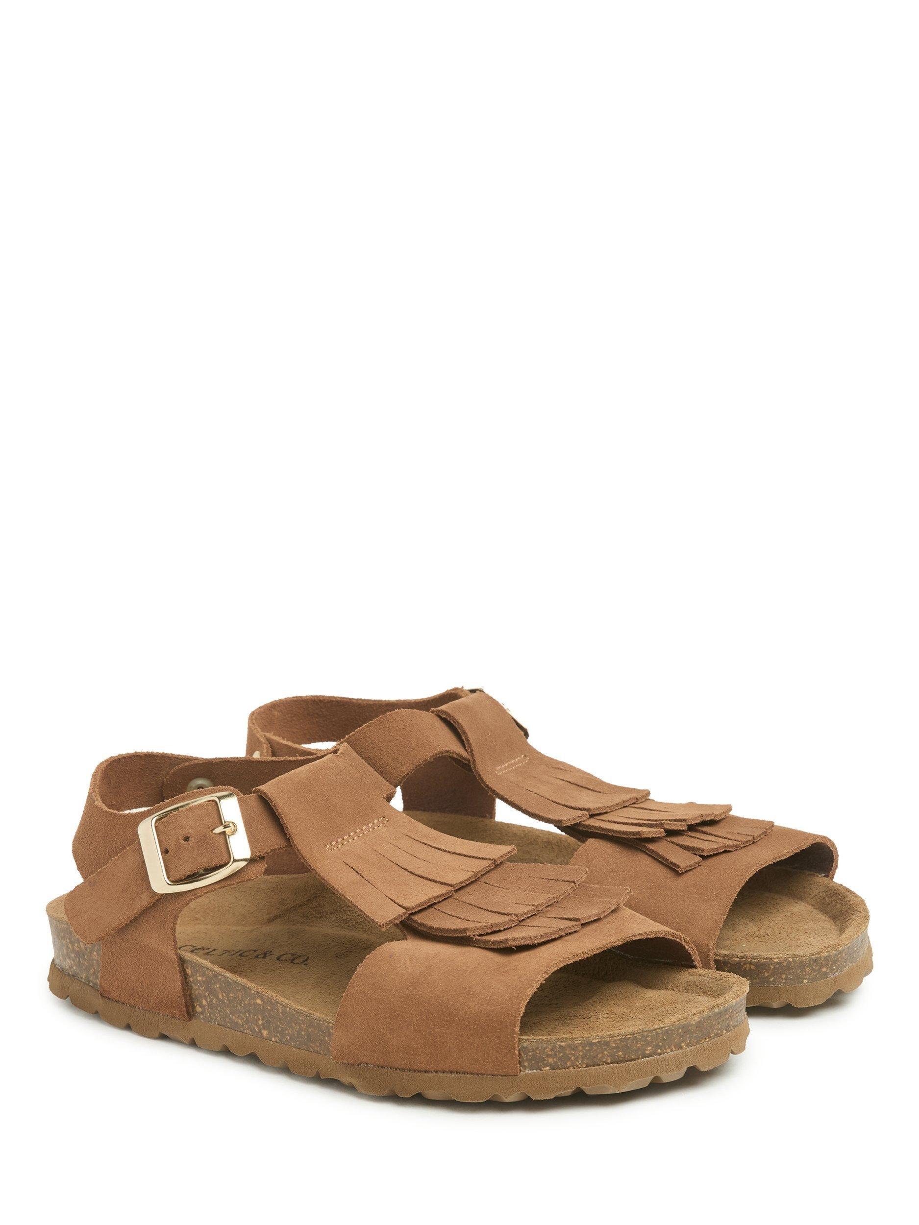 Celtic & Co.Suede Fringed Footbed Sandals, Tan