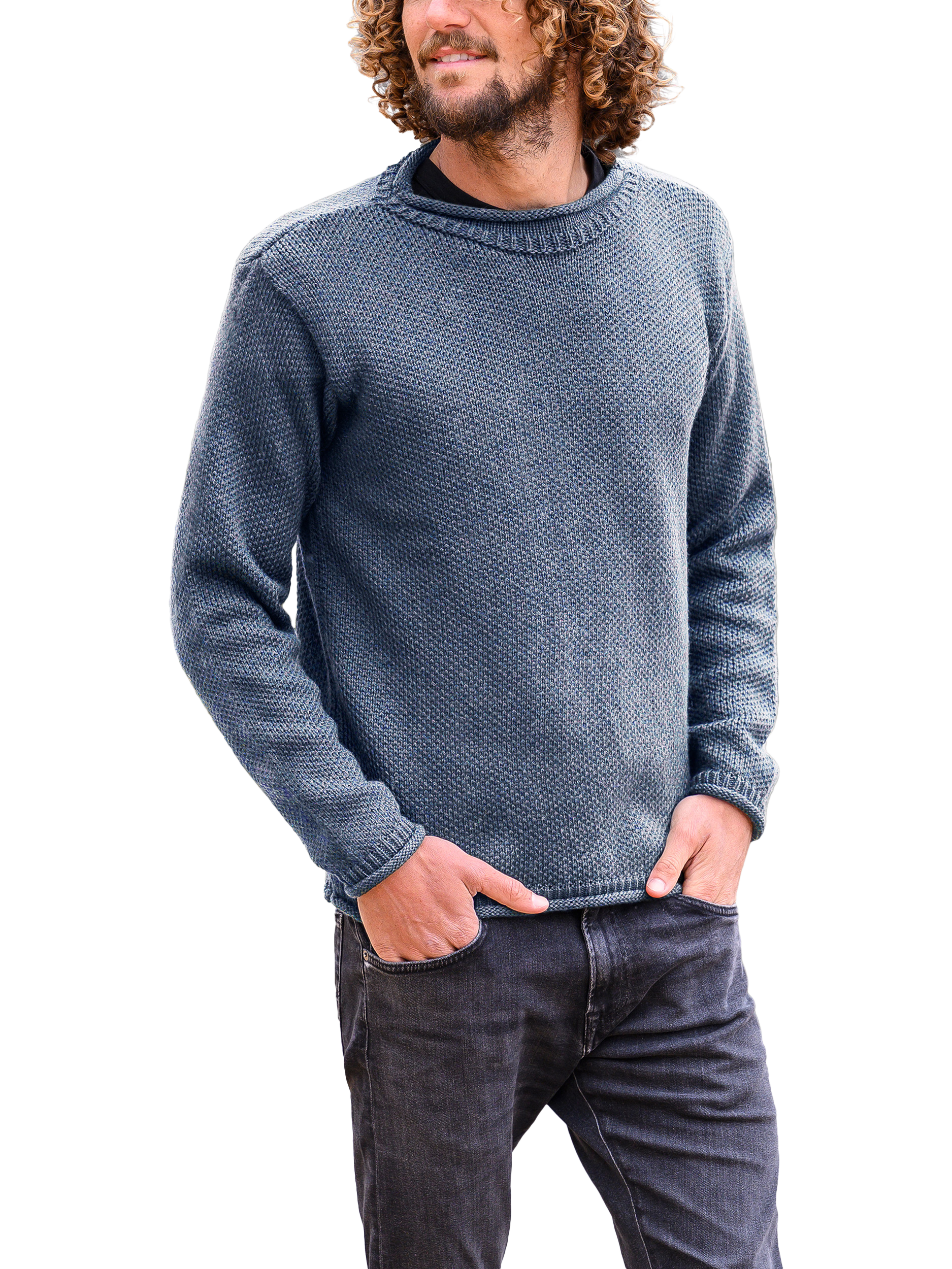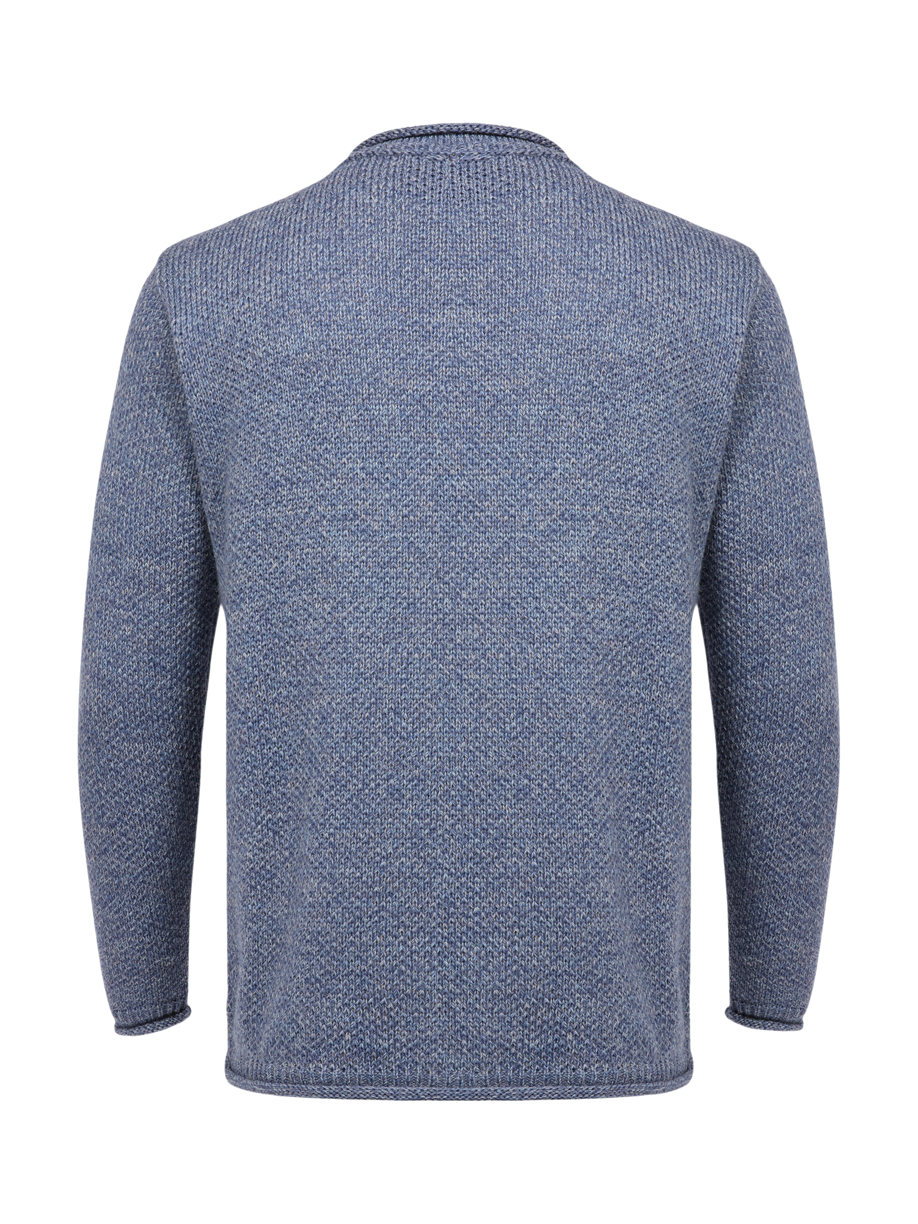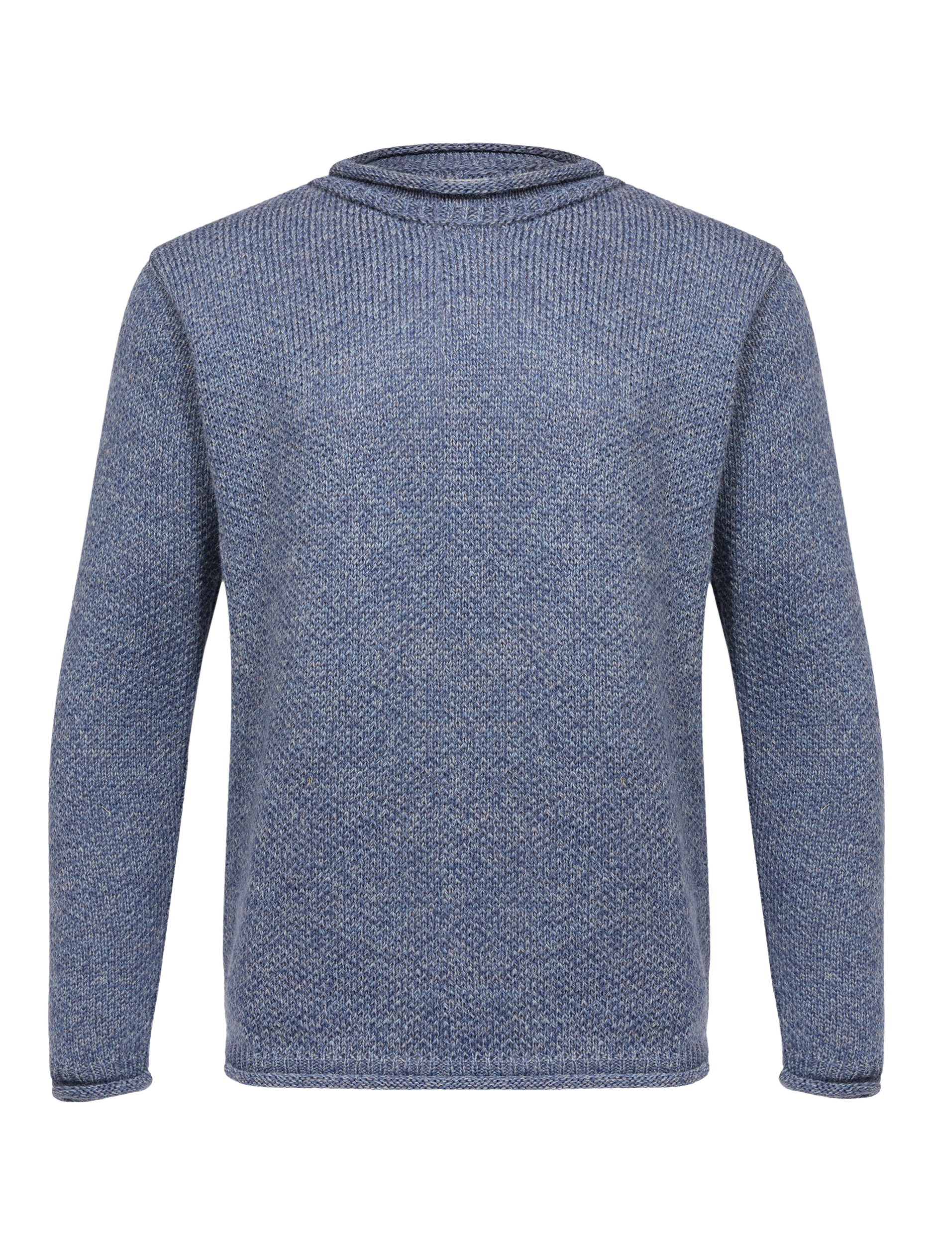 A classic knit to be worn on all occasions, from hikes in the hills to evening drinks. This crew neck jumper features a traditional rolled-edge collar, cuffs and hem. Knitted in a textured moss stitch, a technique which makes the jumper subtly stand out from the rest.