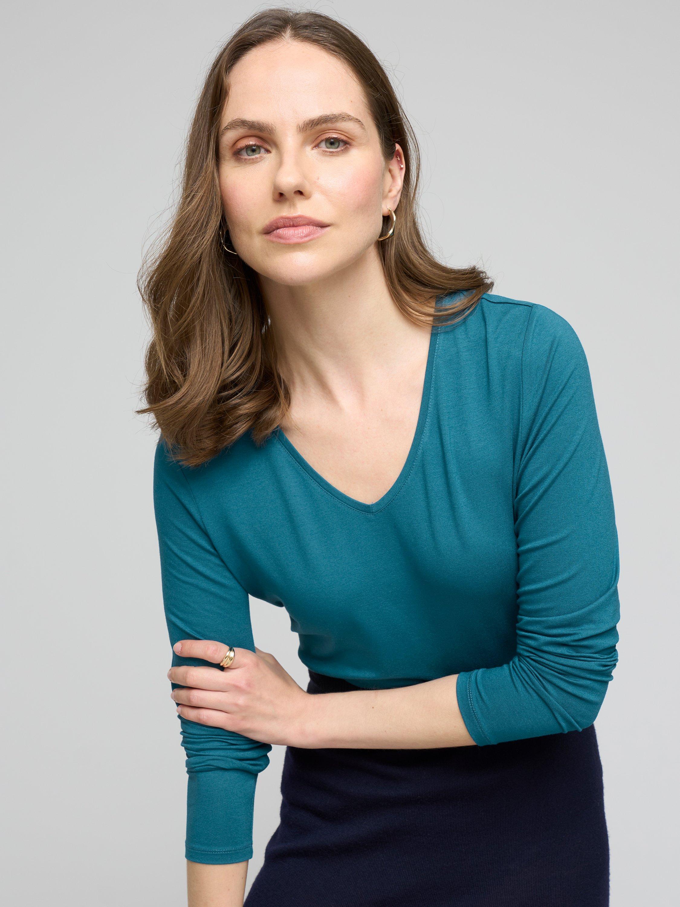 A dream basic which can be worn on its own or as a lightweight layering piece. With a V neck which hits the balance between too sharp and too soft, and a classic fit that skims rather than clings, this is guaranteed to become a go-to wardrobe essential.