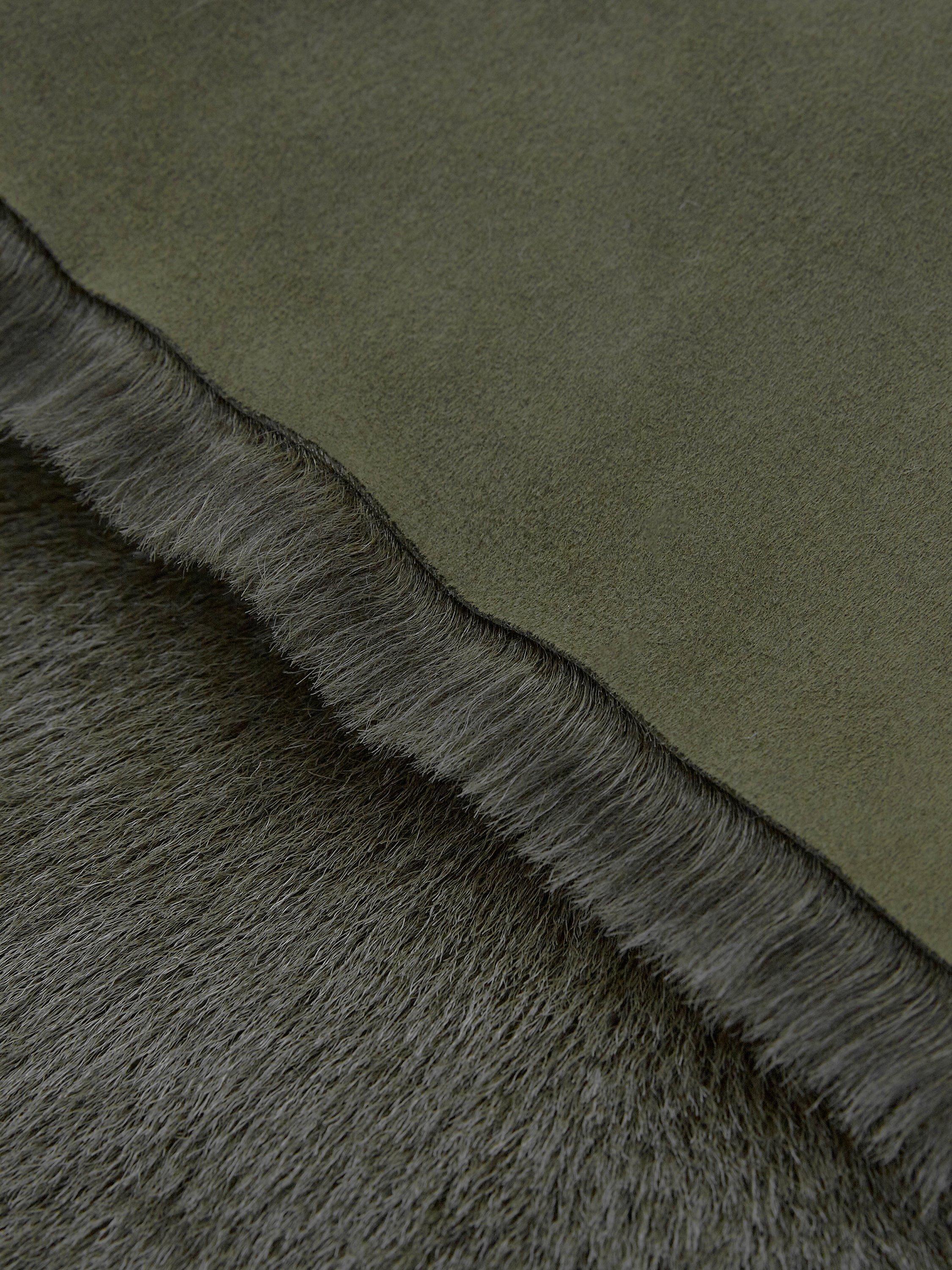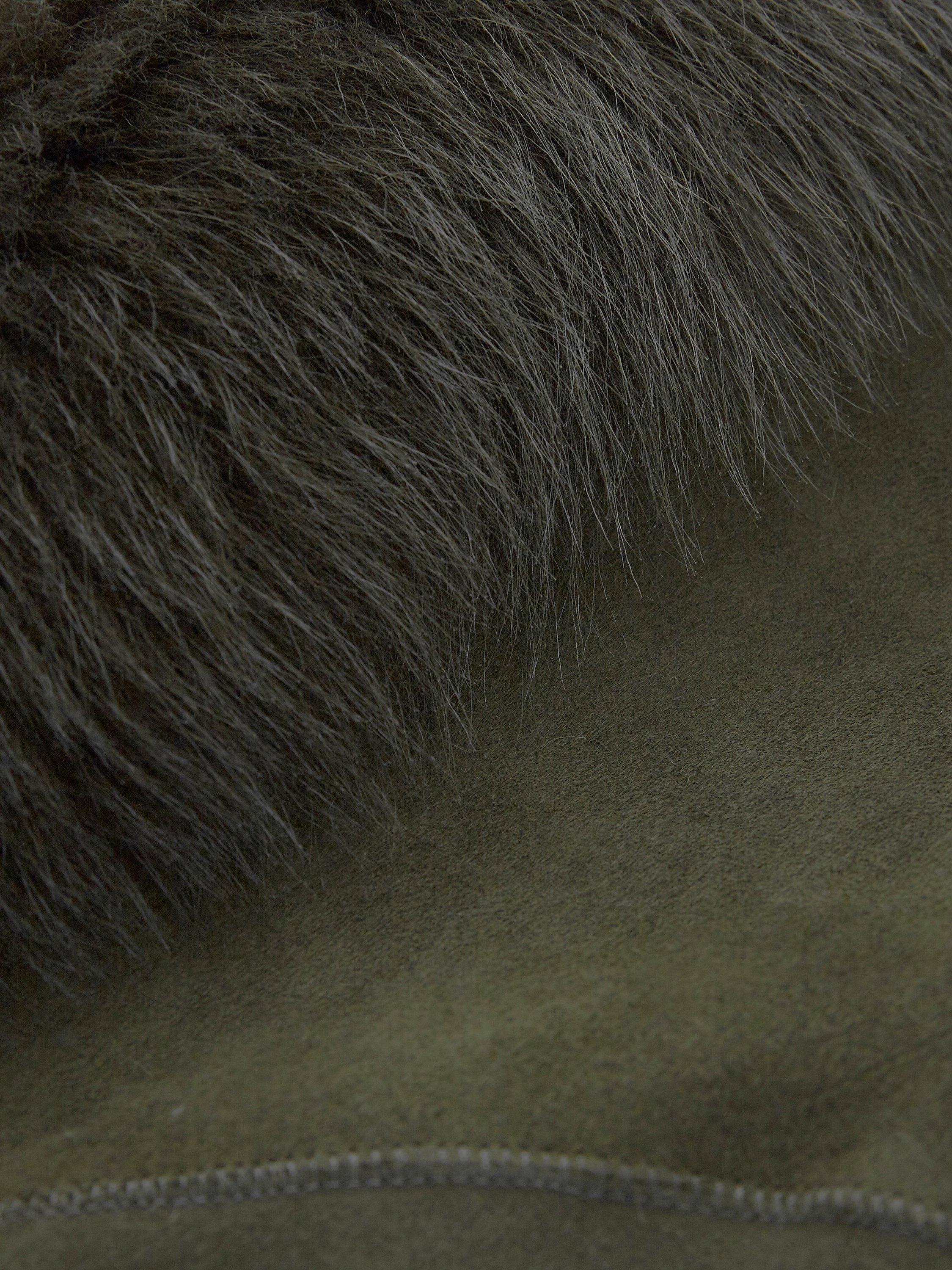 Framed with cosy faux fur, it is made with a tone-on-tone dye technique to develop the rich, solid colour.