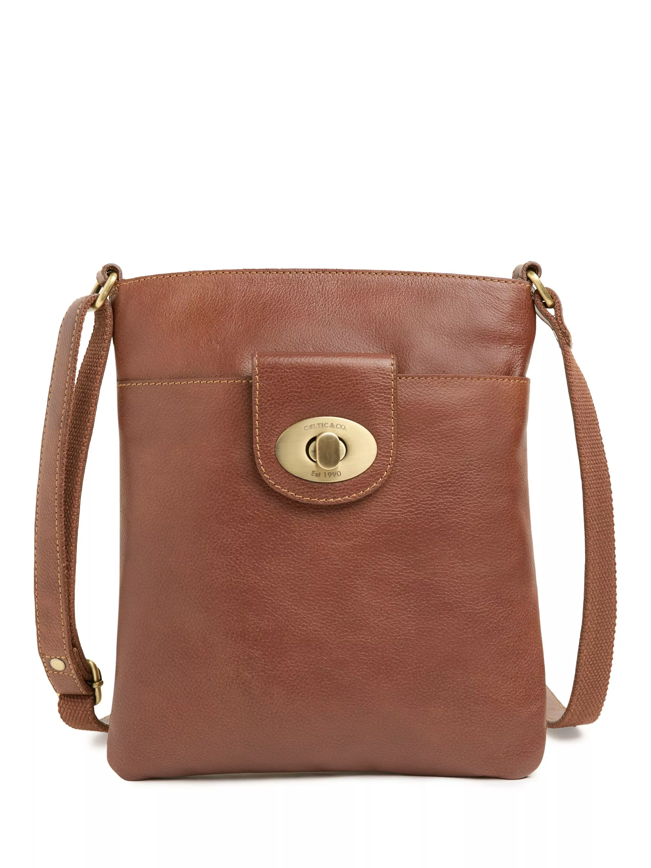 Celtic & Co.Twist Lock Leather Crossbody Bag, Chestnut