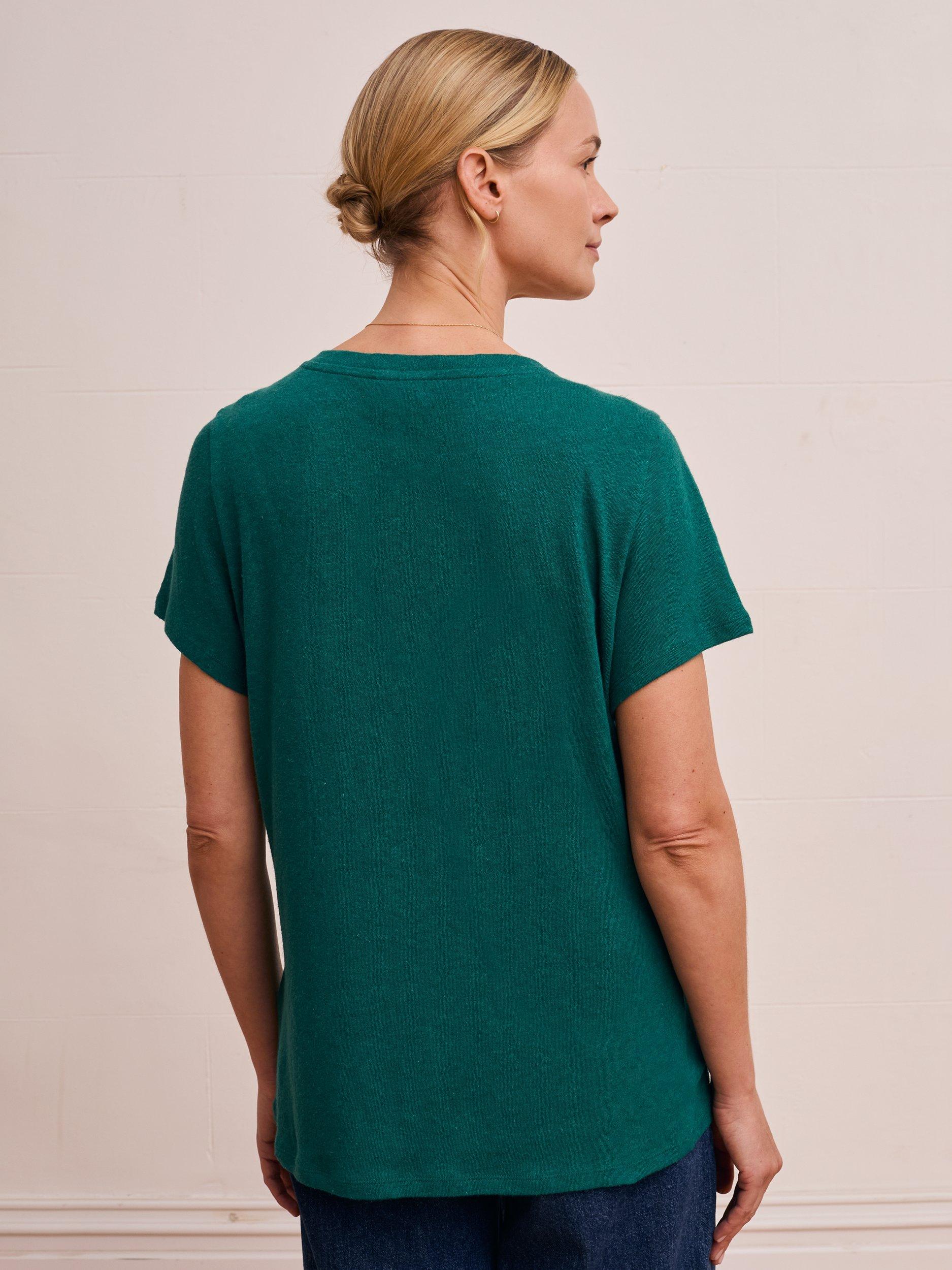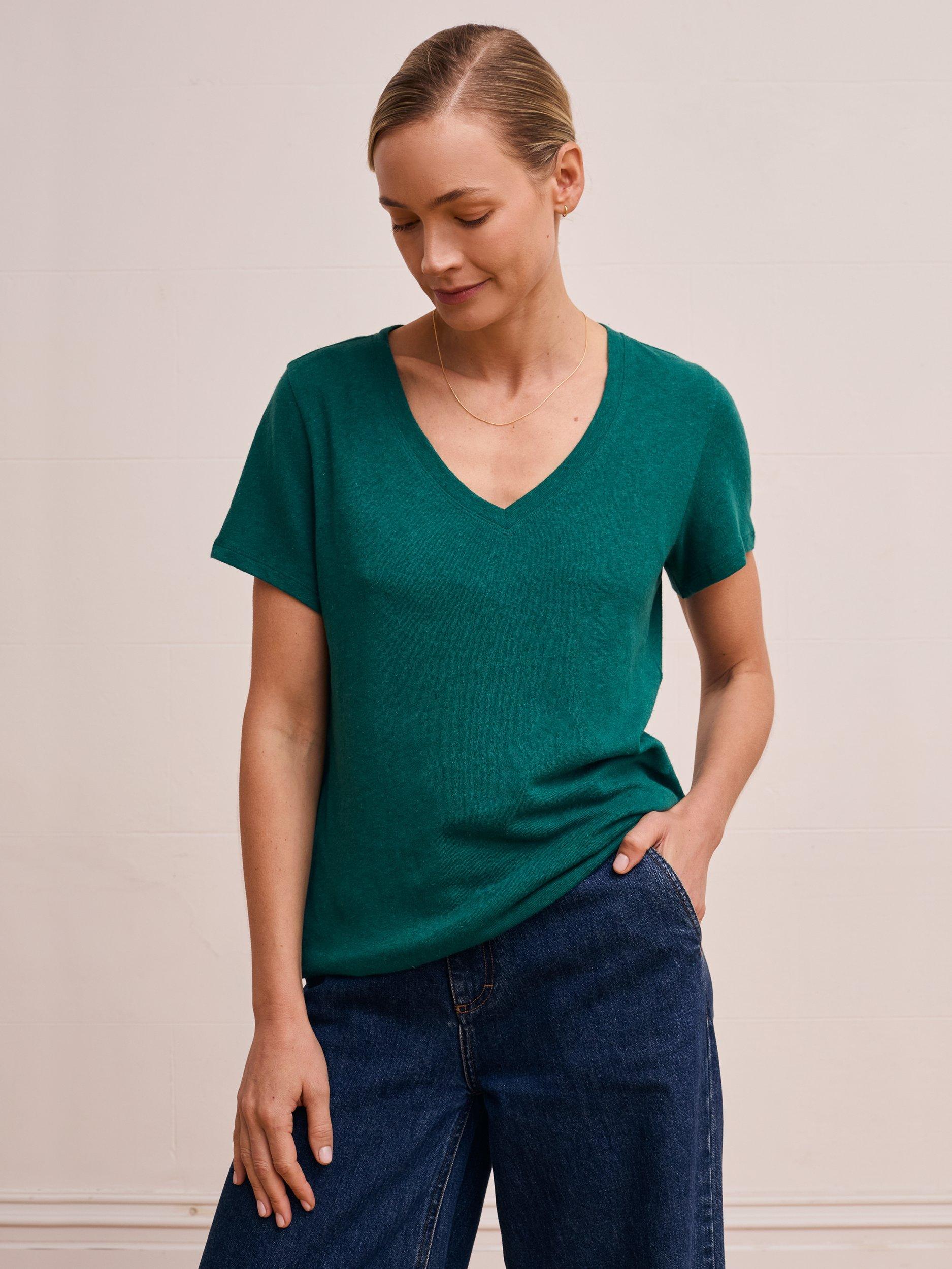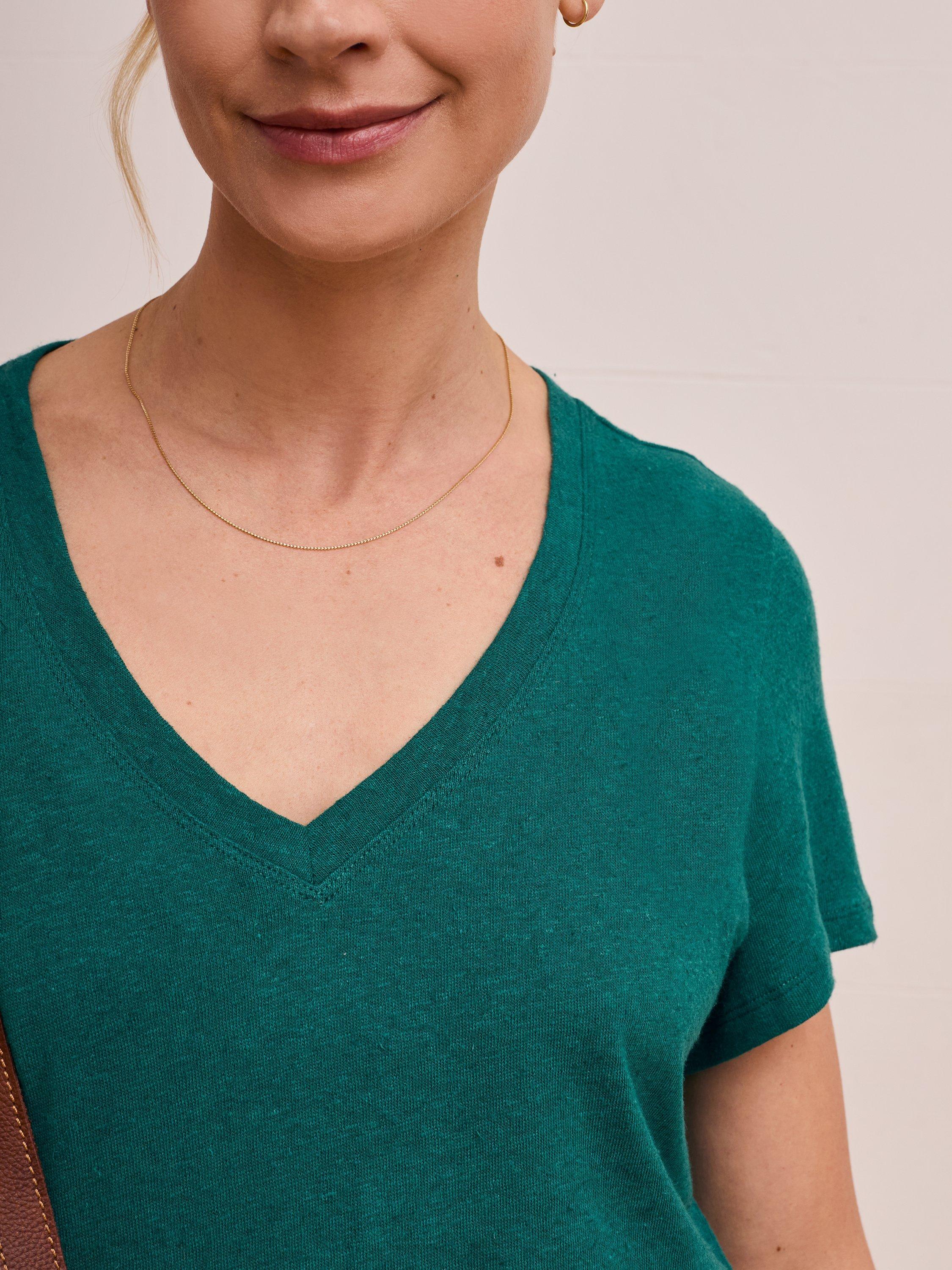Celtic & Co.V-Neck Linen Blend T-Shirt, Teal