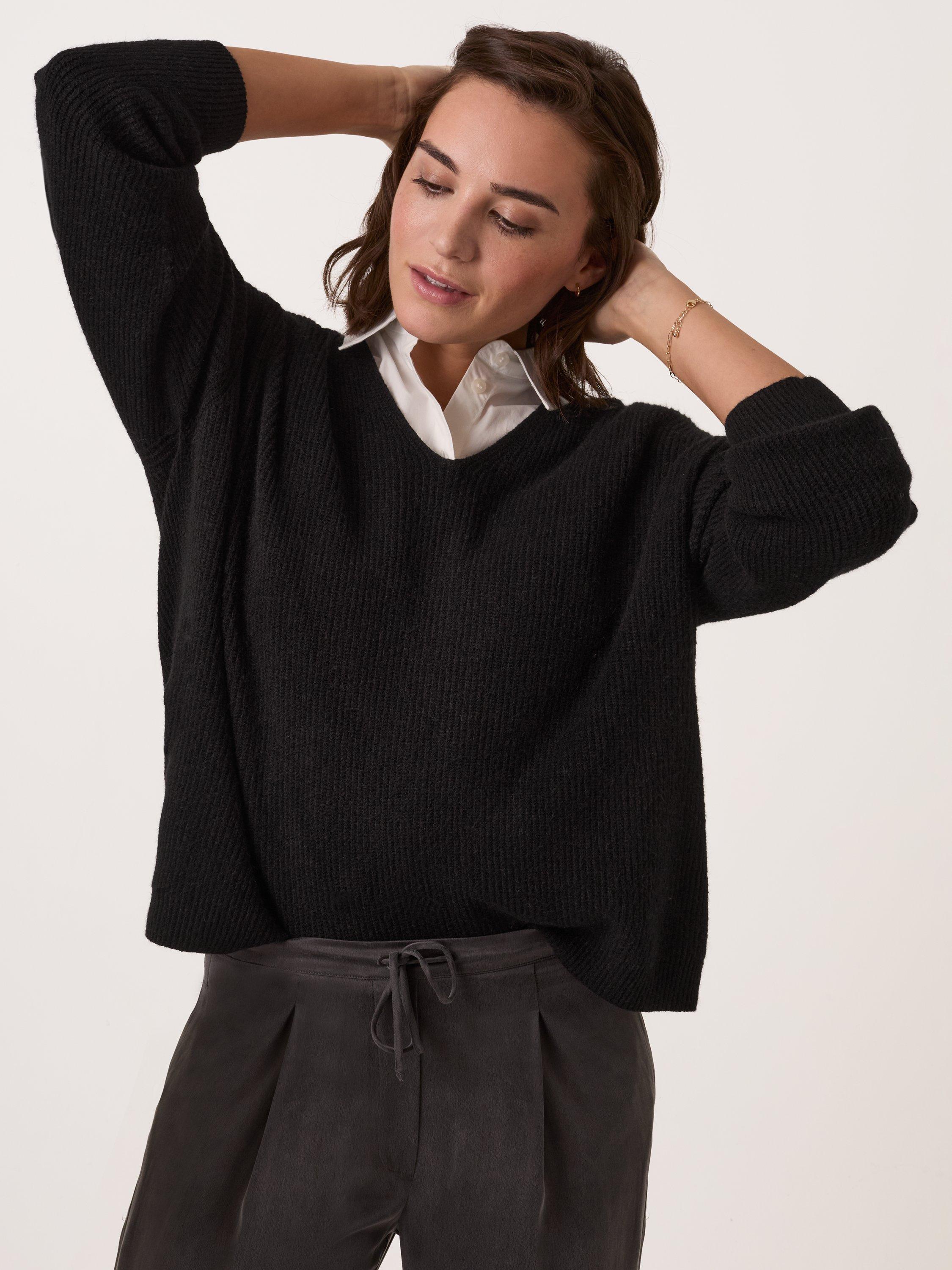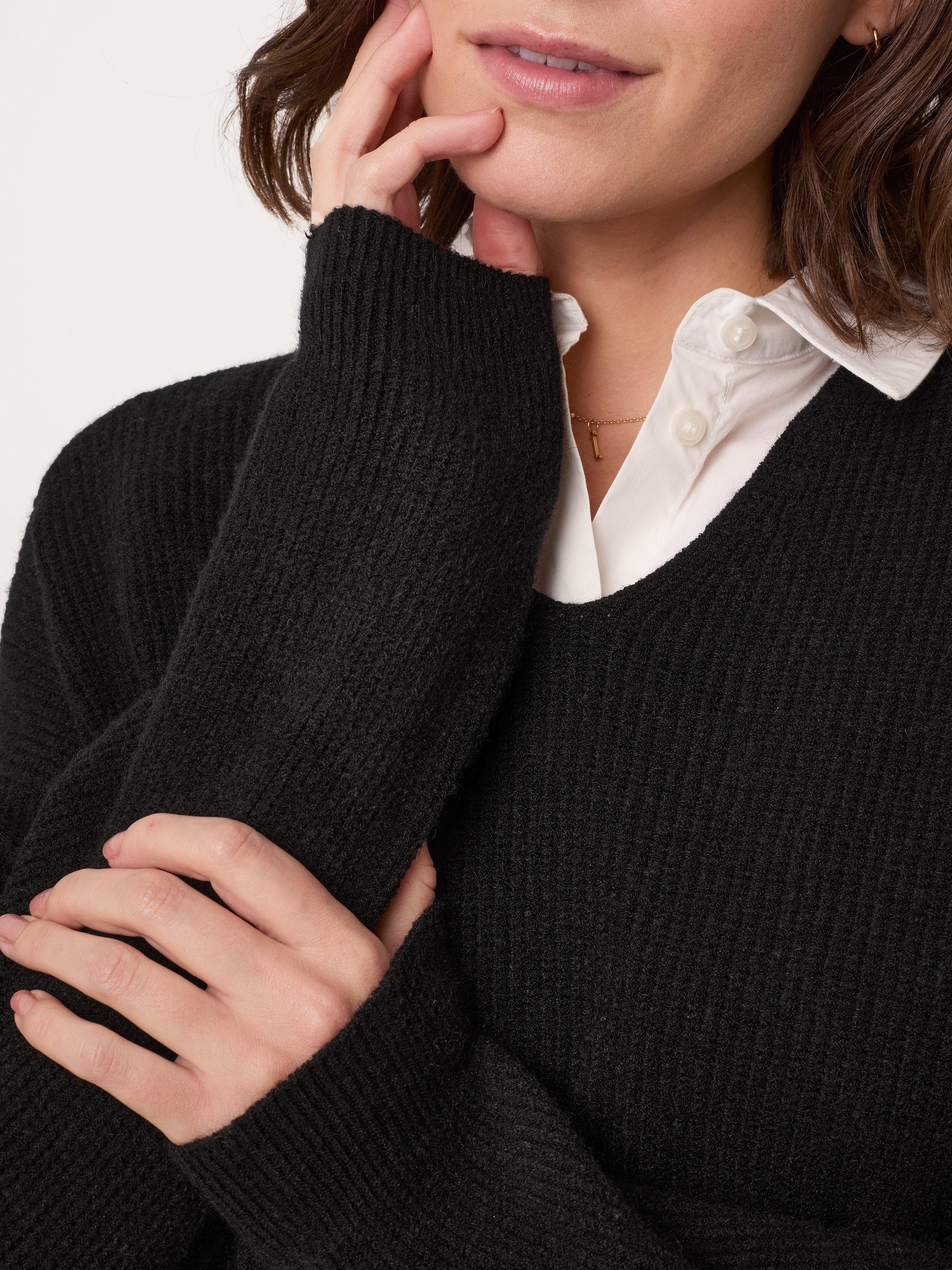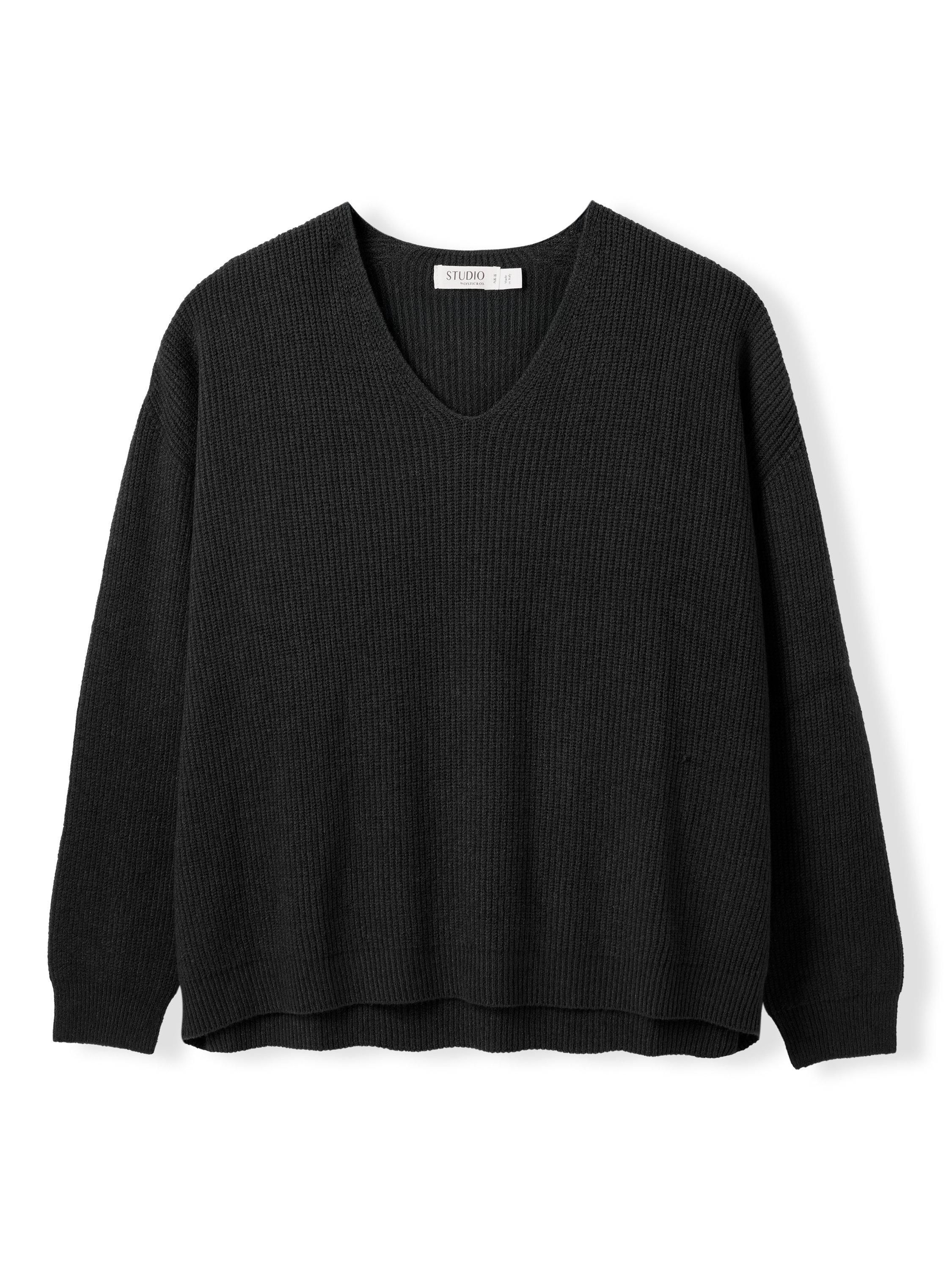 Celtic & Co.V-Neck Ribbed Jumper, Black