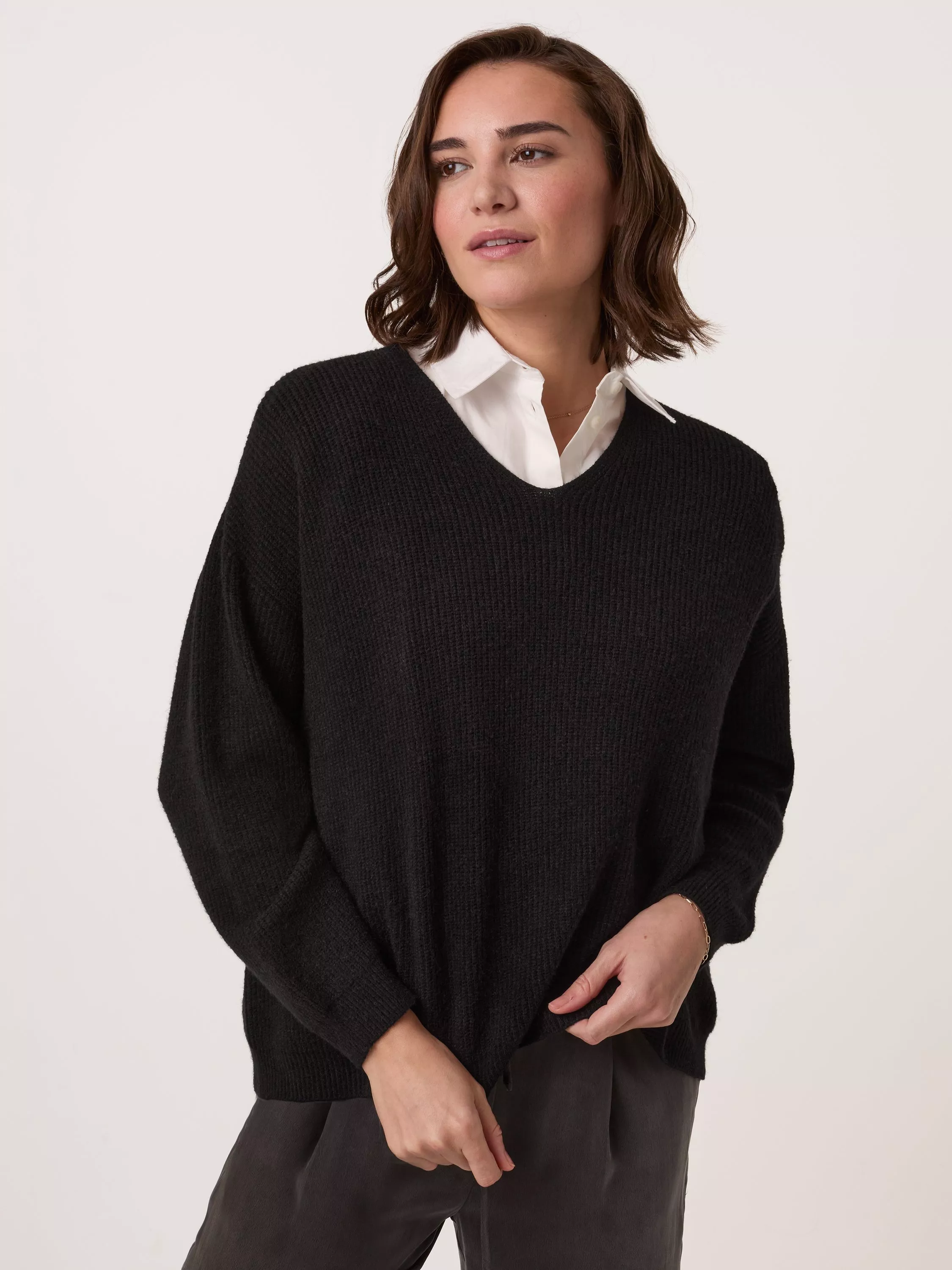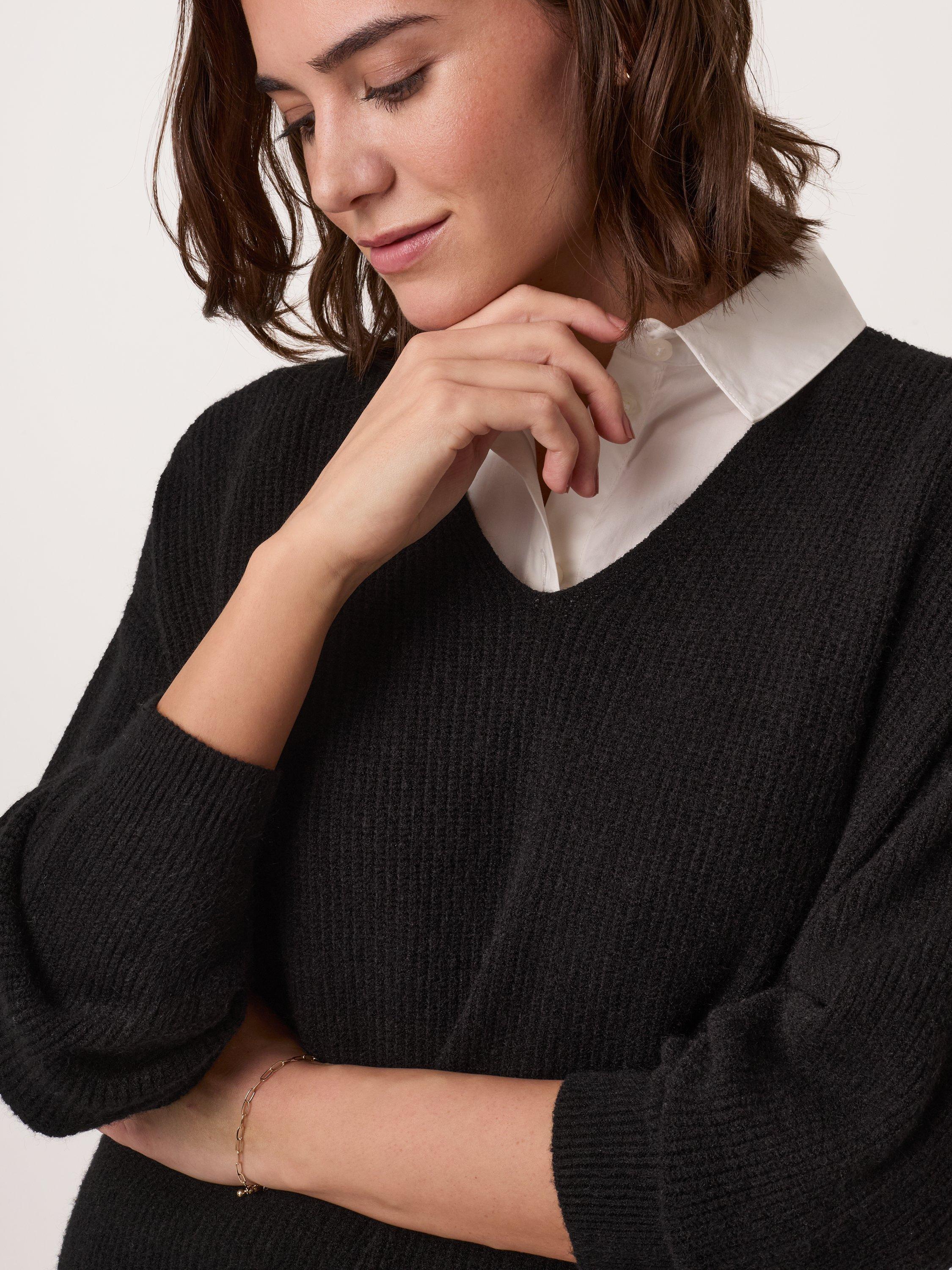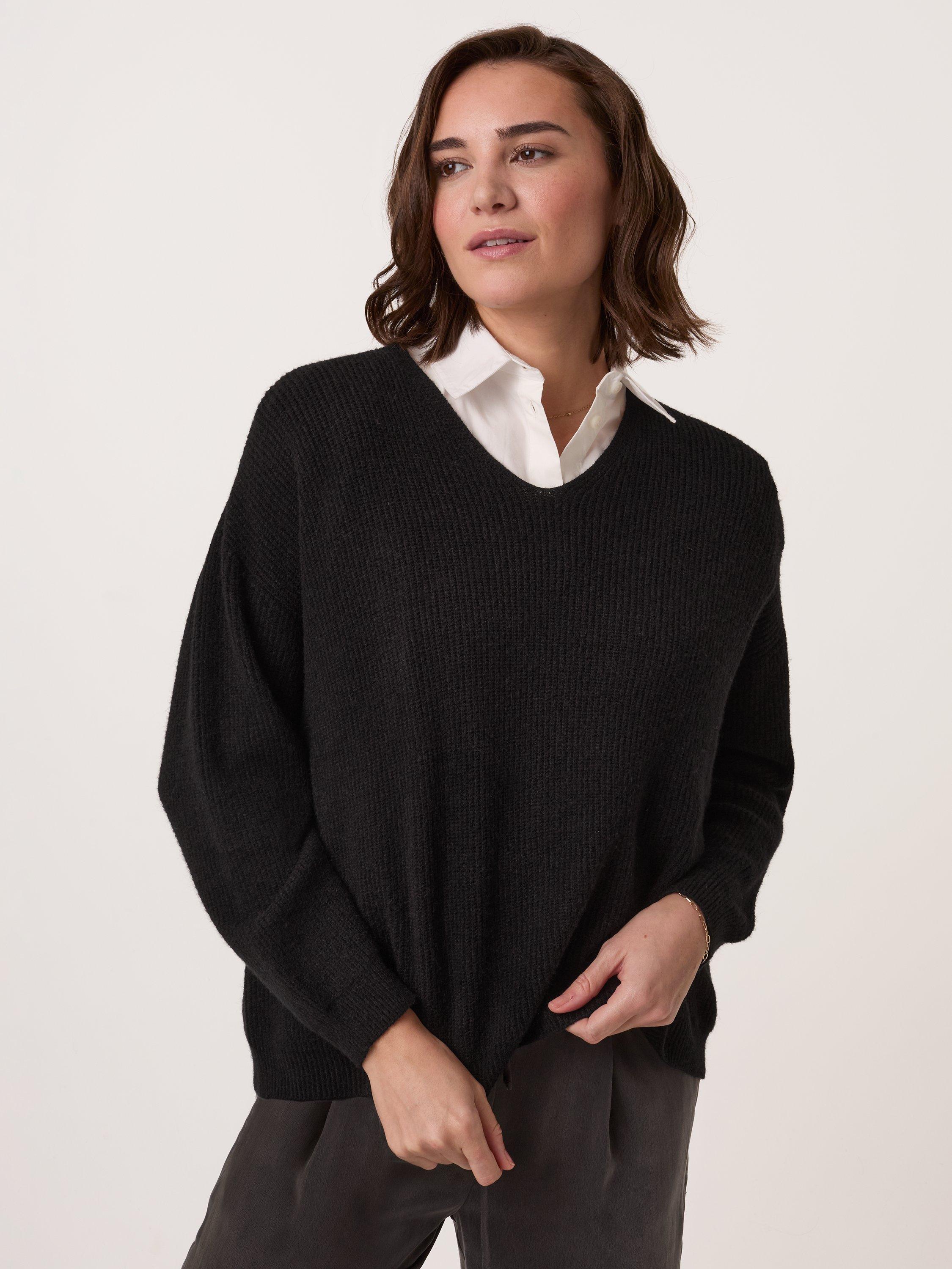 Celtic & Co.V-Neck Ribbed Jumper, Black